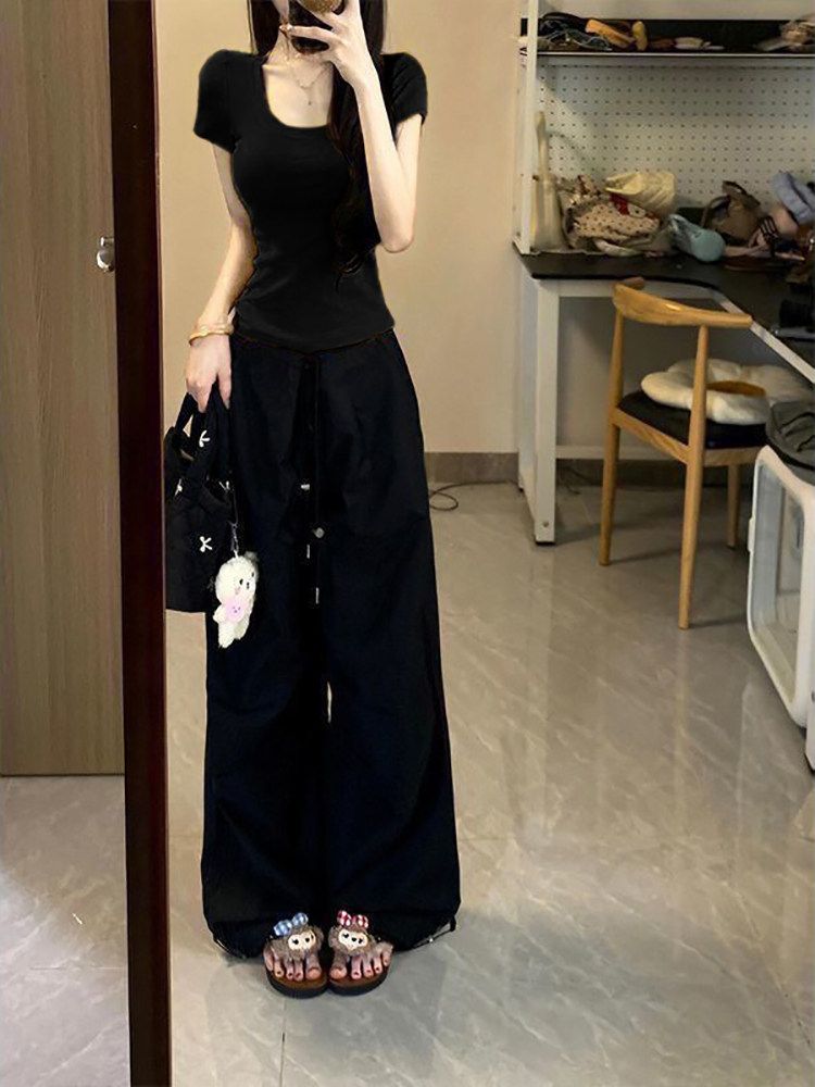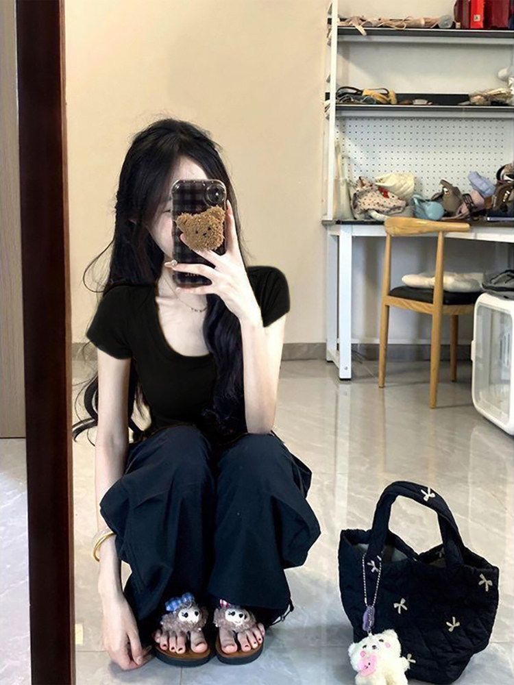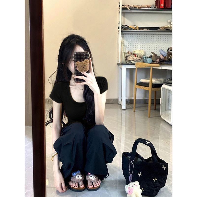 작은 키 홍콩 느낌 매듭 디자인 불규칙 반팔 티셔츠 여성 여름 달콤함 주름 몸매 가꾸기 쇼트 스타일 맨위