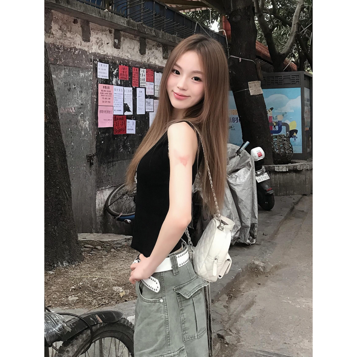 240 그램 순면 리브 92 면 8 암모니아 Lun 레이스 조각 불규칙 디자인 센스 몸매 가꾸기 슬림해 보이는 민소매 조끼