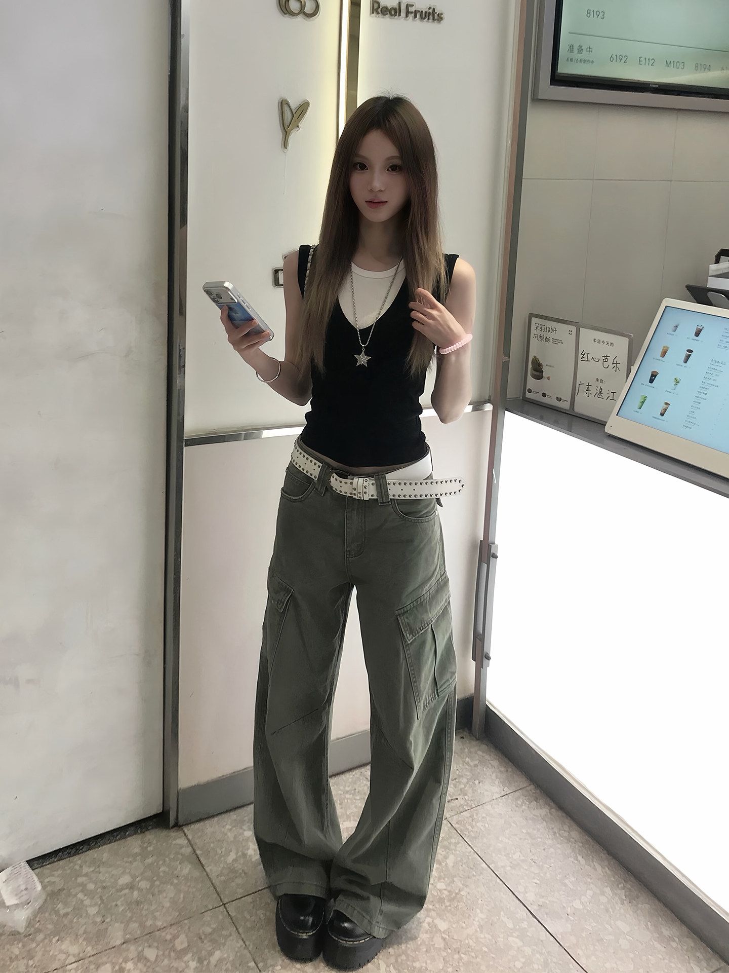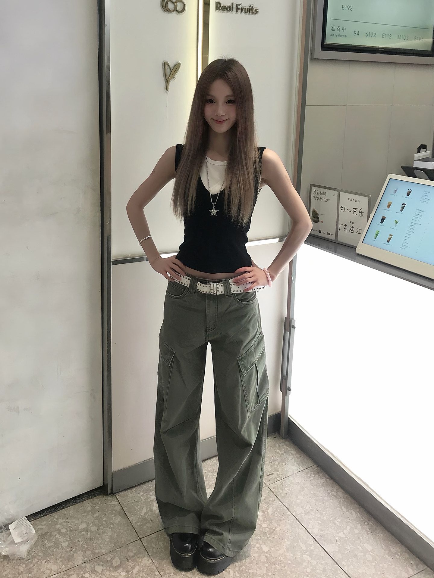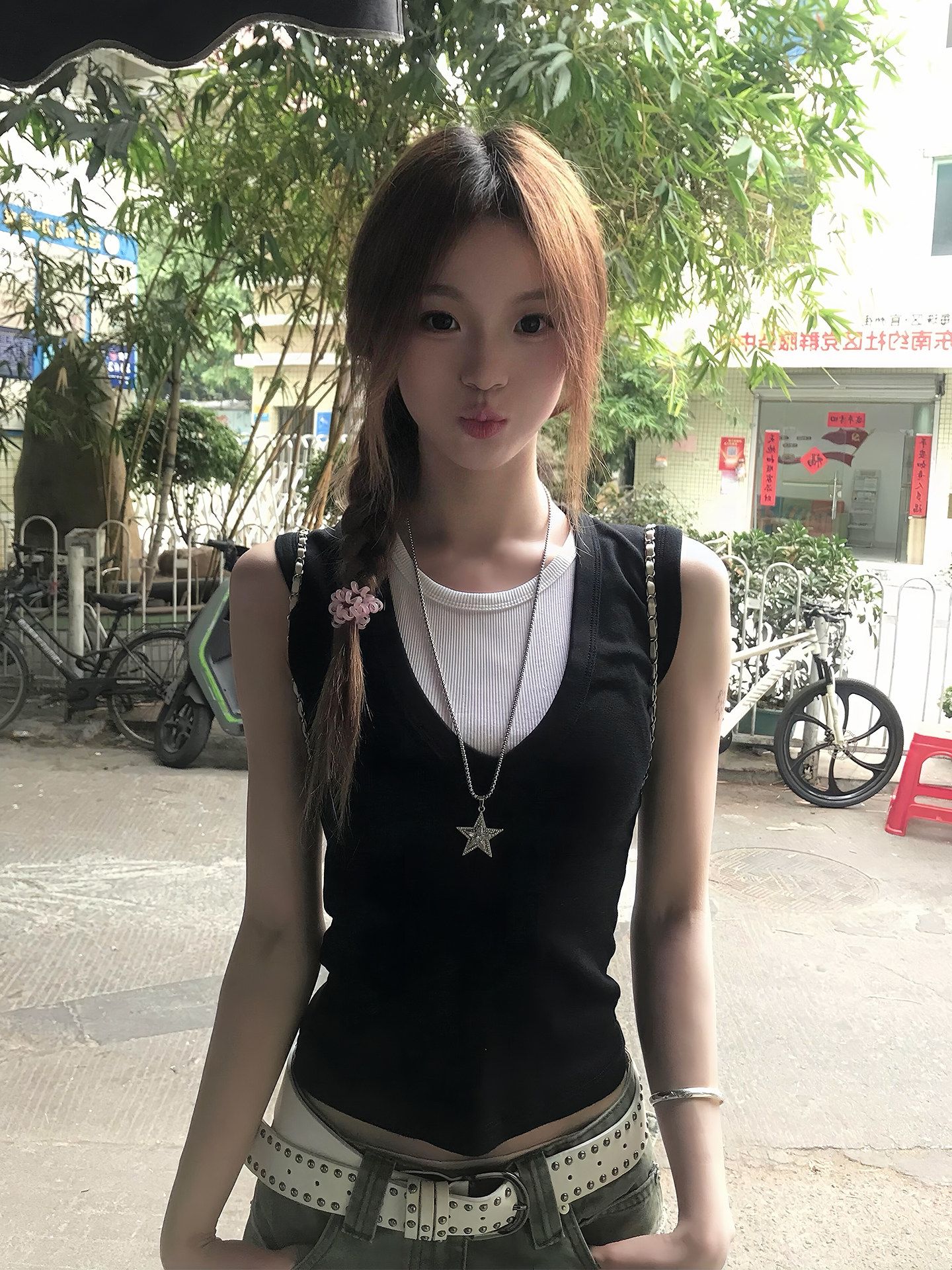 패치워크 페이크 레이어드 흔들다 칼라 민소매 티셔츠 여름 몸매 가꾸기 허리 수축 핫걸 몸매 가꾸기 맨위