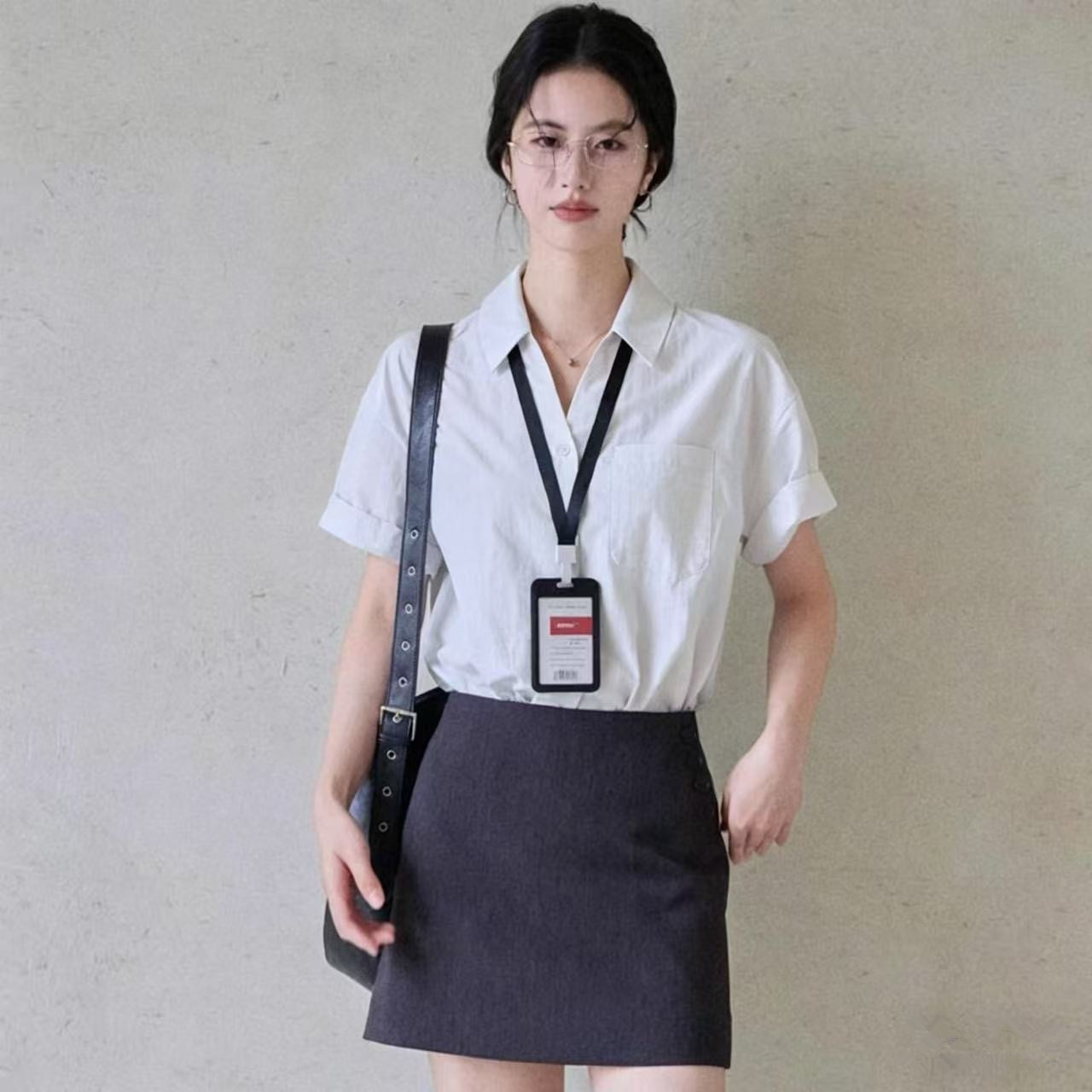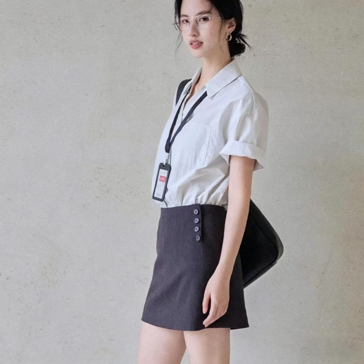 아니요 실사 화이트 반팔 여성 셔츠 프랑스식 품격 출퇴근 V넥 맨위 여성 면접 비즈니스웨어