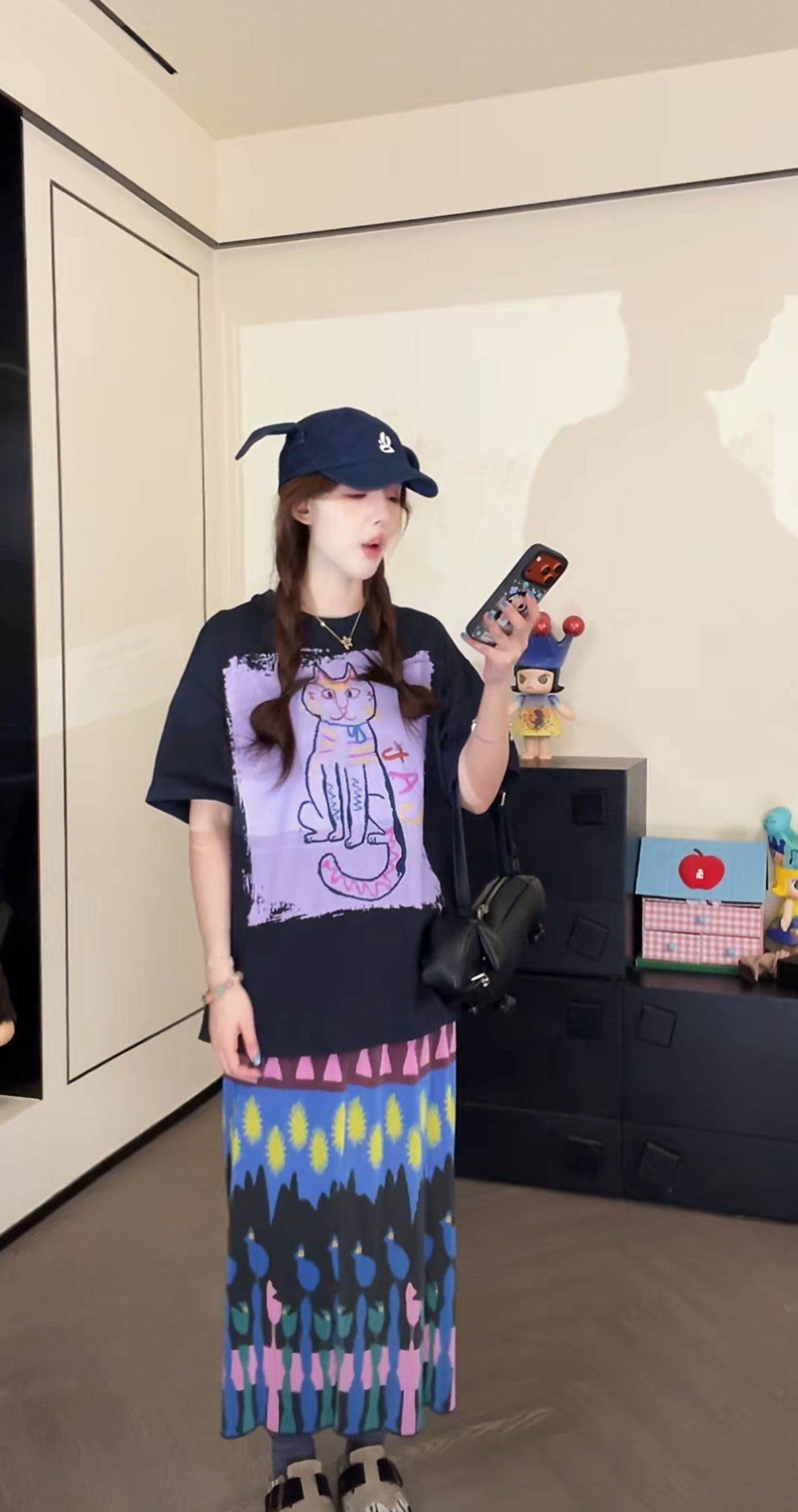 chacha 여름 트렌드 캐주얼 패션 다용도 새끼 고양이 프린트 티셔츠 반신 스커트