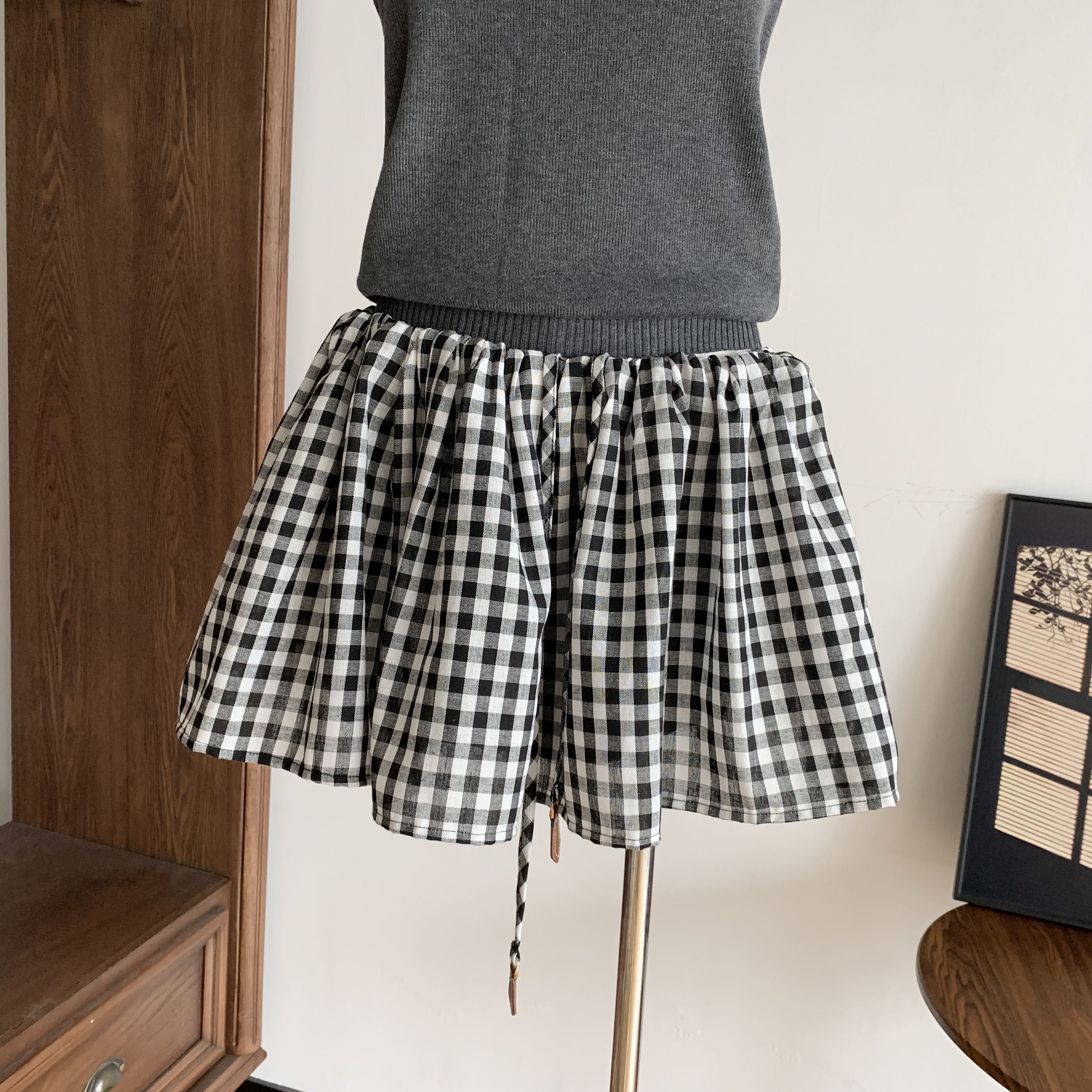 fart shop 아메리칸 캐주얼 중 로우 웨이스트 몸매 가꾸기 리브 허리 머리 캐주얼 바지 여성 봄 여름 반바지 웨이 바지