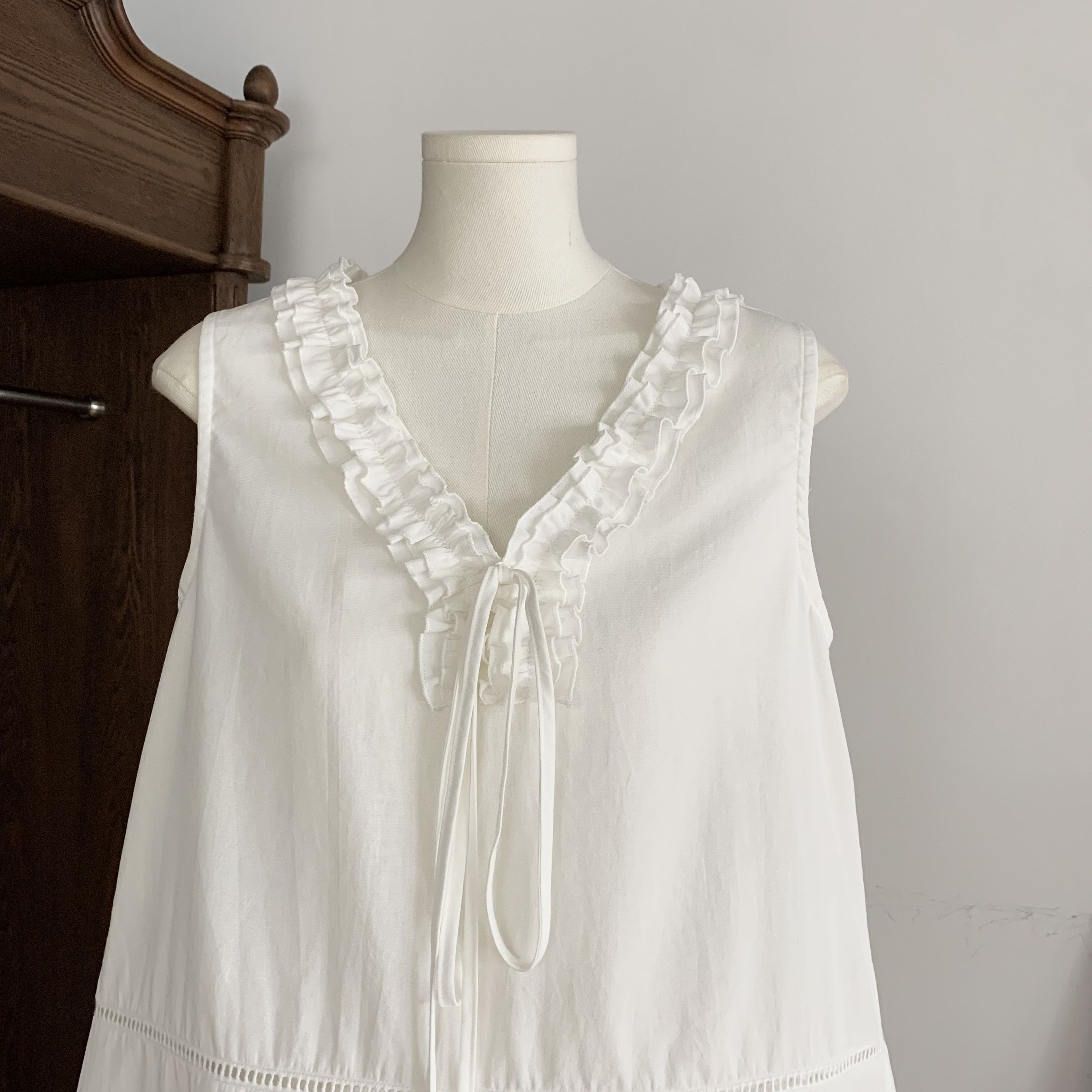 그는 아침 프랑스식 십자가 V넥 행침 목 캐미솔 높은 추위 품격 로얄 자매 벨트 포함 민소매 맨위 여성