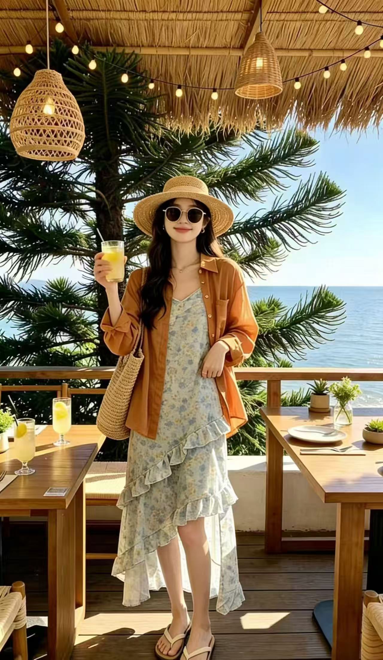 새로운 한 부서 패션 부드러운 바람 오픈 가디건 체크무늬 휴가 바람 V넥 행침 목 슬립 점프 슈트 치마 세트