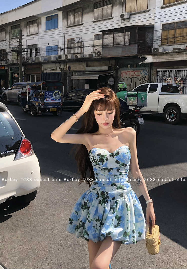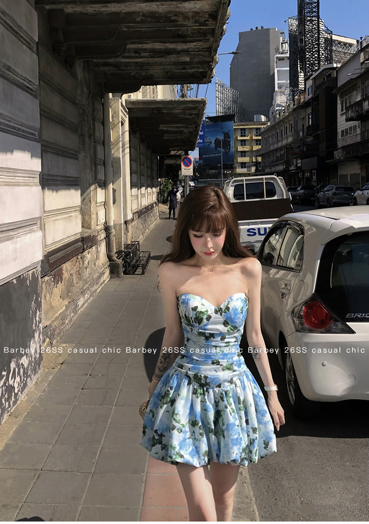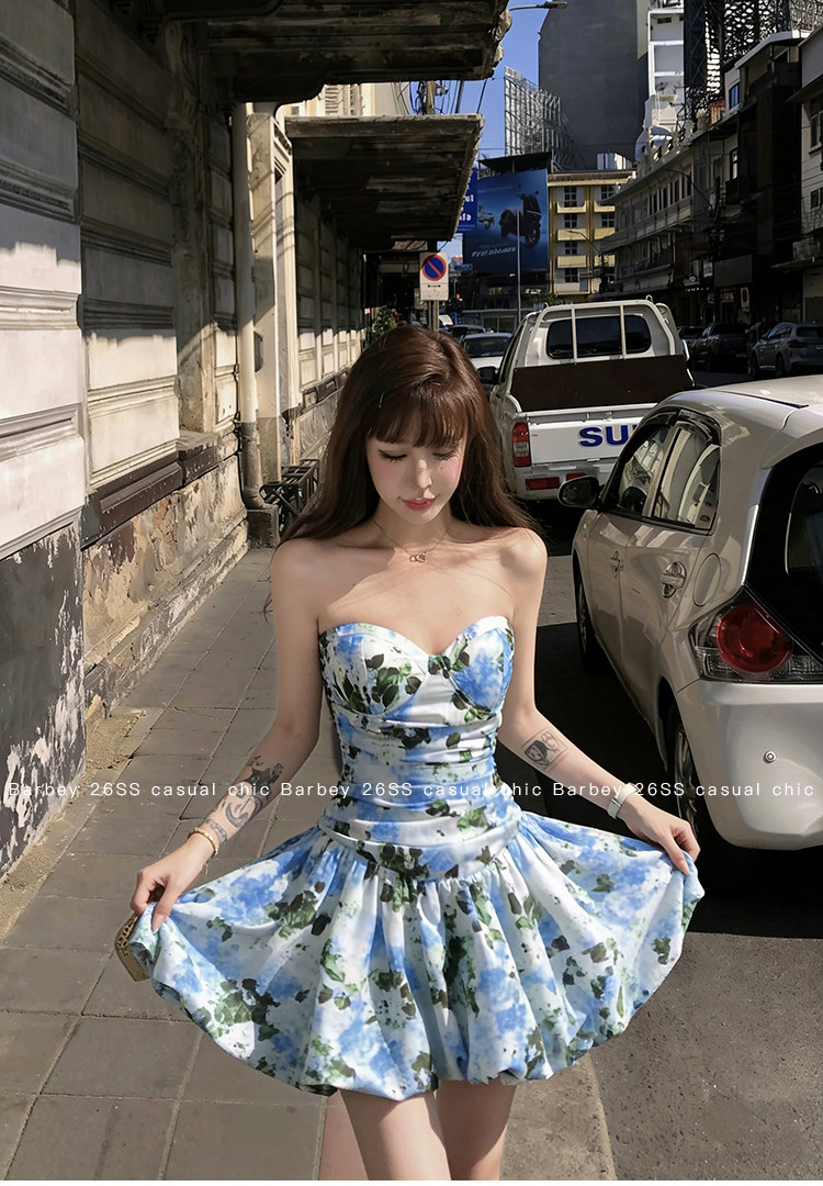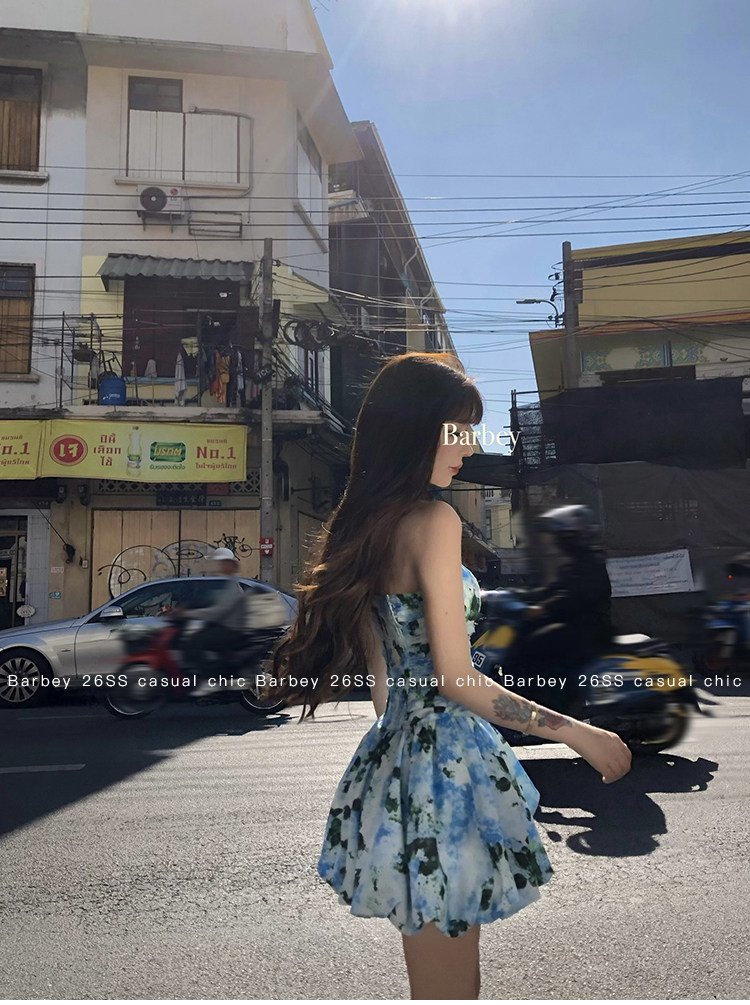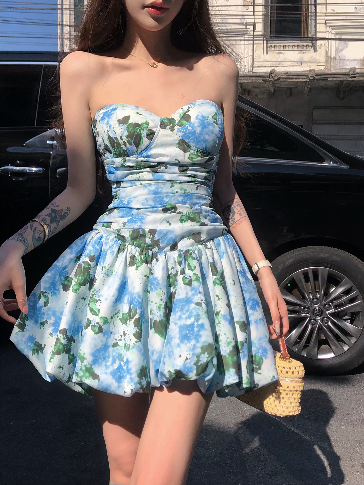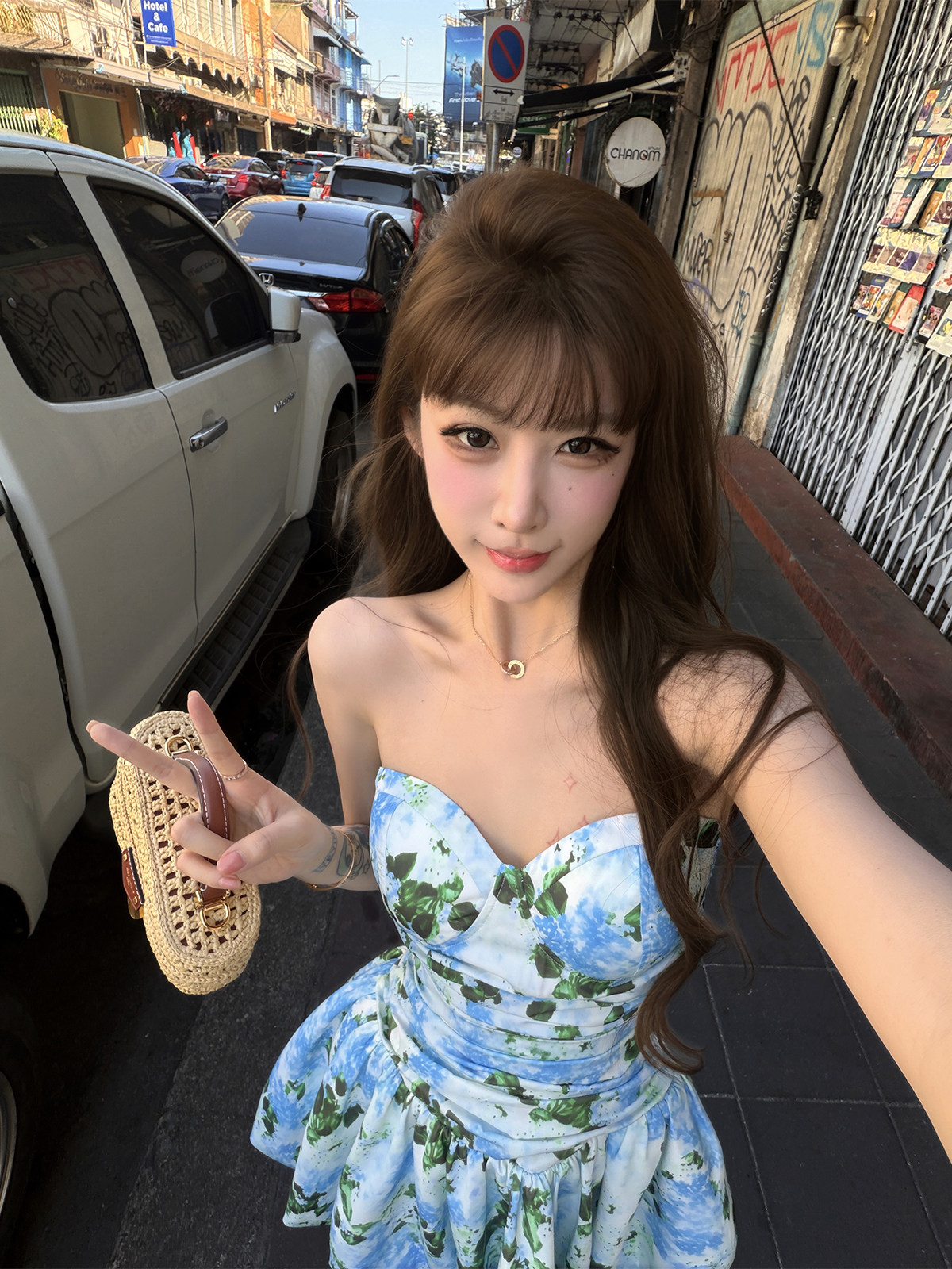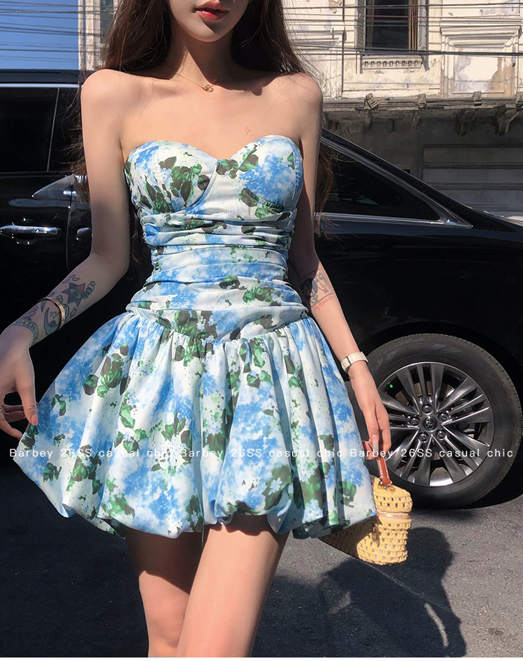 나 벤 아름 답 고 요염하다 프랑스식 순수한 욕망 바람 꽃무늬 튜브탑 슬립 펀 센스 여자 드레스
