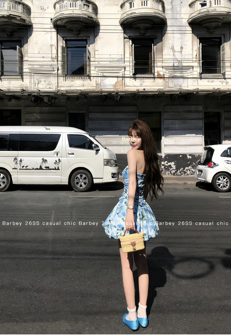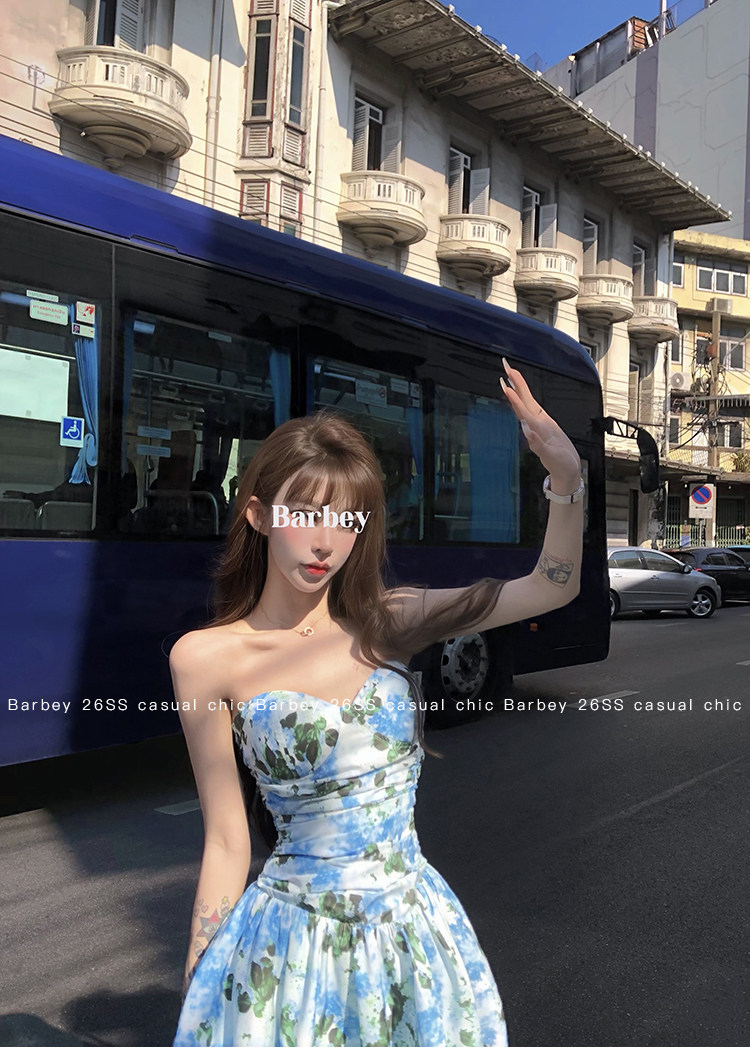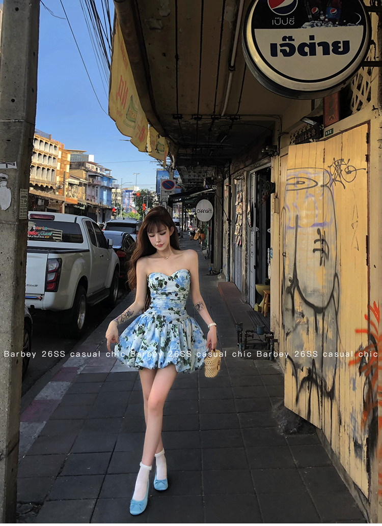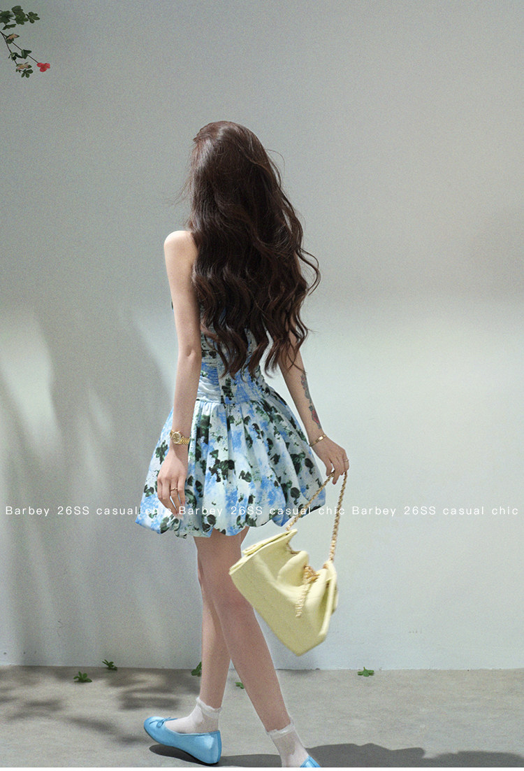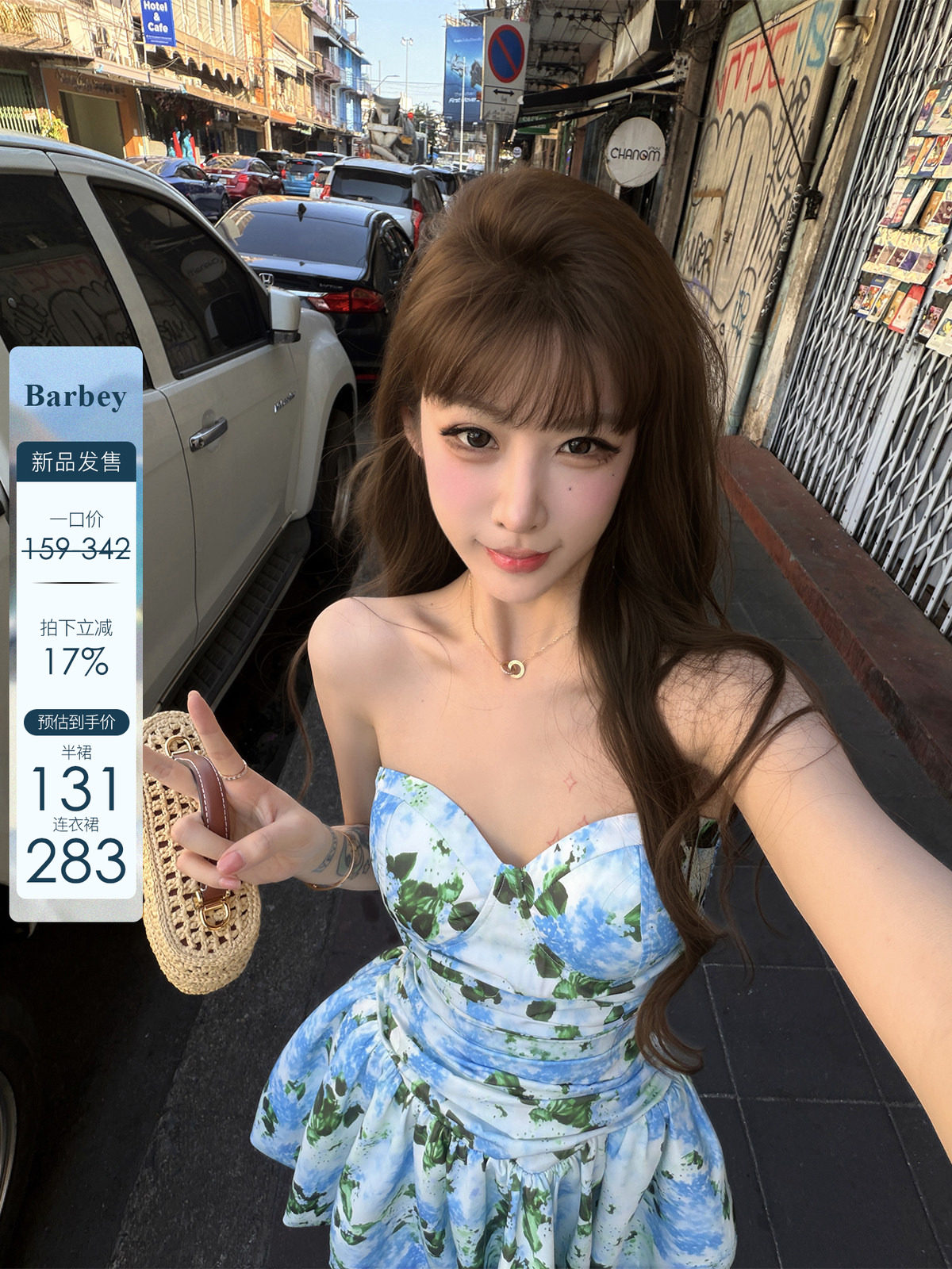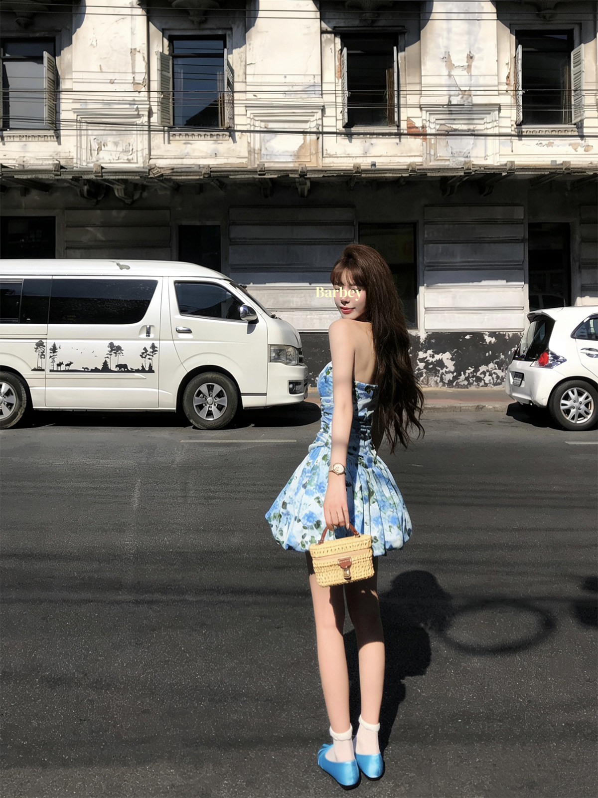 나 벤 아름 답 고 요염하다 프랑스식 순수한 욕망 바람 꽃무늬 튜브탑 슬립 펀 센스 여자 드레스