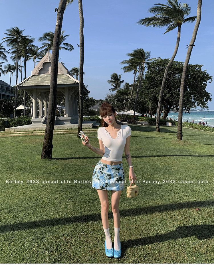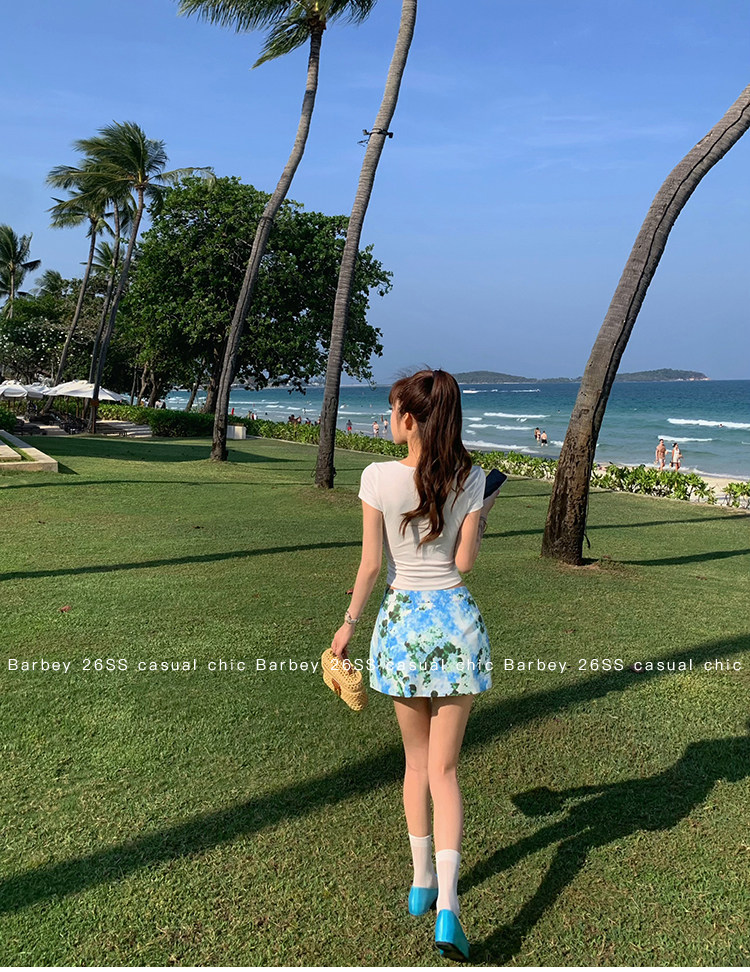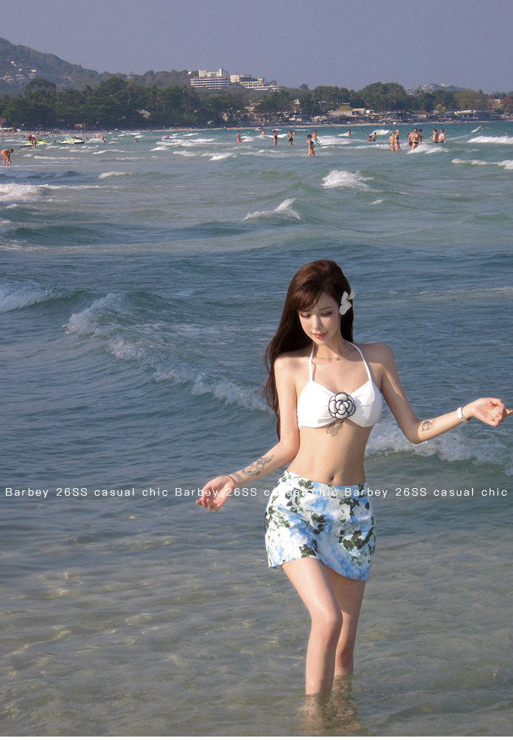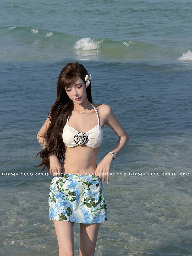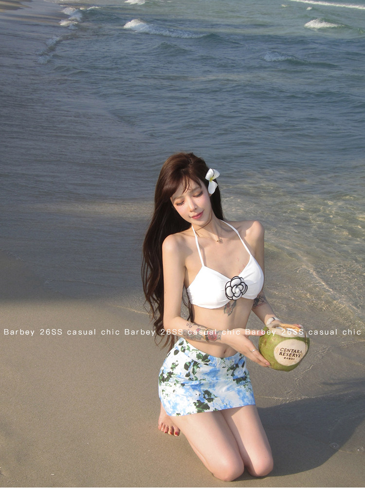 cute 라이 경기 서울 꽃무늬 웨이브 측면 장기 Pleat 슬립 맨위 측면 트임 한 마디 치마바지 투피스 세트