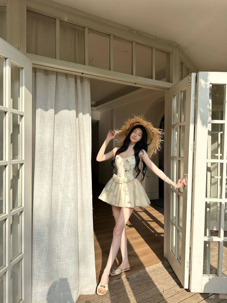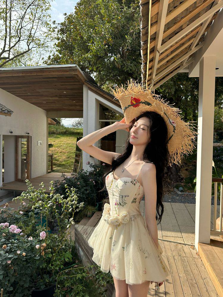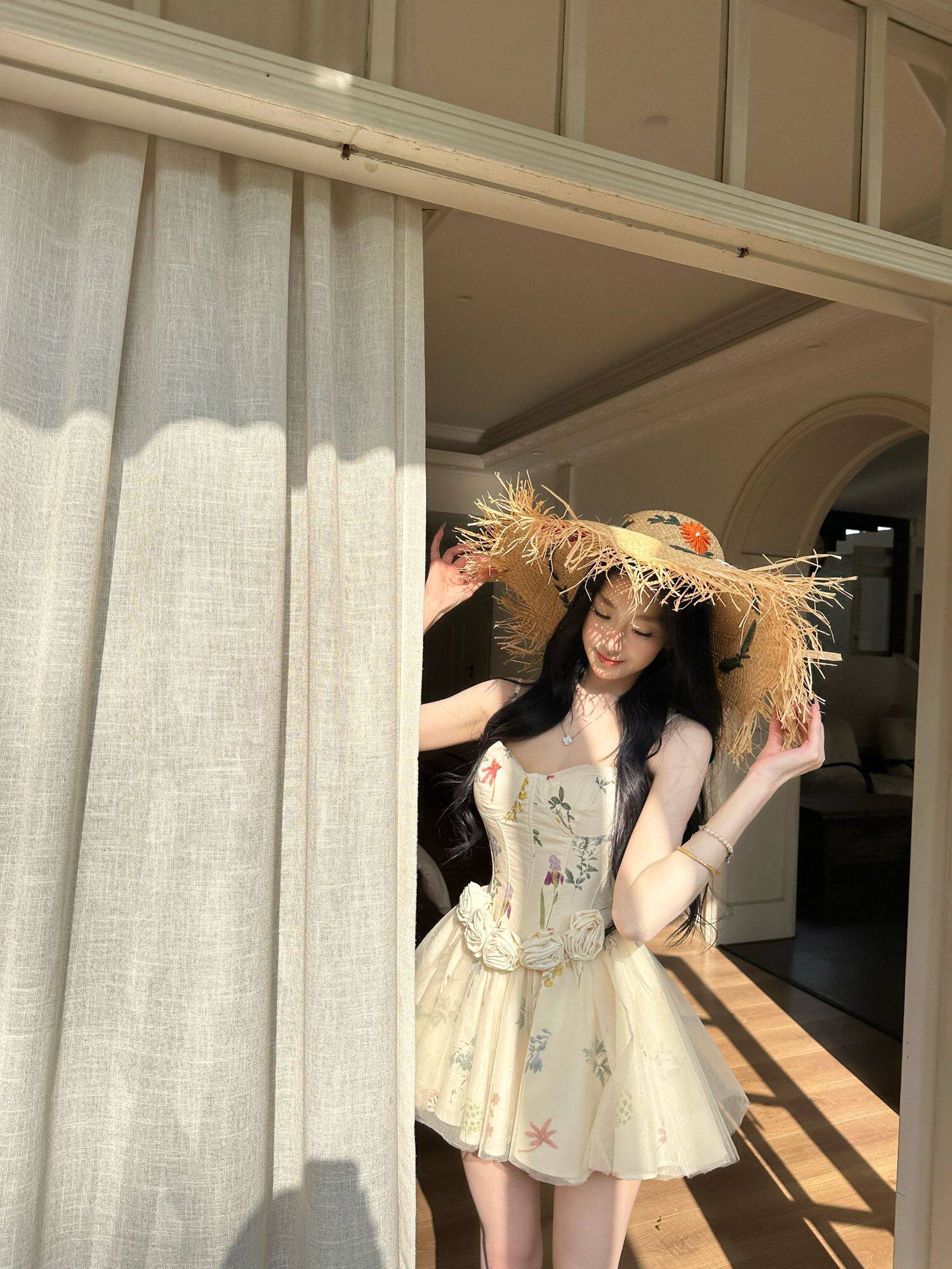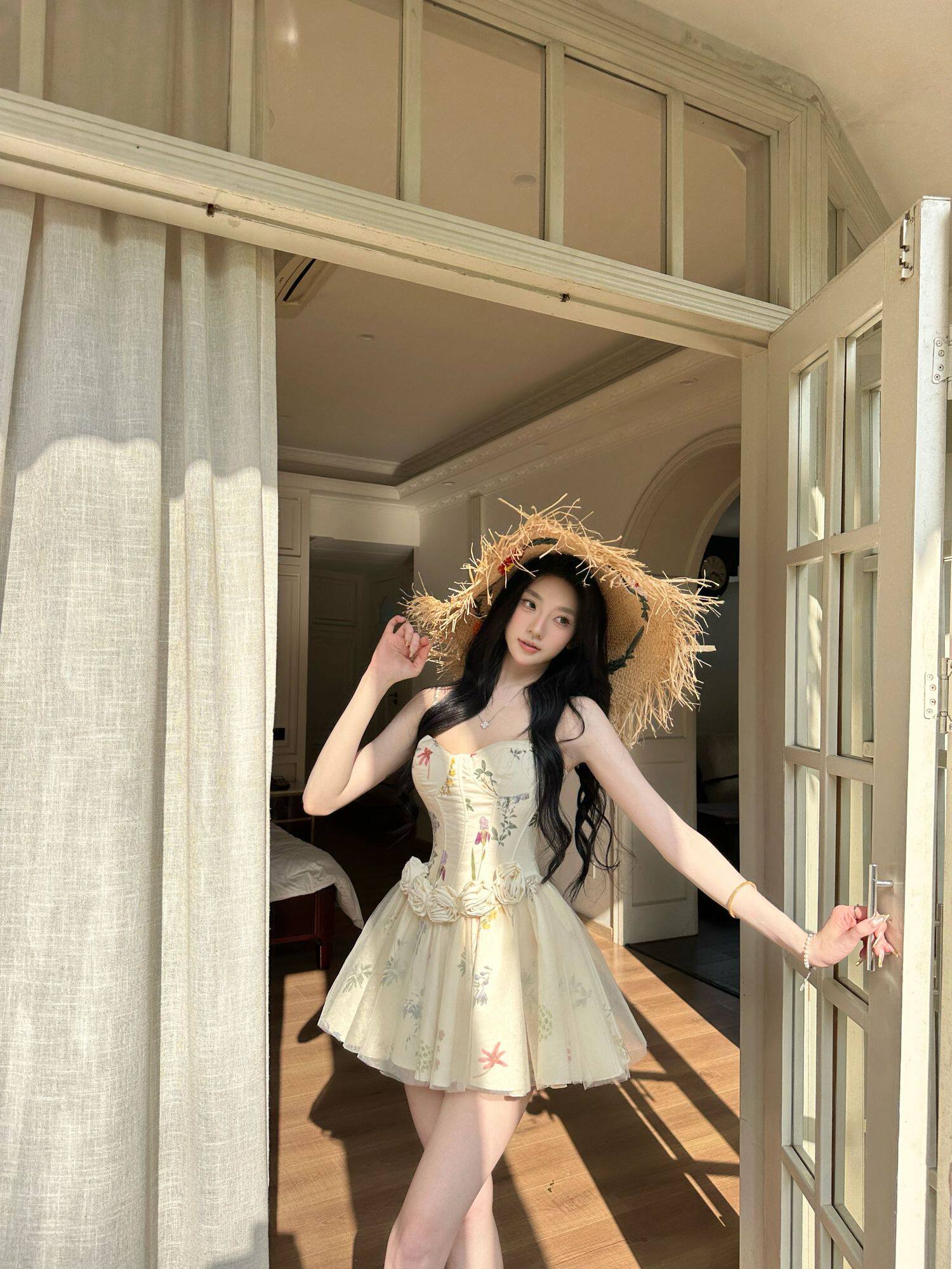 나 벤 아름 답 고 요염하다 프랑스식 순수한 욕망 바람 꽃무늬 튜브탑 슬립 펀 센스 여자 드레스