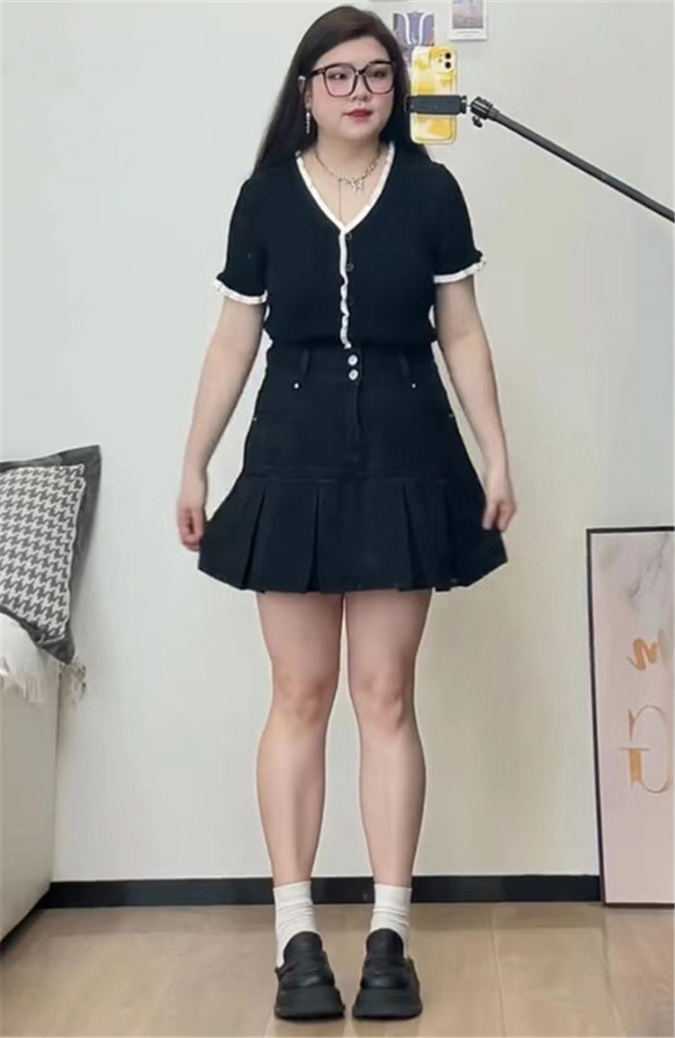 빅 사이즈 프랑스식 연령 감소 자카드 허리 수축 반팔 여성 드레스 봄 여름 섹션 지방 mm 배 모양 몸 슬림해 보이는 샤오 바이 치마