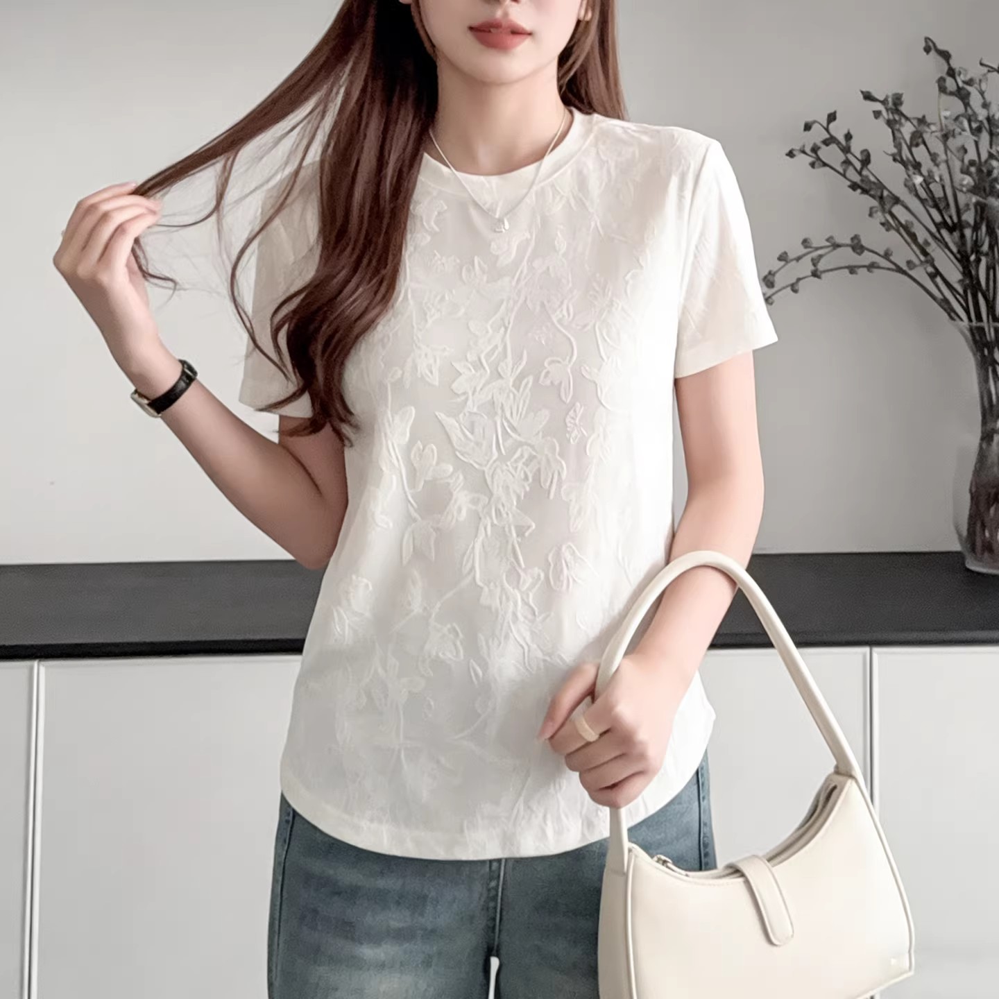 한 부서 고급 센스 대나무 마디 면 반팔 티셔츠 여성 2026 여름 새로운 몸매 가꾸기 한국 스타일 인사이드 가져 가라. 기본 셔츠 맨위