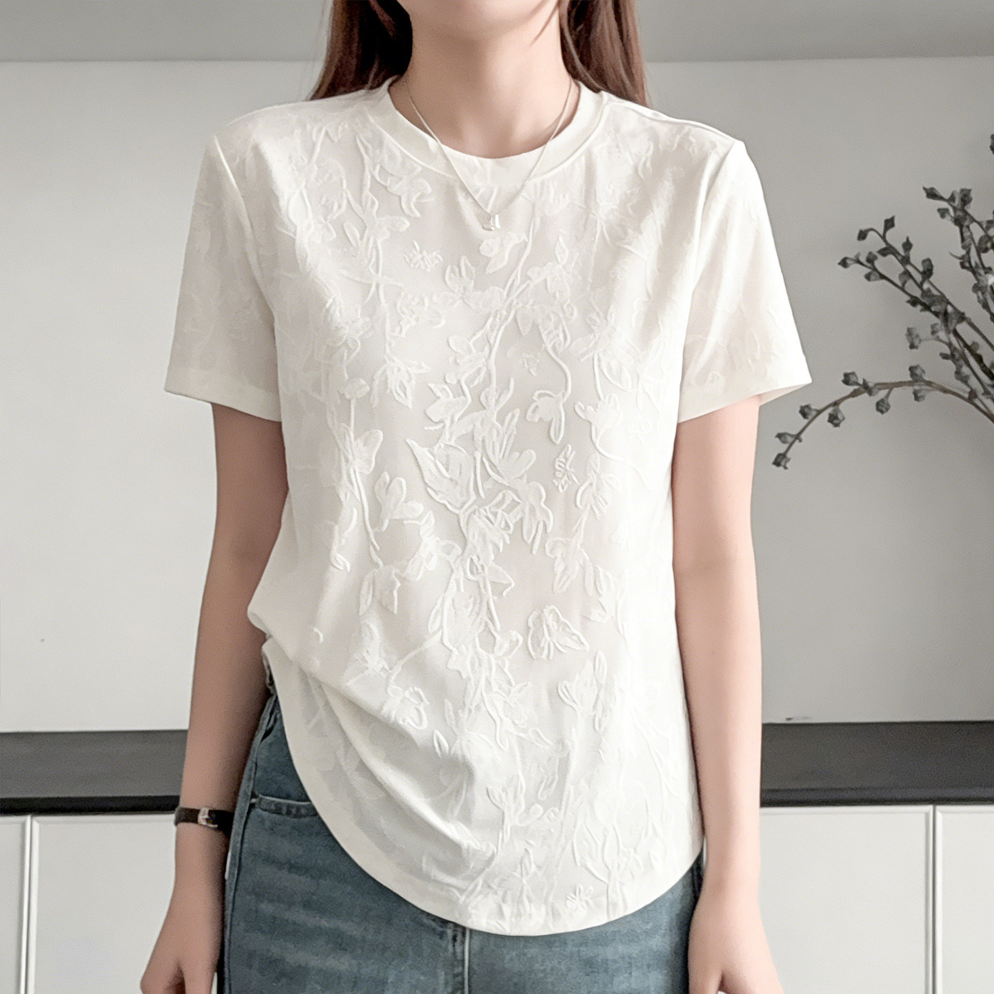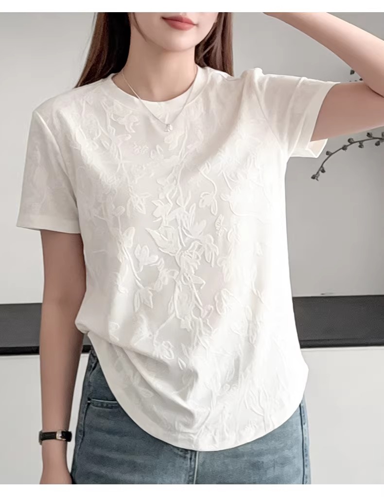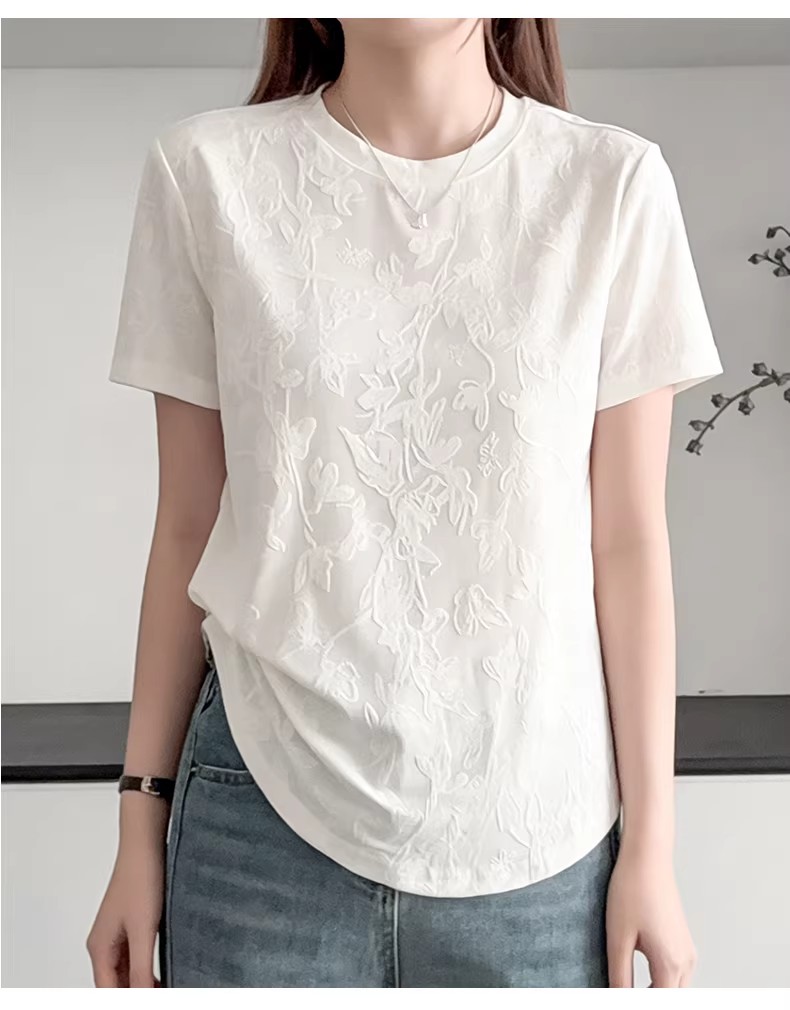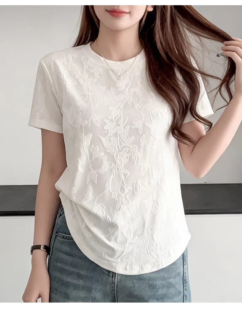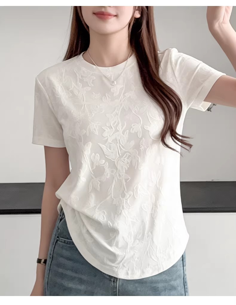 순면 리브 작은 키 쇼트 스타일 반팔 티셔츠 여성 여름 몸매 가꾸기 한국 스타일 레이스 나비 매듭 u 칼라 맨위 트렌디