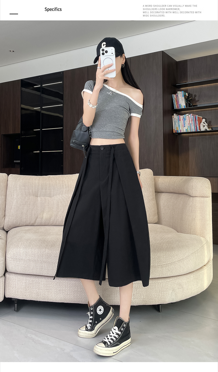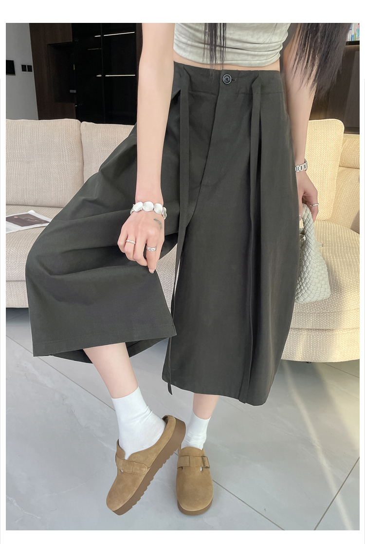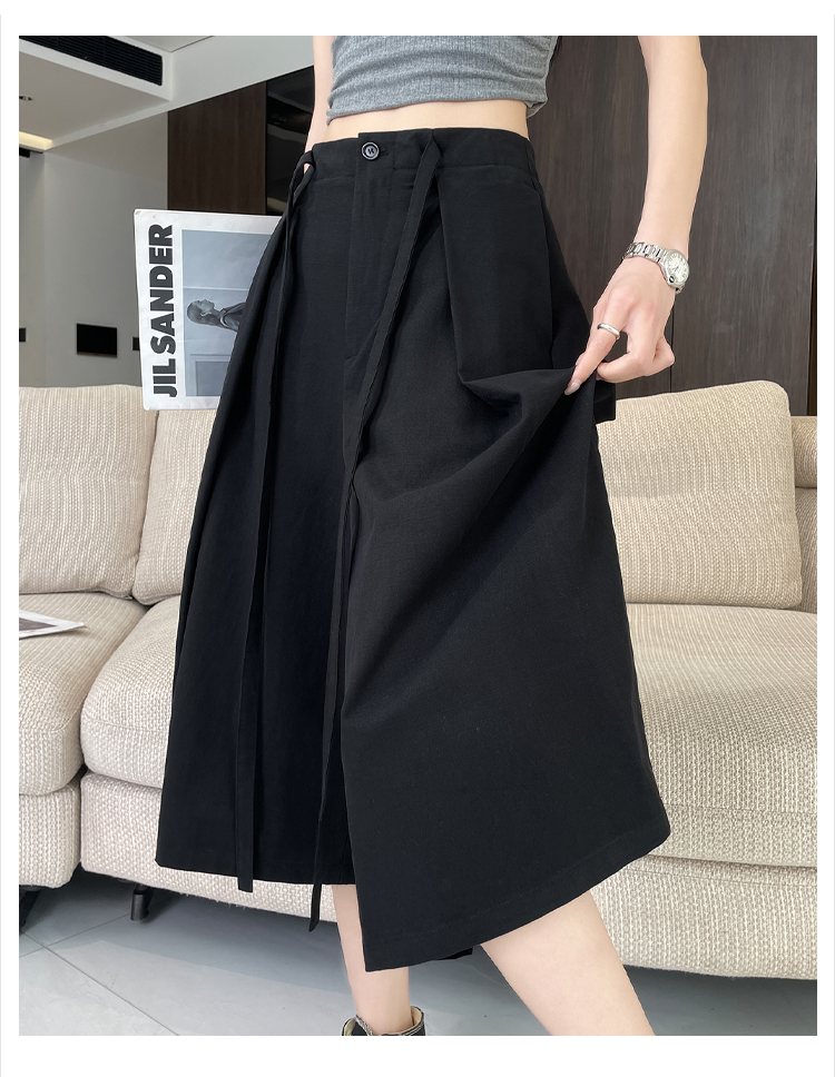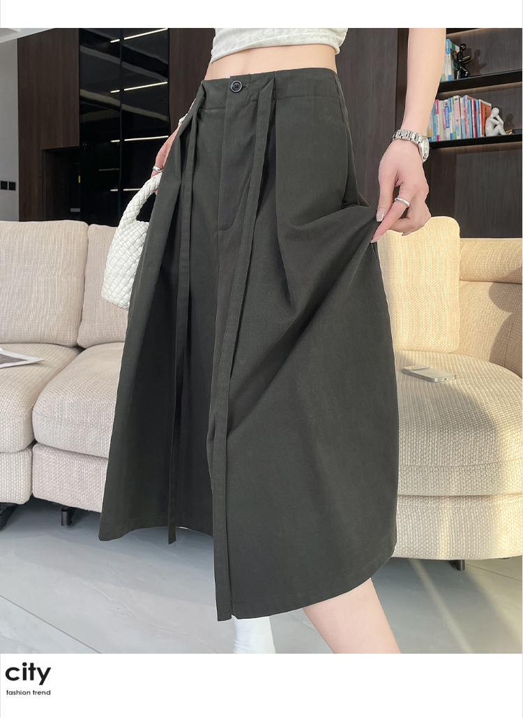 실사 질감 센스 한 마디 반신 스커트 2026 여름 하이웨이스트 슬림해 보이는 패션 다용도 레이스업 캐주얼 빅 플레어 스커트