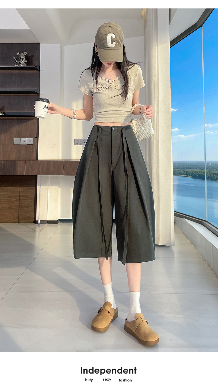 실사 둘 착용 8 점 워크웨어 팬츠 2026 여름 디자인 센스 하이웨이스트 펌프 로프 바지 루즈핏 패션 와이드 레그 팬츠