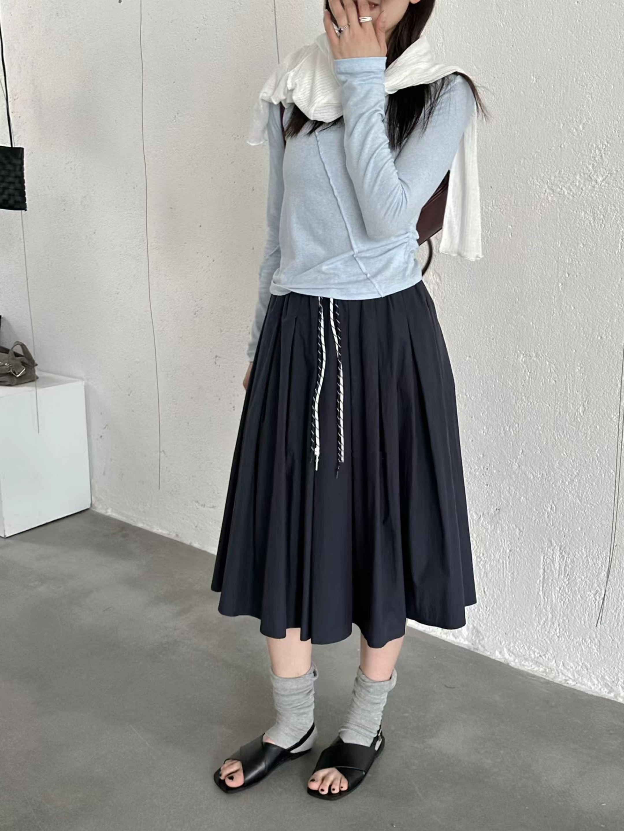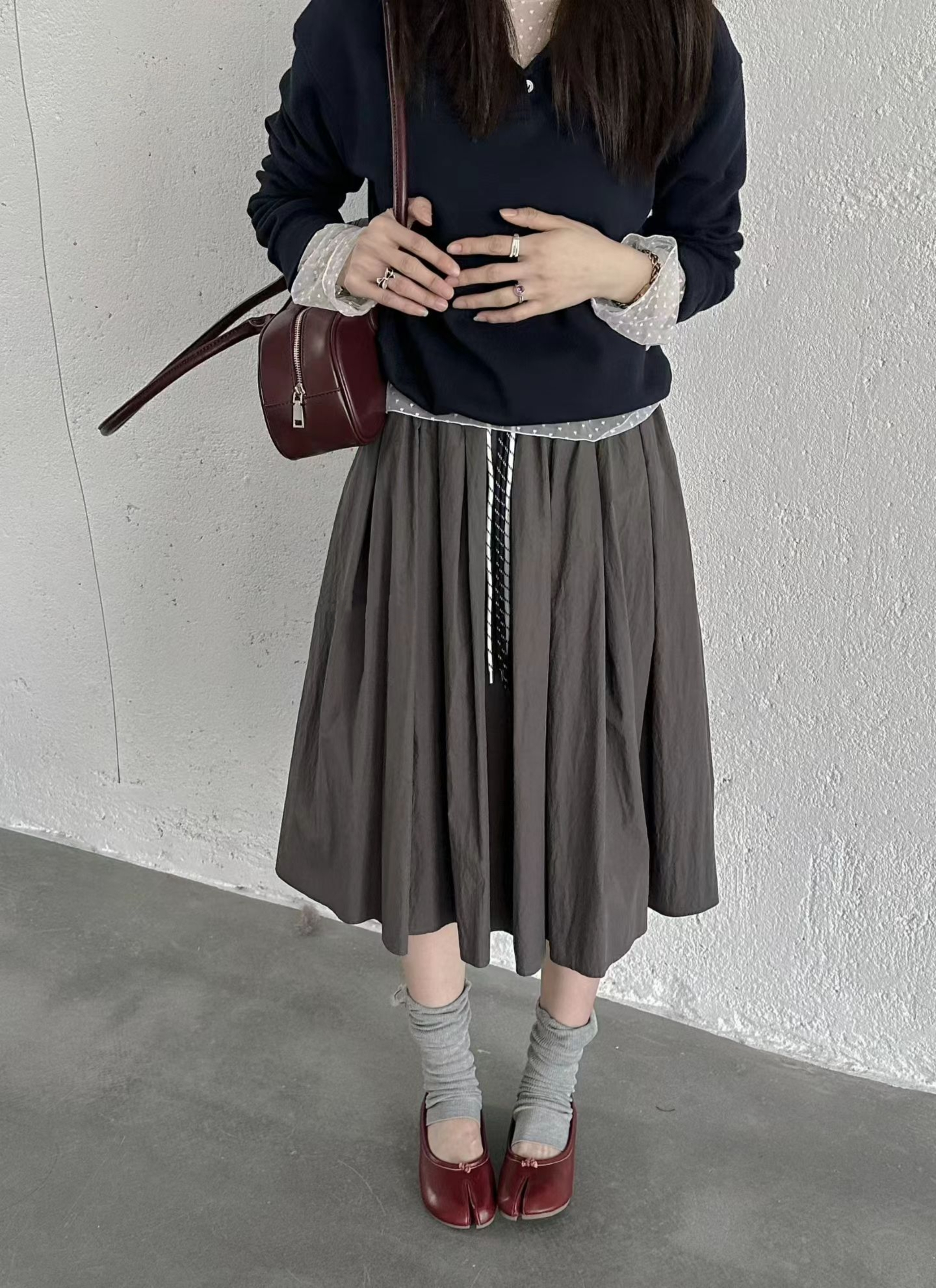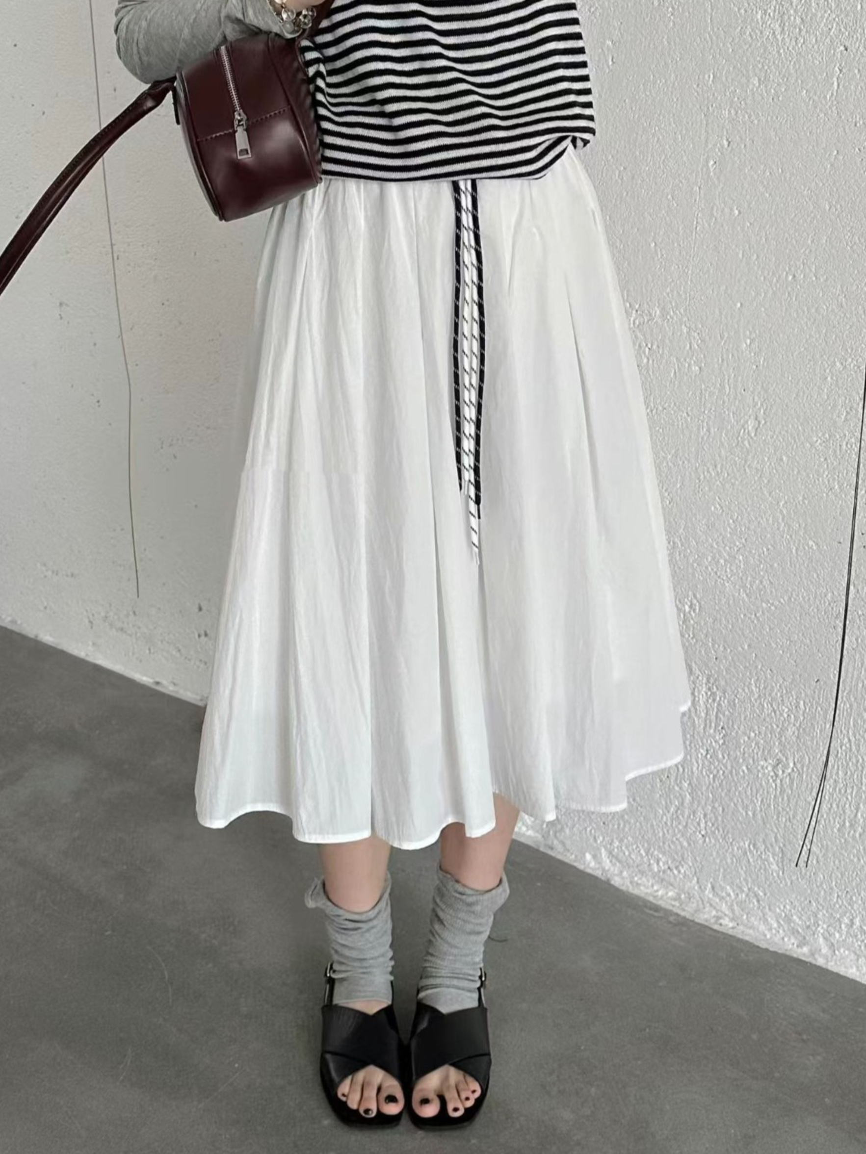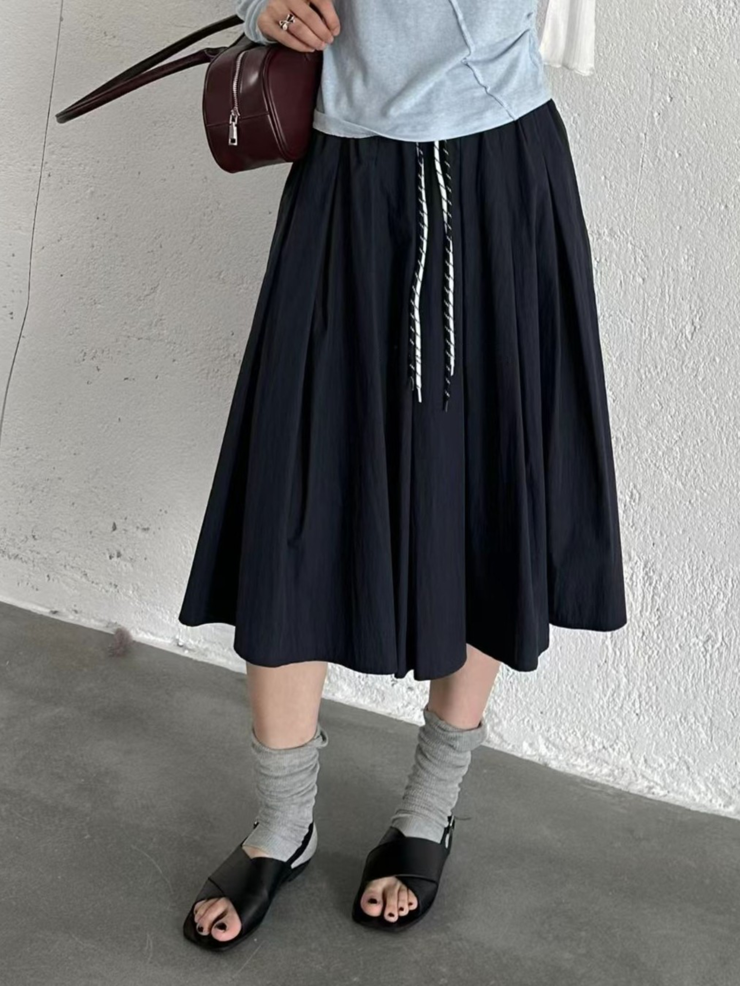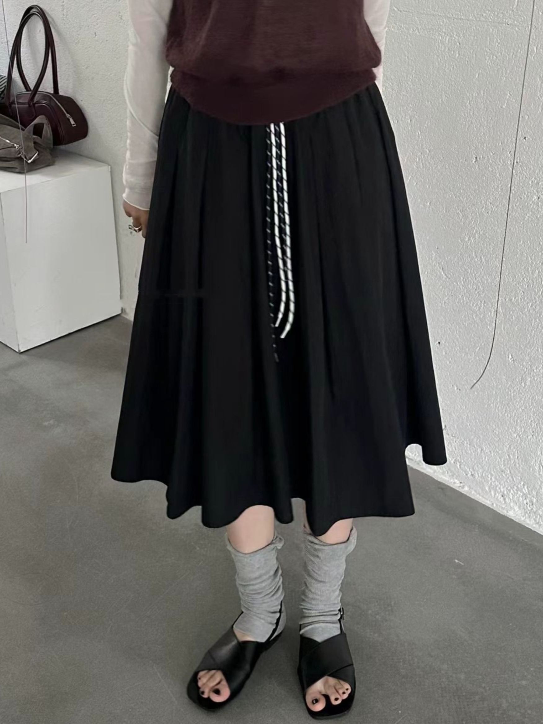 물리적 인지도 있음 업데이트 프랑스식 레트로 플리츠 스커트 디자인 센스 하이웨이스트 슬림해 보이는 다용도 A라인 스커트 반신 스커트 여성
