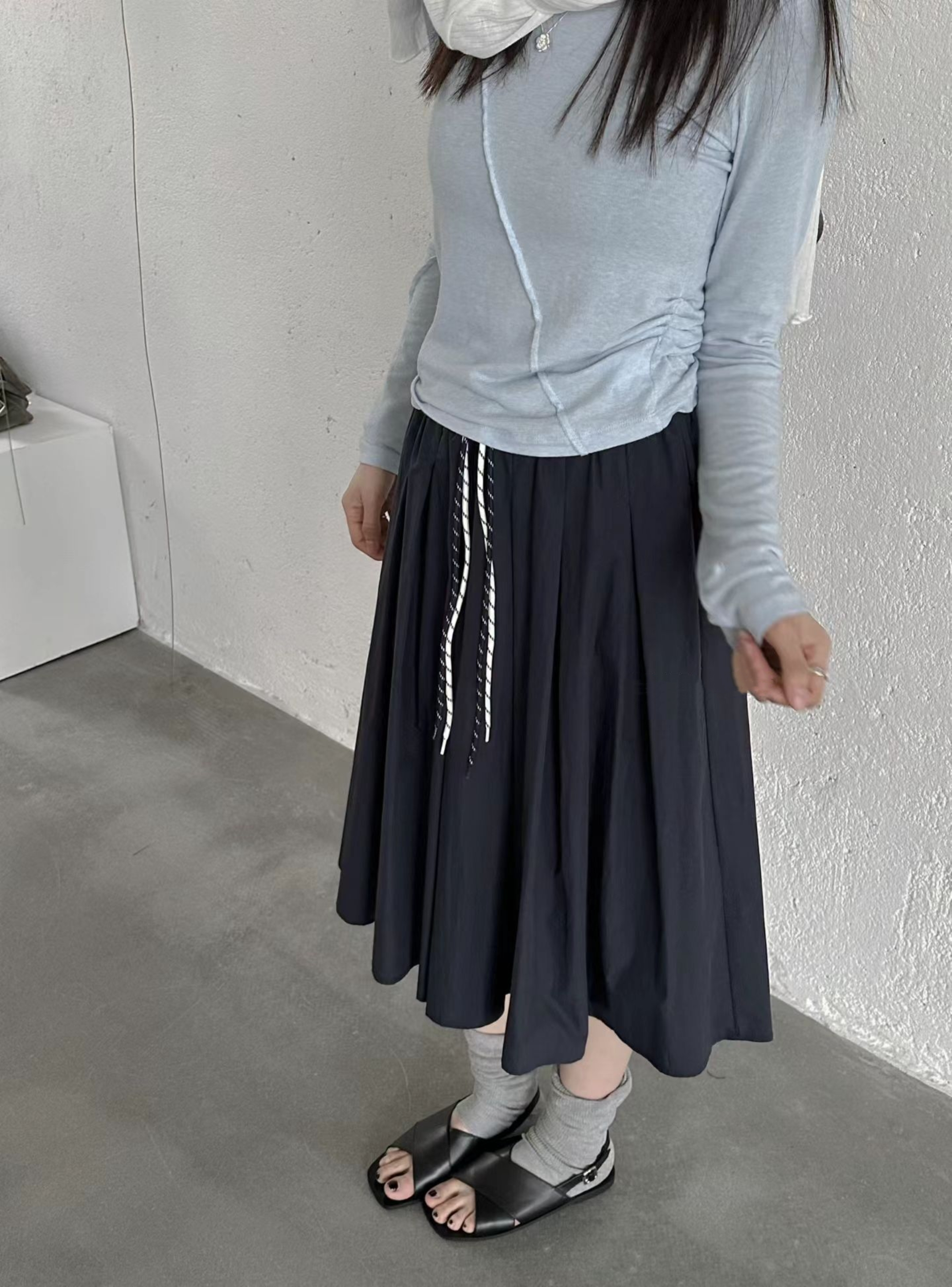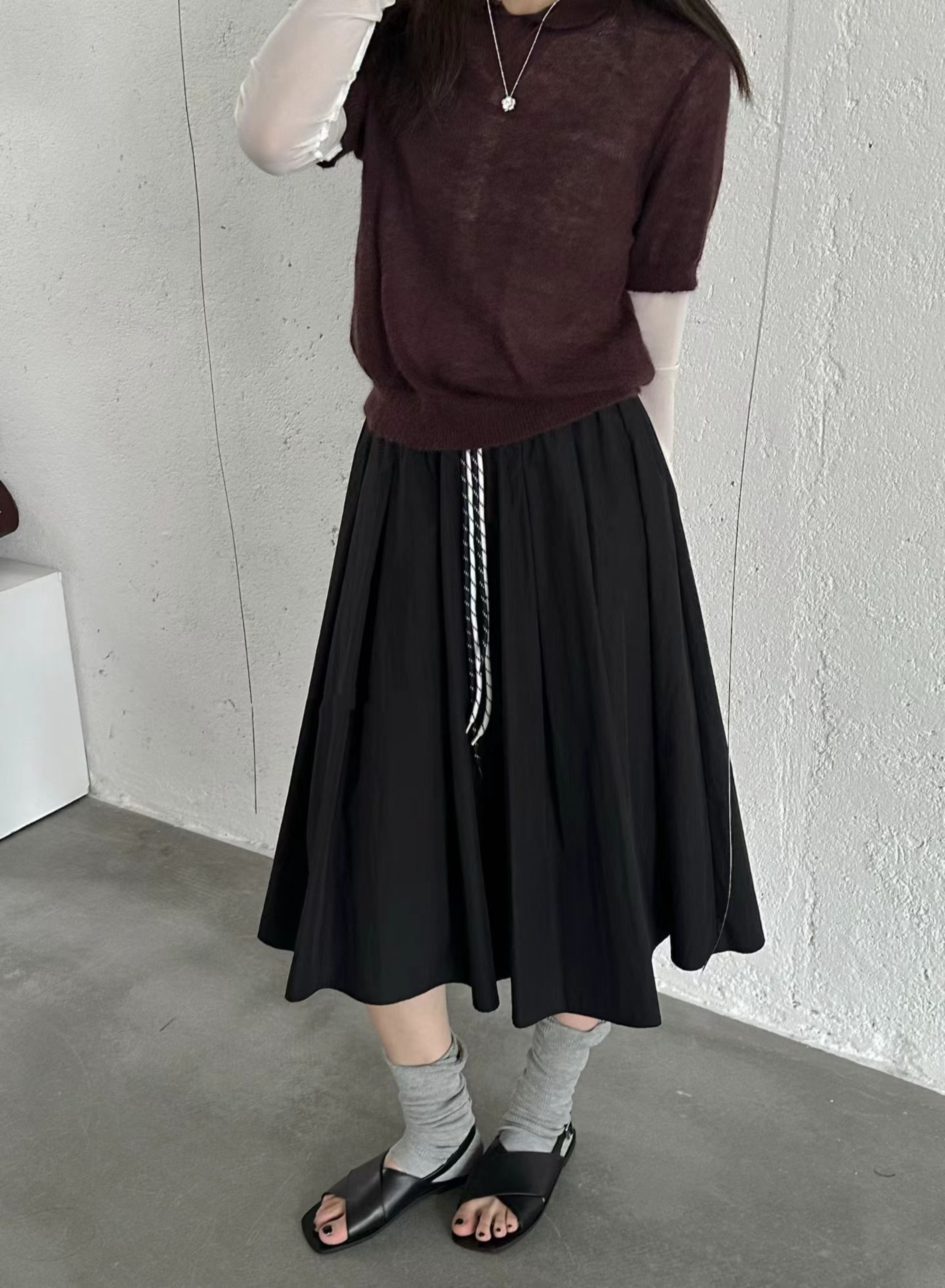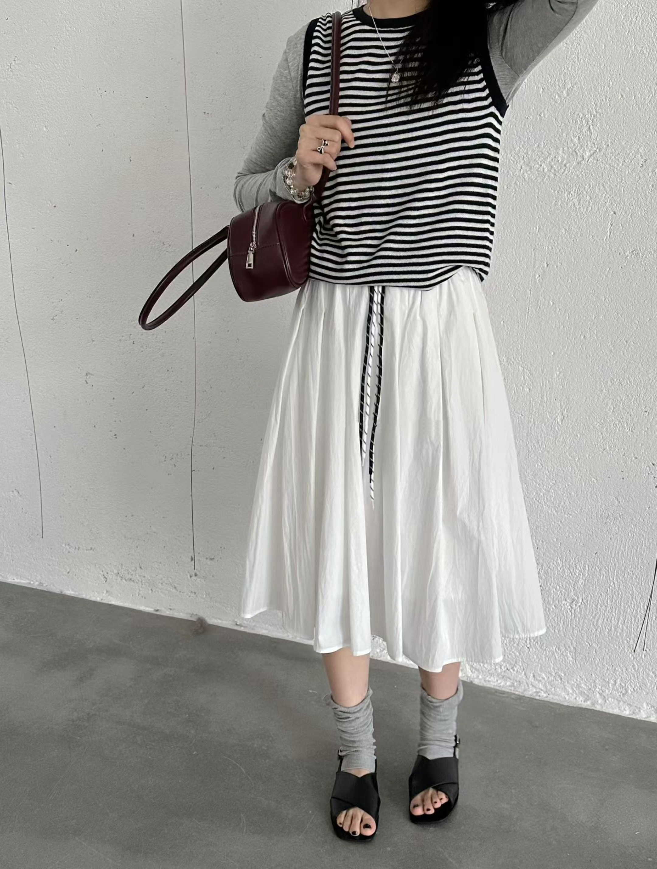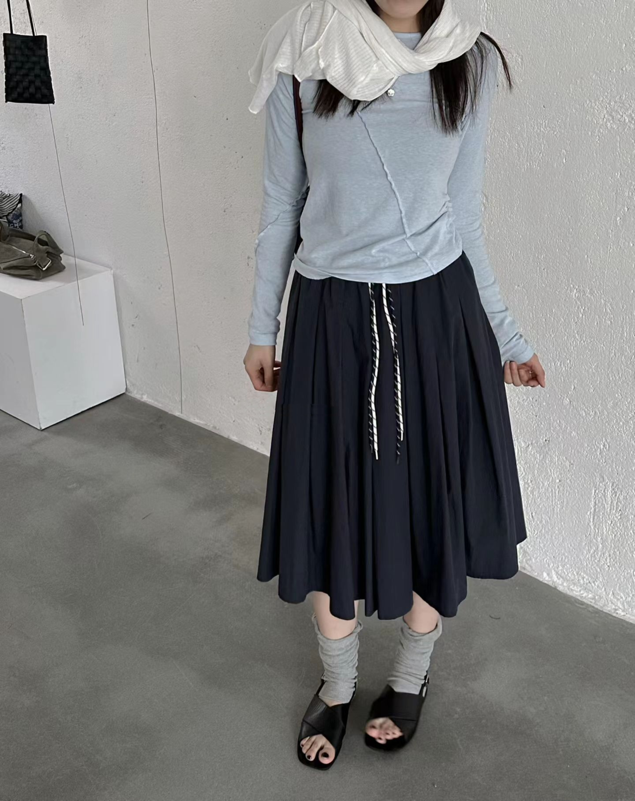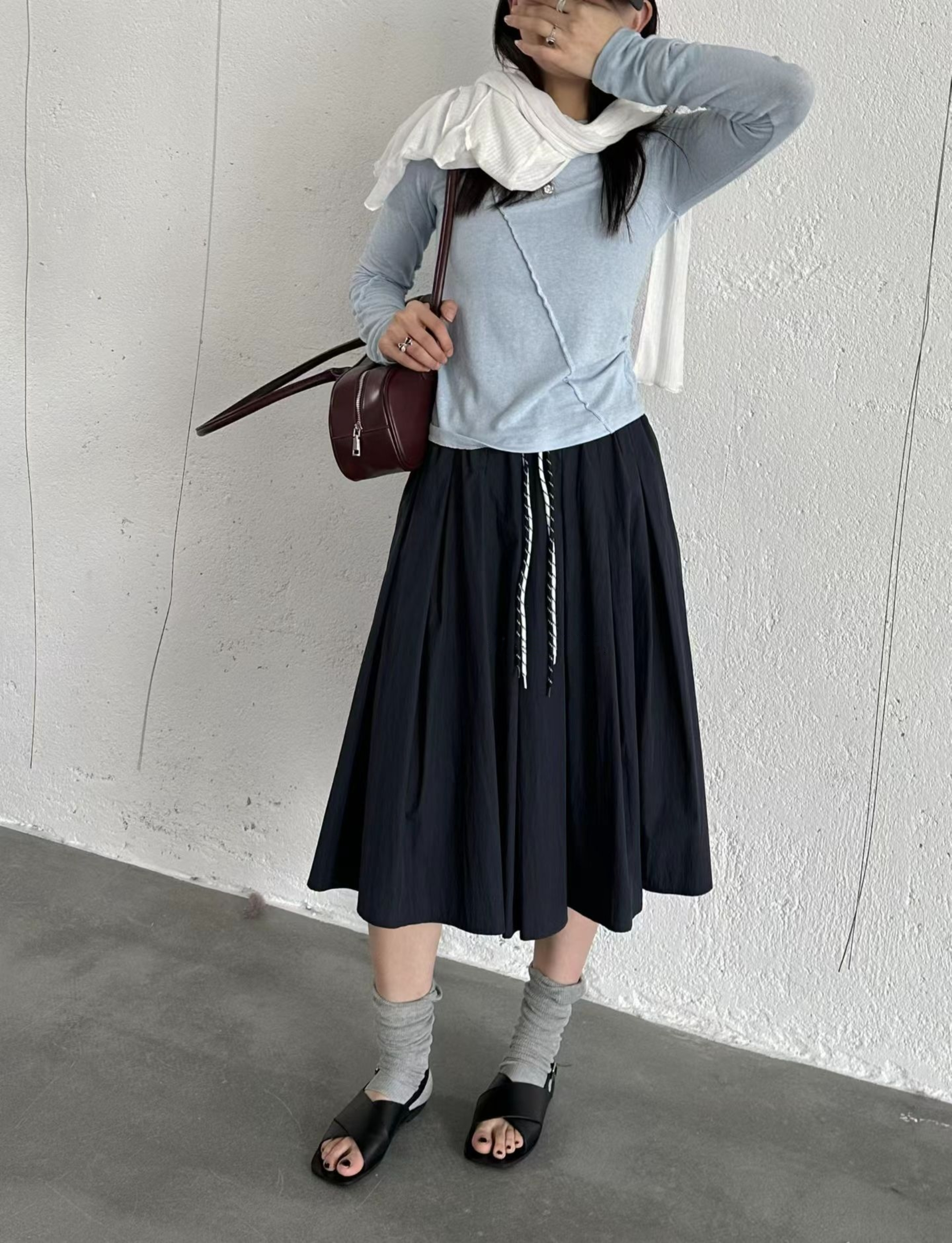 물리적 인지도 있음 업데이트 프랑스식 레트로 플리츠 스커트 디자인 센스 하이웨이스트 슬림해 보이는 다용도 A라인 스커트 반신 스커트 여성