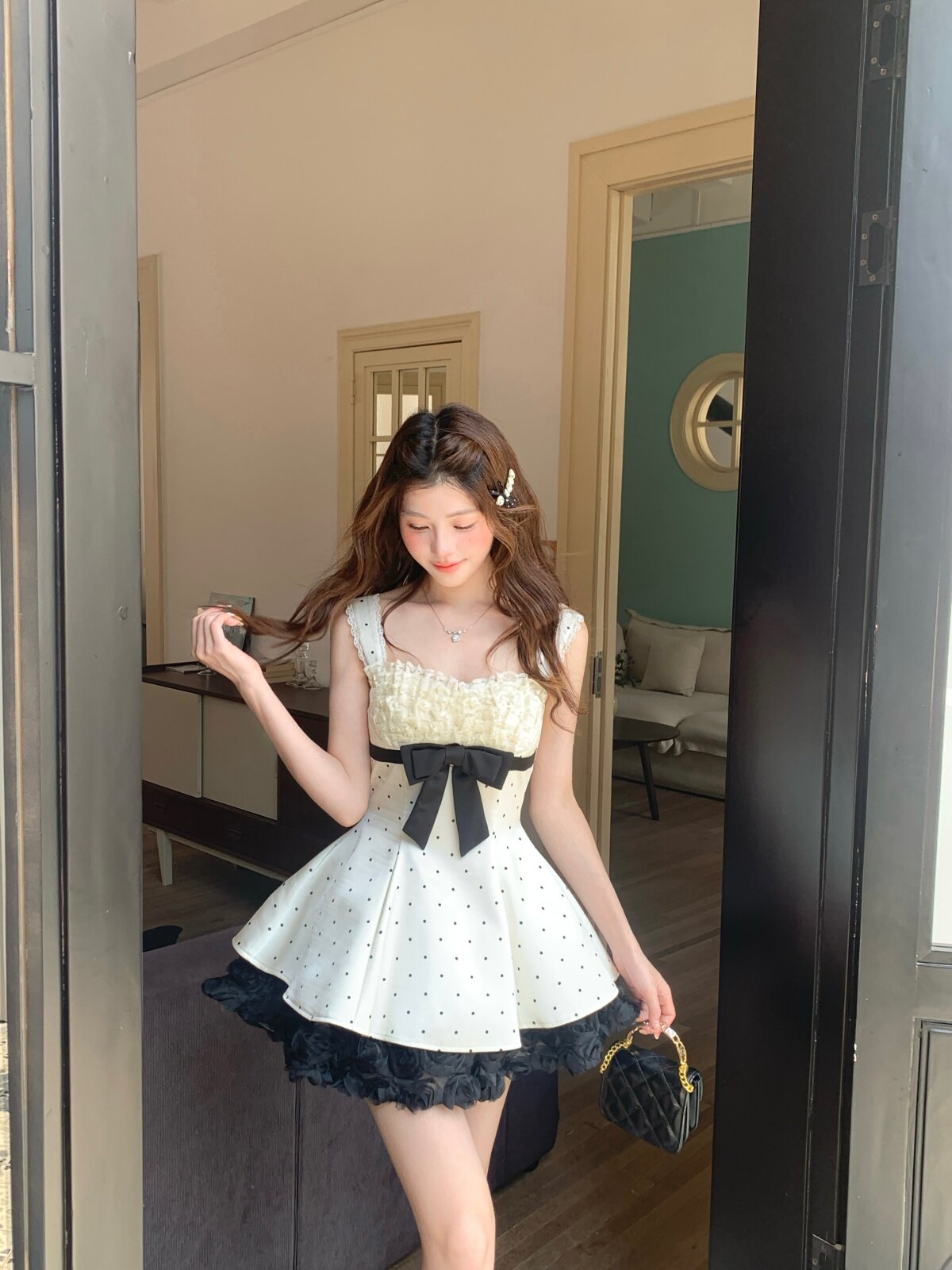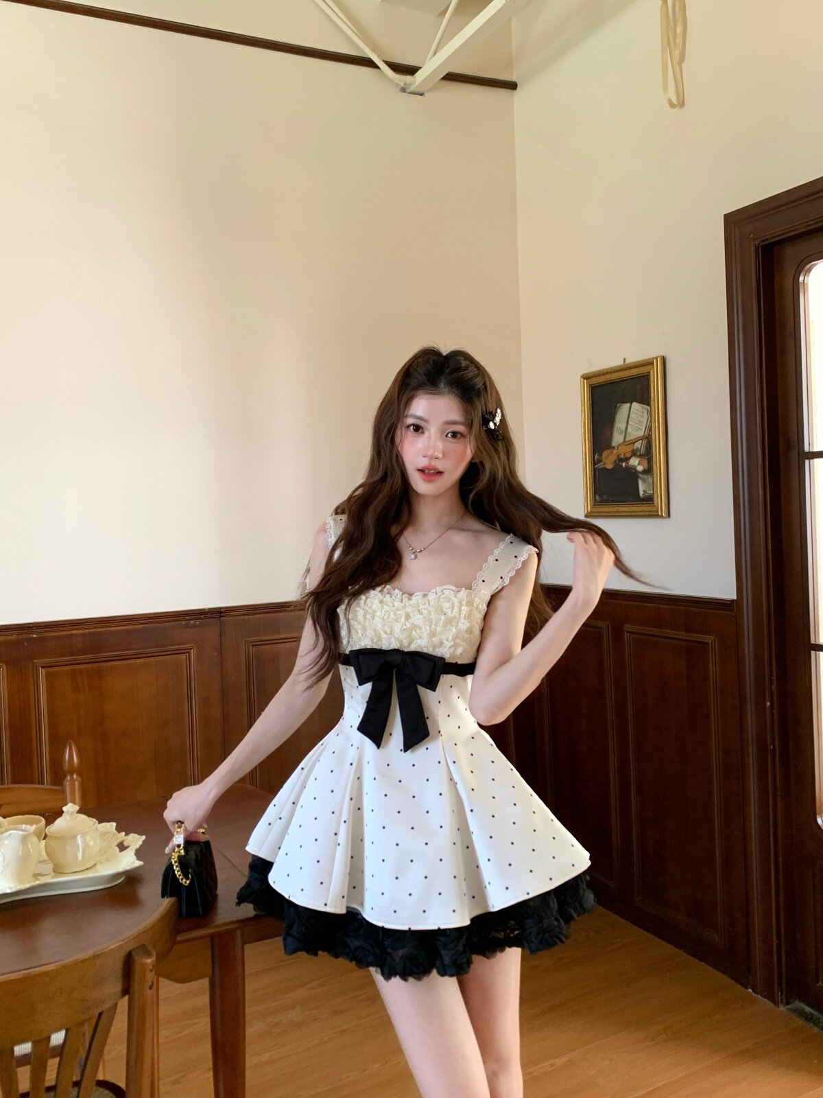 그리드 새싹 소녀 린 린 있음 바쁜 귀여운 소녀 바람 몸매 가꾸기 슬림해 보이는 레이스 레이스 절묘한 투피스 세트