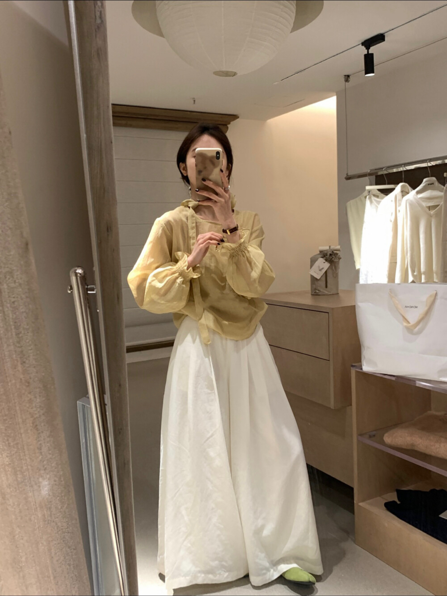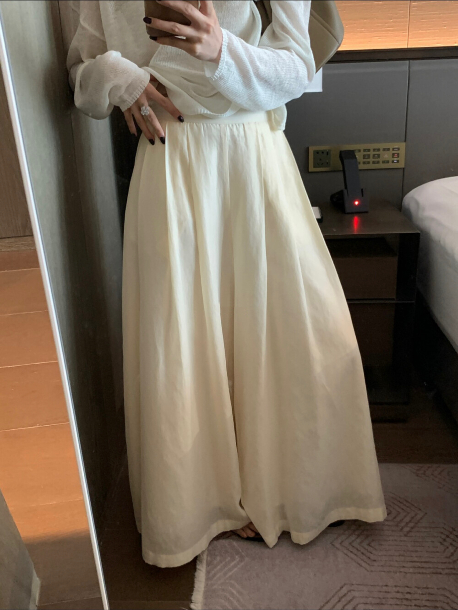한 부서 미니멀리즘 고급 센스 레이스 레이스 랜턴 와이드 레깅스 바지 새로운 자외선 차단 캐주얼 바지