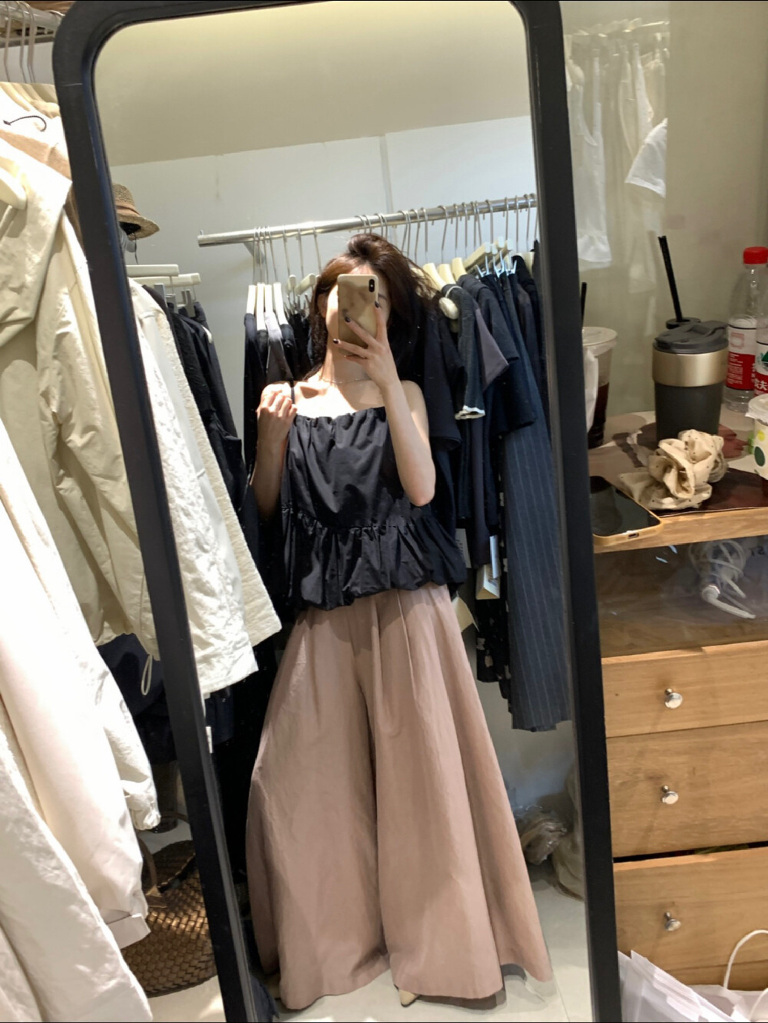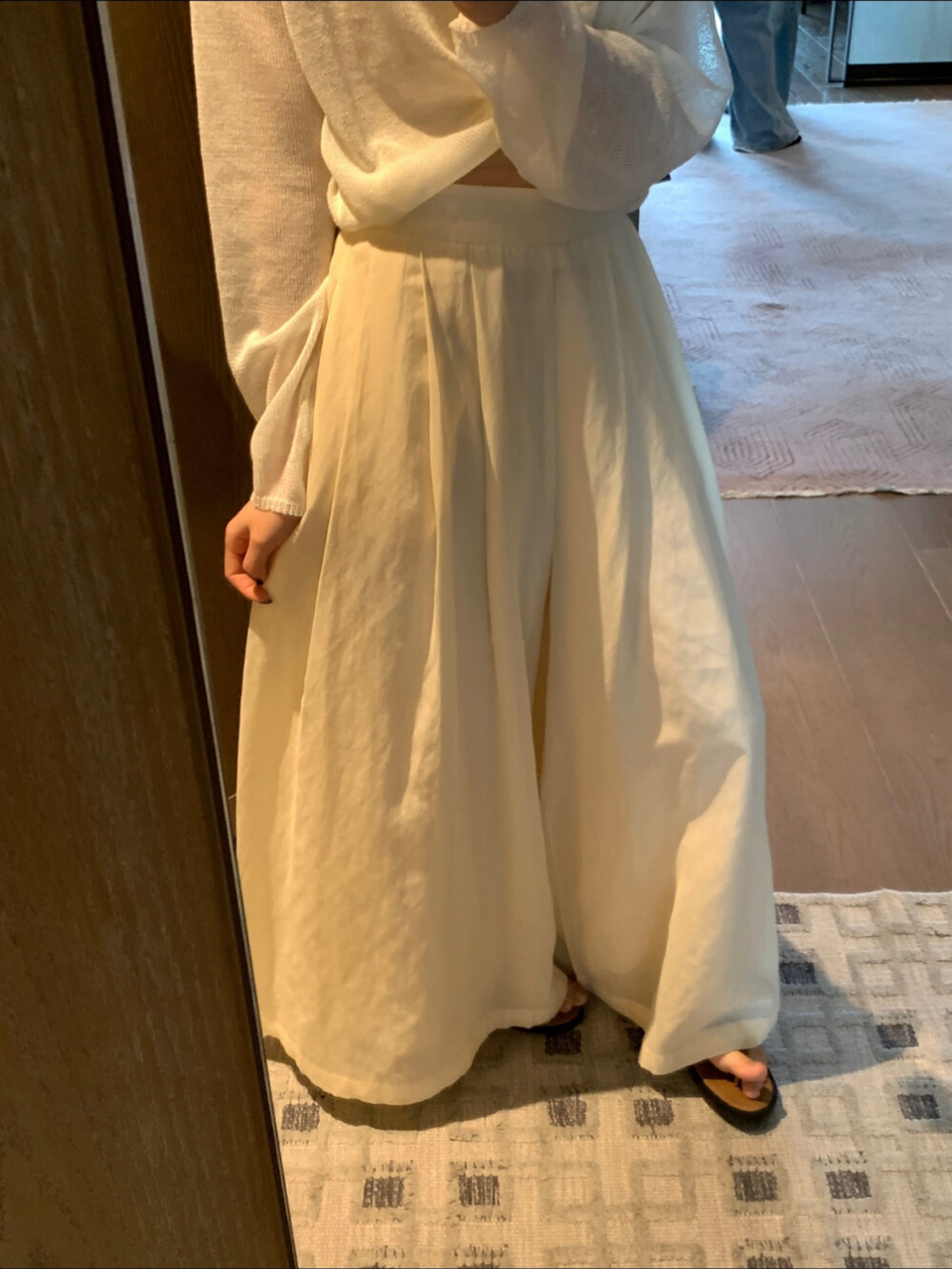 여름 섹션 새로운 프릴 도루 센스 와이드 레그 팬츠 캐주얼 바지 여성