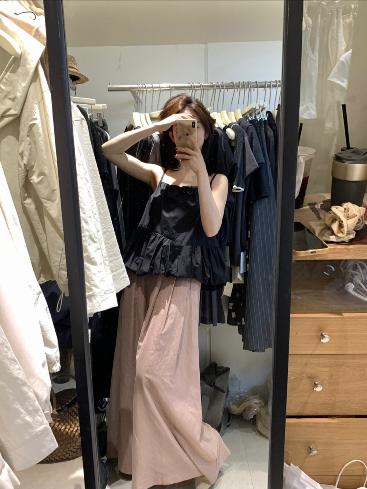 물리적 인지도 있음 업데이트 프랑스식 레트로 플리츠 스커트 디자인 센스 하이웨이스트 슬림해 보이는 다용도 A라인 스커트 반신 스커트 여성
