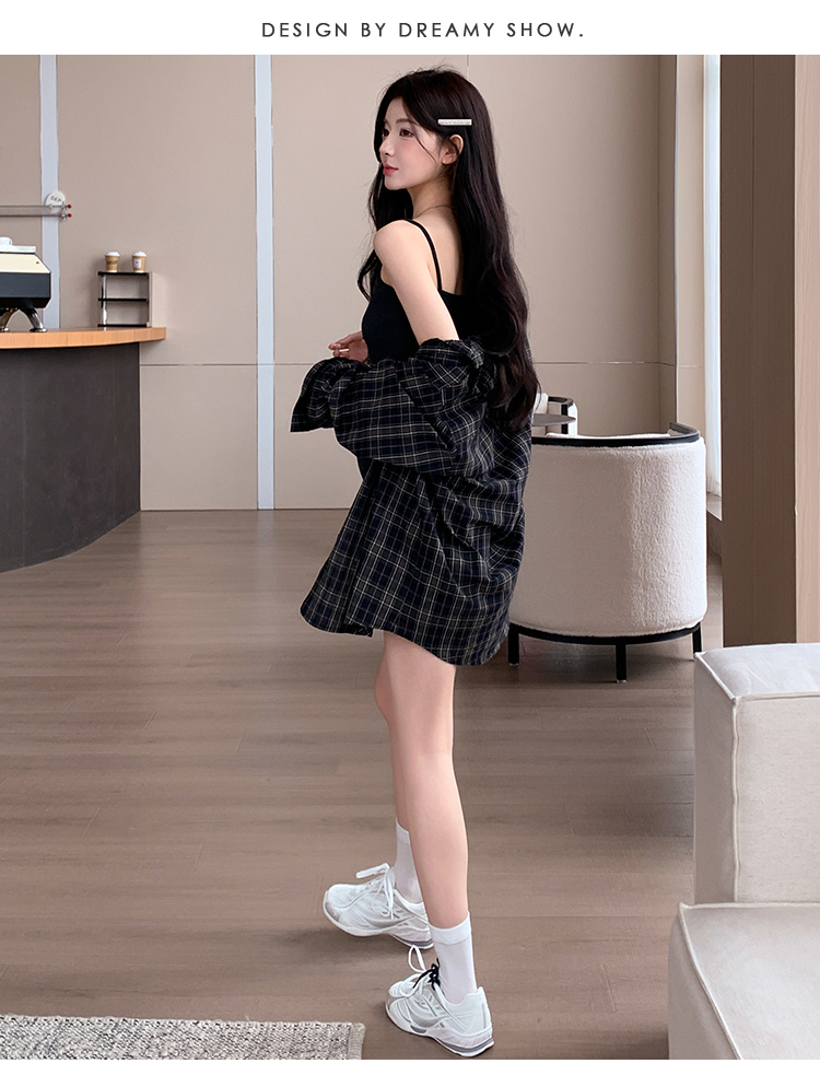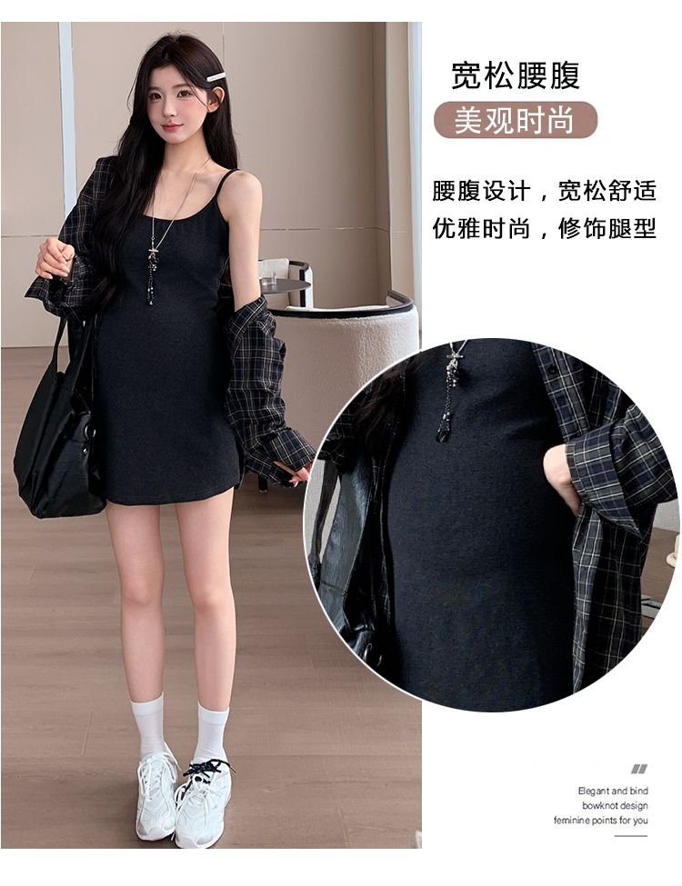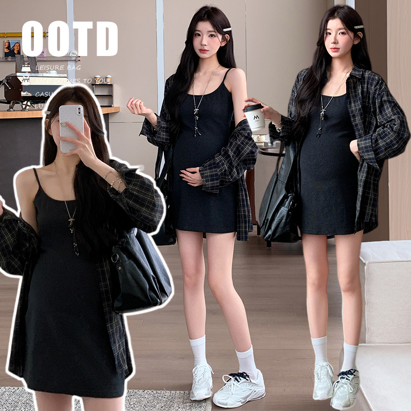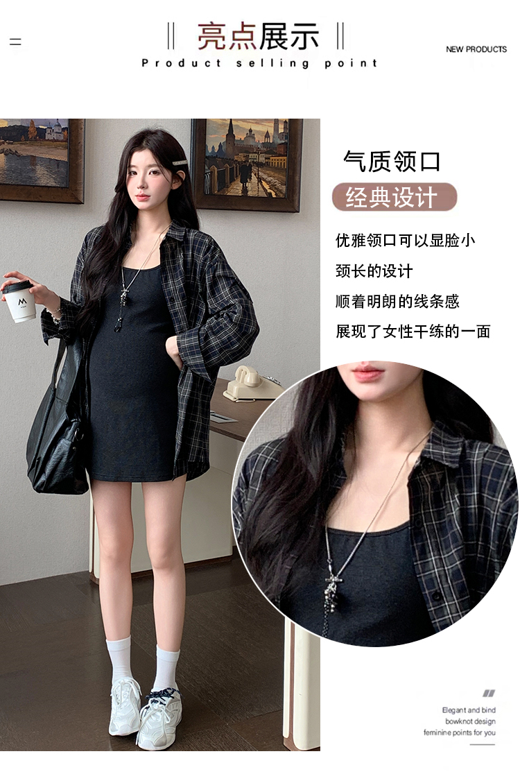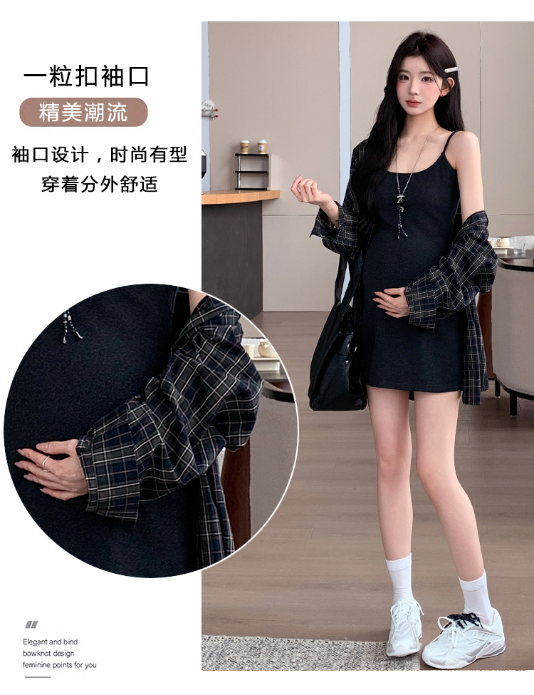 실사 지금 지금 임산부 새로운 세트 대 에디션 격자 무늬 셔츠 슬립 드레스 투피스 세트