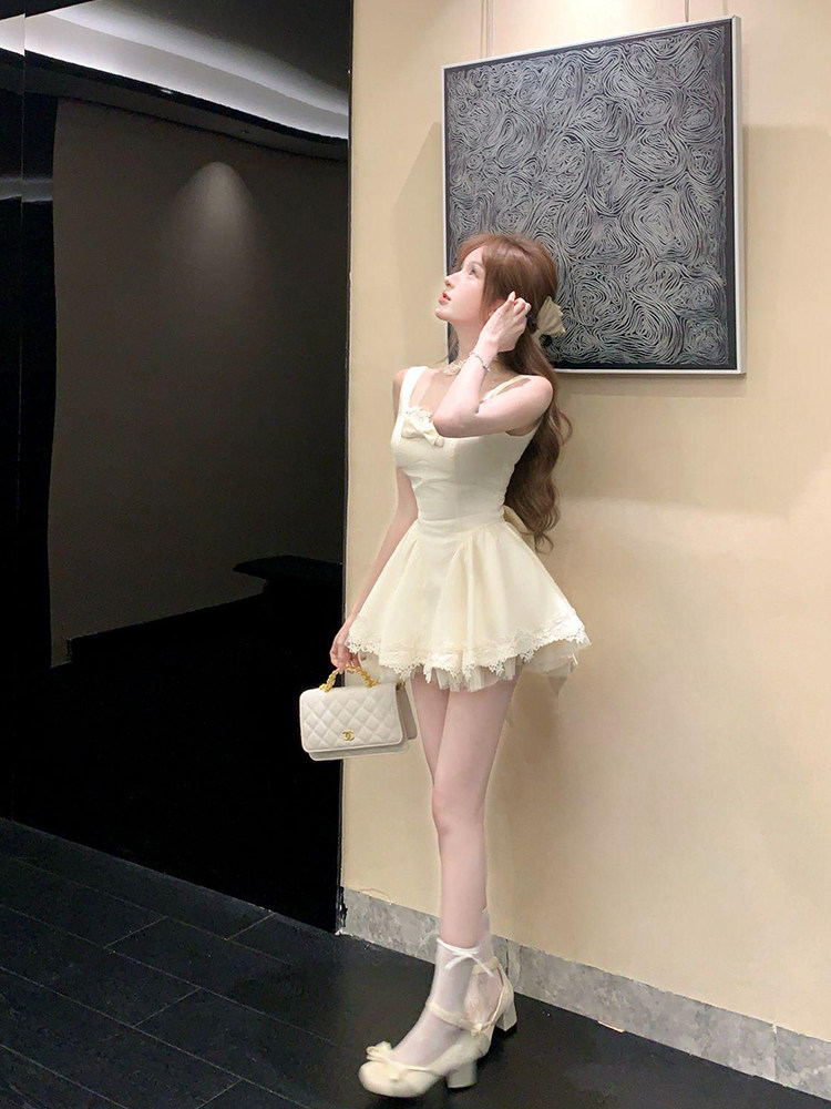 그리드 새싹 소녀 린 린 있음 바쁜 귀여운 소녀 바람 몸매 가꾸기 슬림해 보이는 레이스 레이스 절묘한 투피스 세트