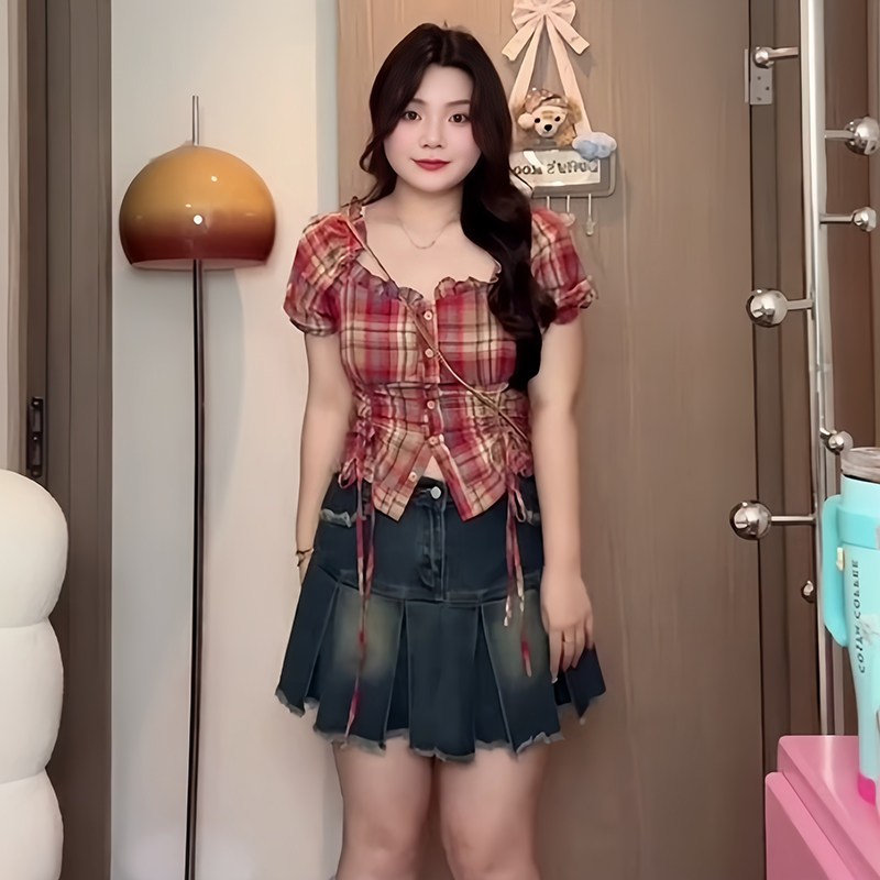 빅 사이즈 프랑스식 연령 감소 자카드 허리 수축 반팔 여성 드레스 봄 여름 섹션 지방 mm 배 모양 몸 슬림해 보이는 샤오 바이 치마