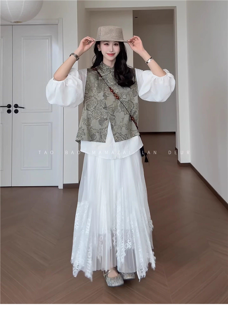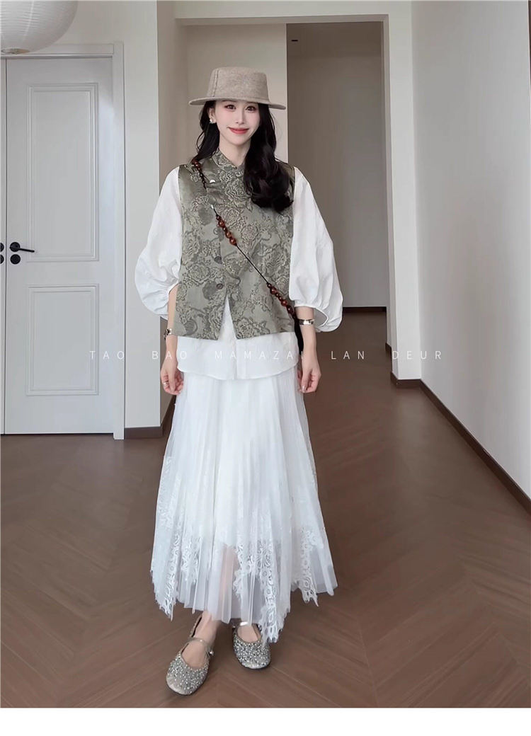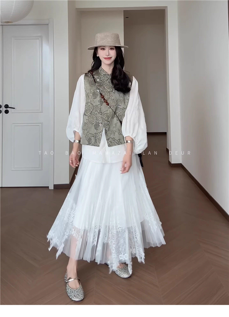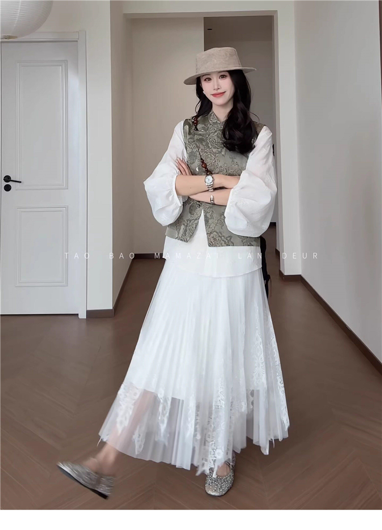 빅 사이즈 여성 의류 지방 mm 작은 대중 디자인 센스 레이스 질감 곡물 조끼 여성 드레스 여름 품격 슬림해 보이는 롱 스커트