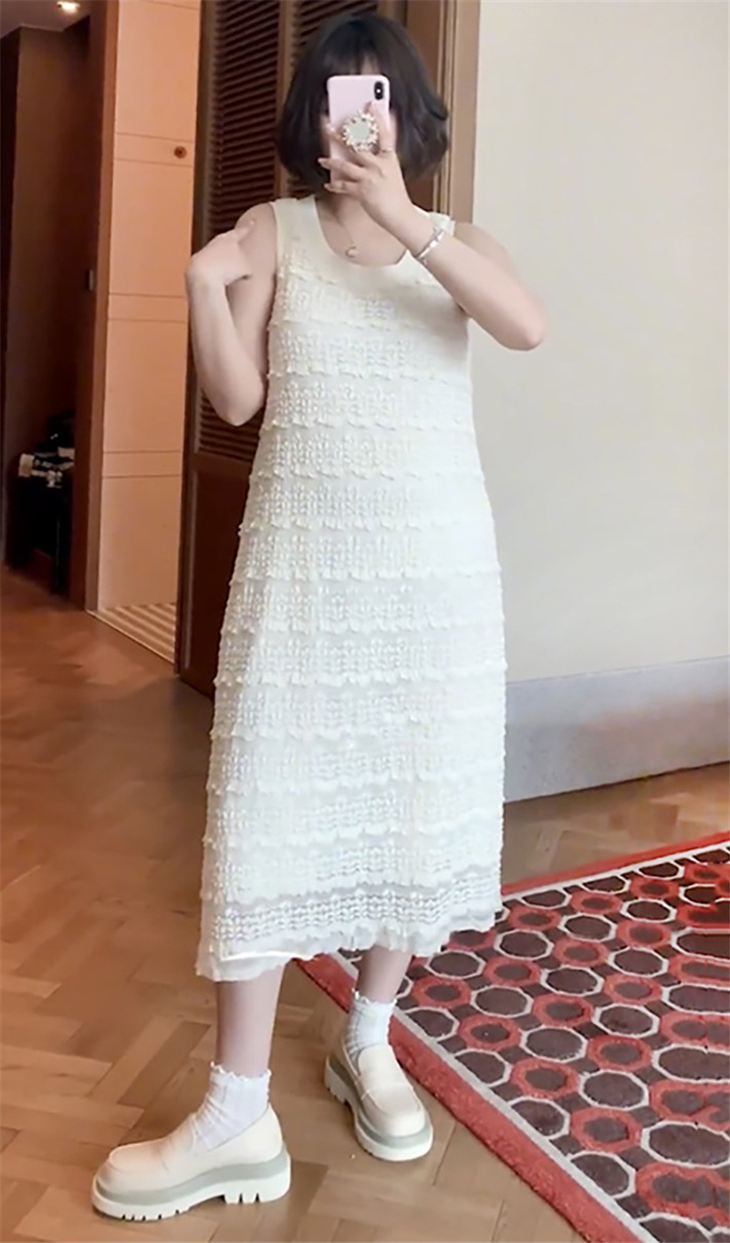 빅 사이즈 여성 의류 지방 mm 그는 벤 바람 다이아몬드 세팅 비즈 박기 라운드 넥 반팔 드레스 2026 여름 품격 슬림해 보이는 치마