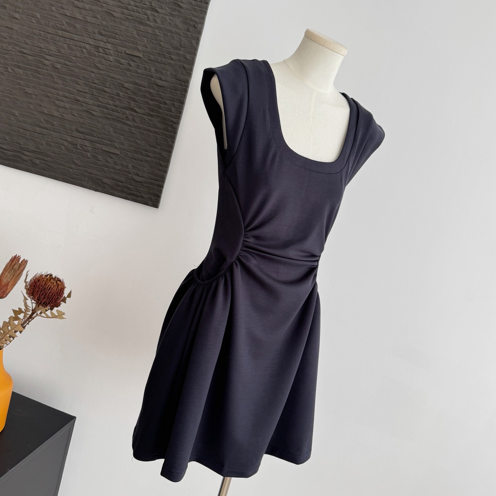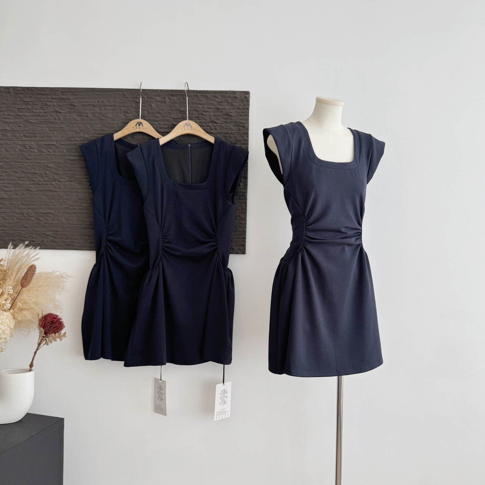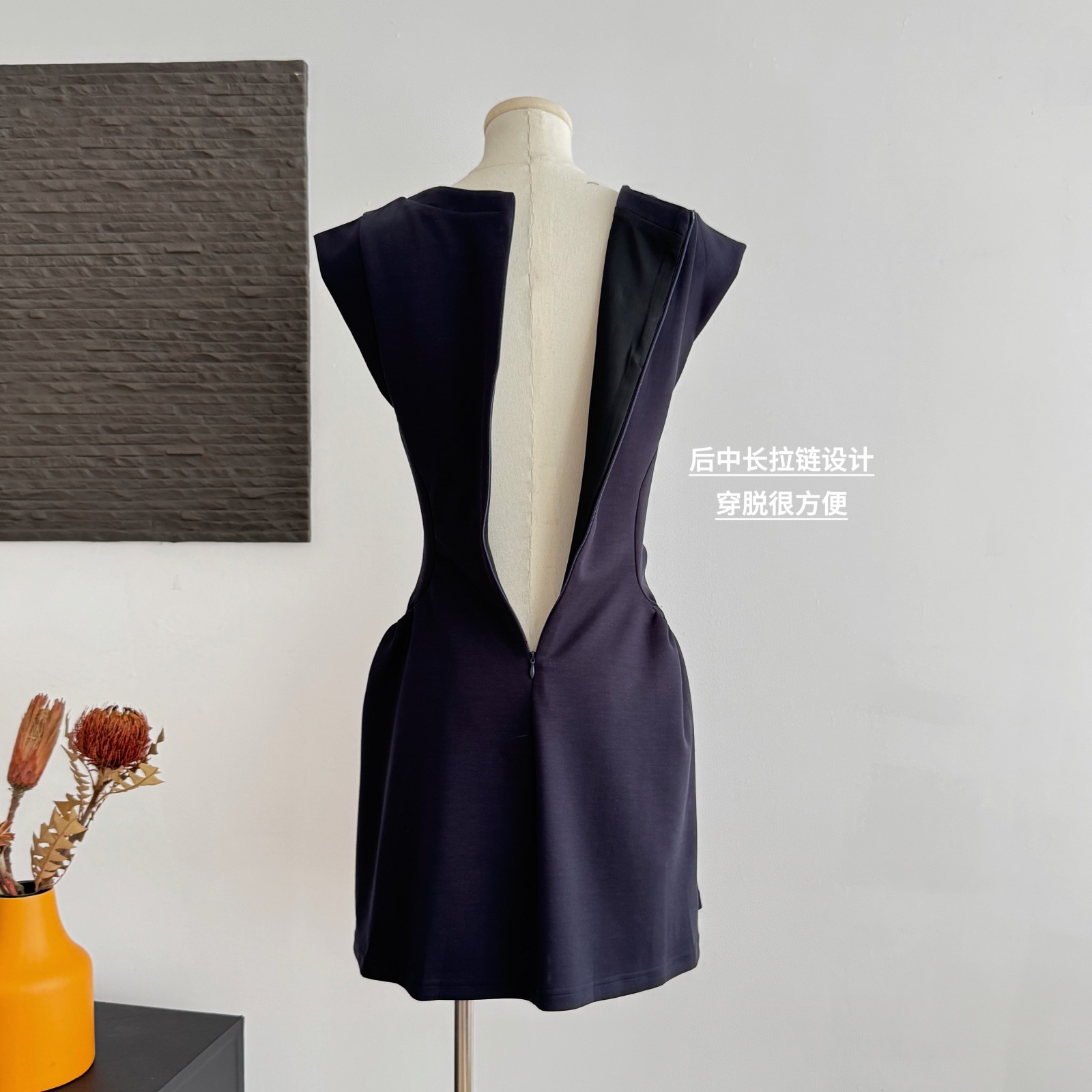 yuyureal 오스트리아 블루 좋은 주간 실크 뒤로 비틀림 말뚝 더미 칼라 반하이넥 조끼 백리스 민소매 맨위