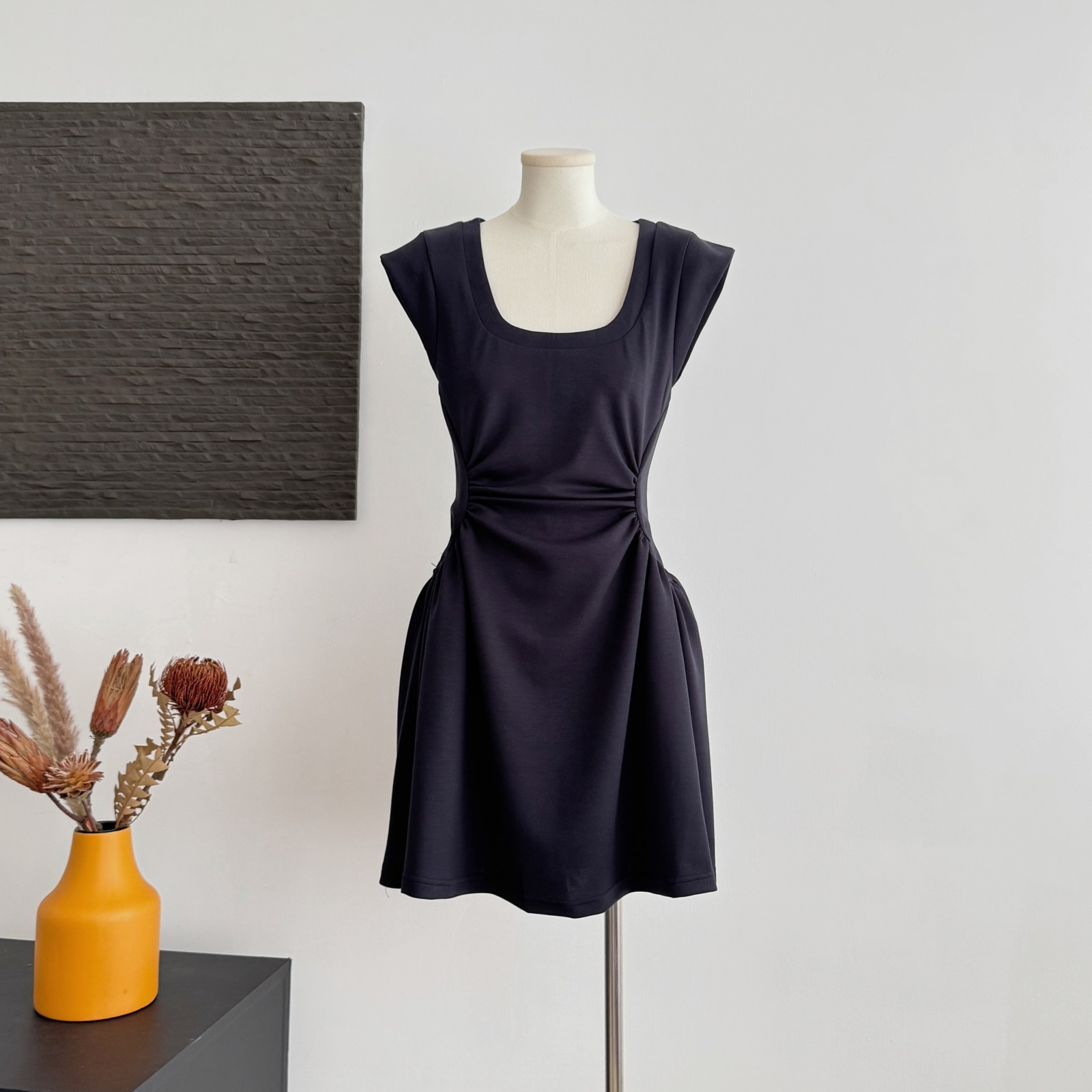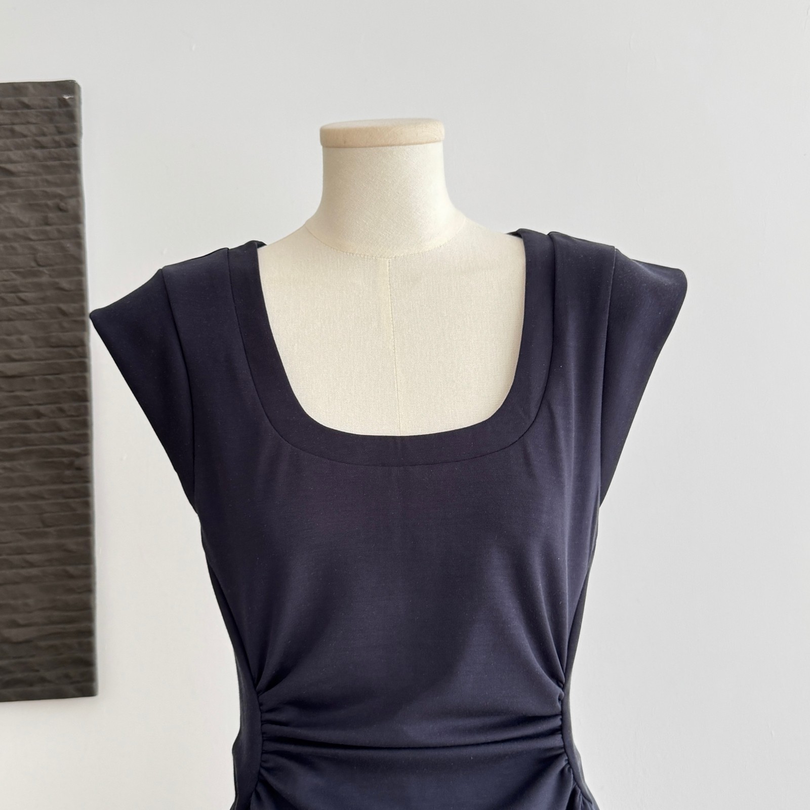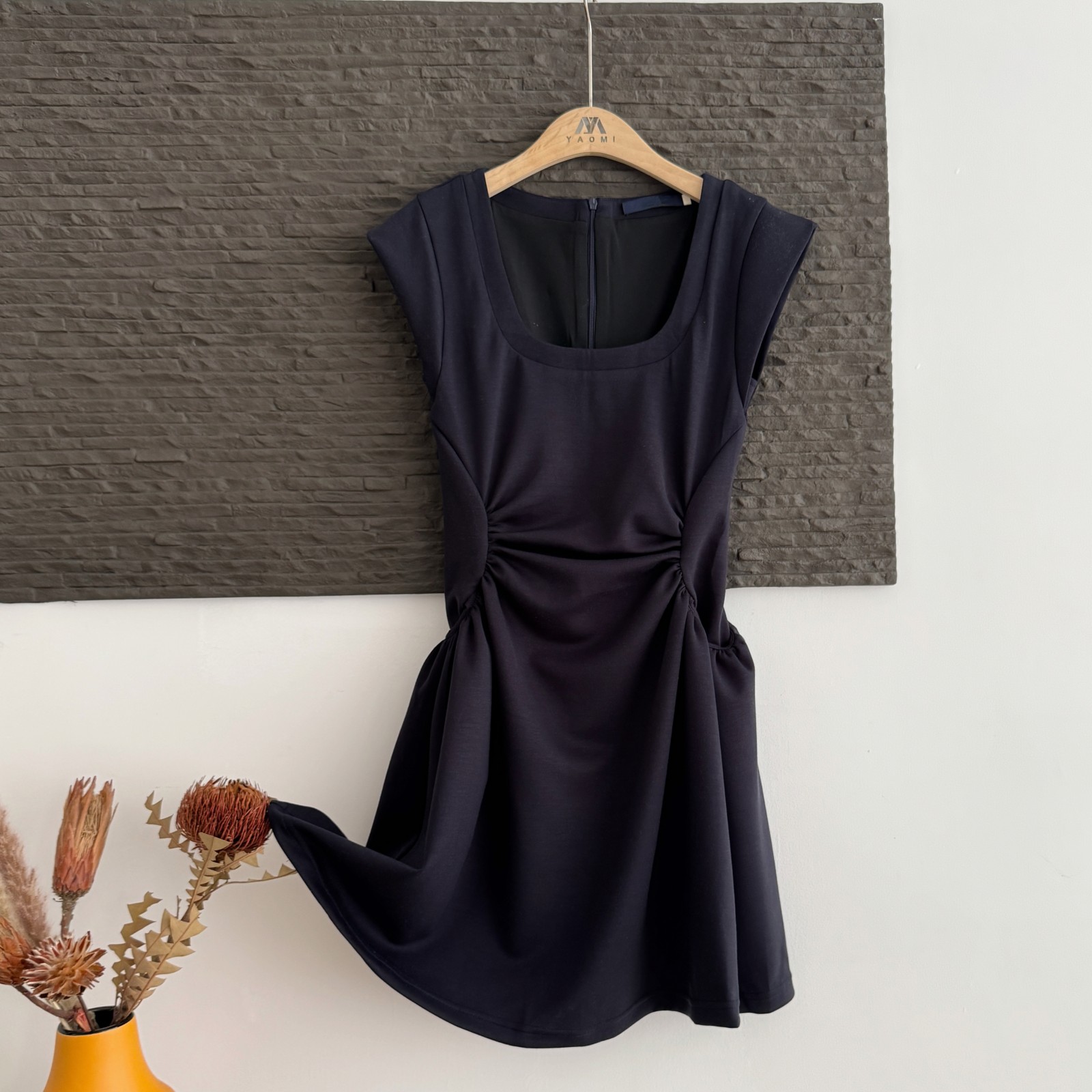yuyureal 오스트리아 블루 좋은 주간 실크 뒤로 비틀림 말뚝 더미 칼라 반하이넥 조끼 백리스 민소매 맨위