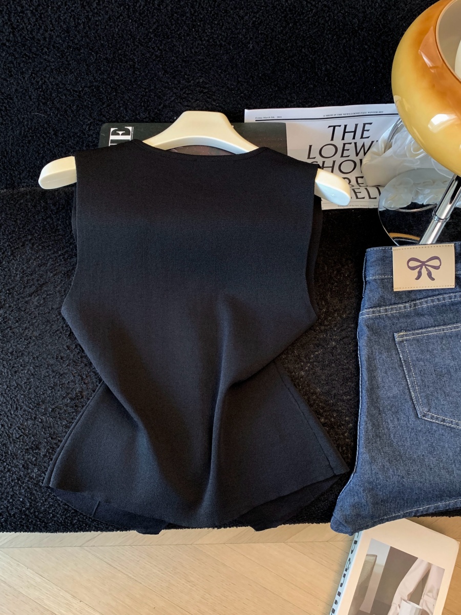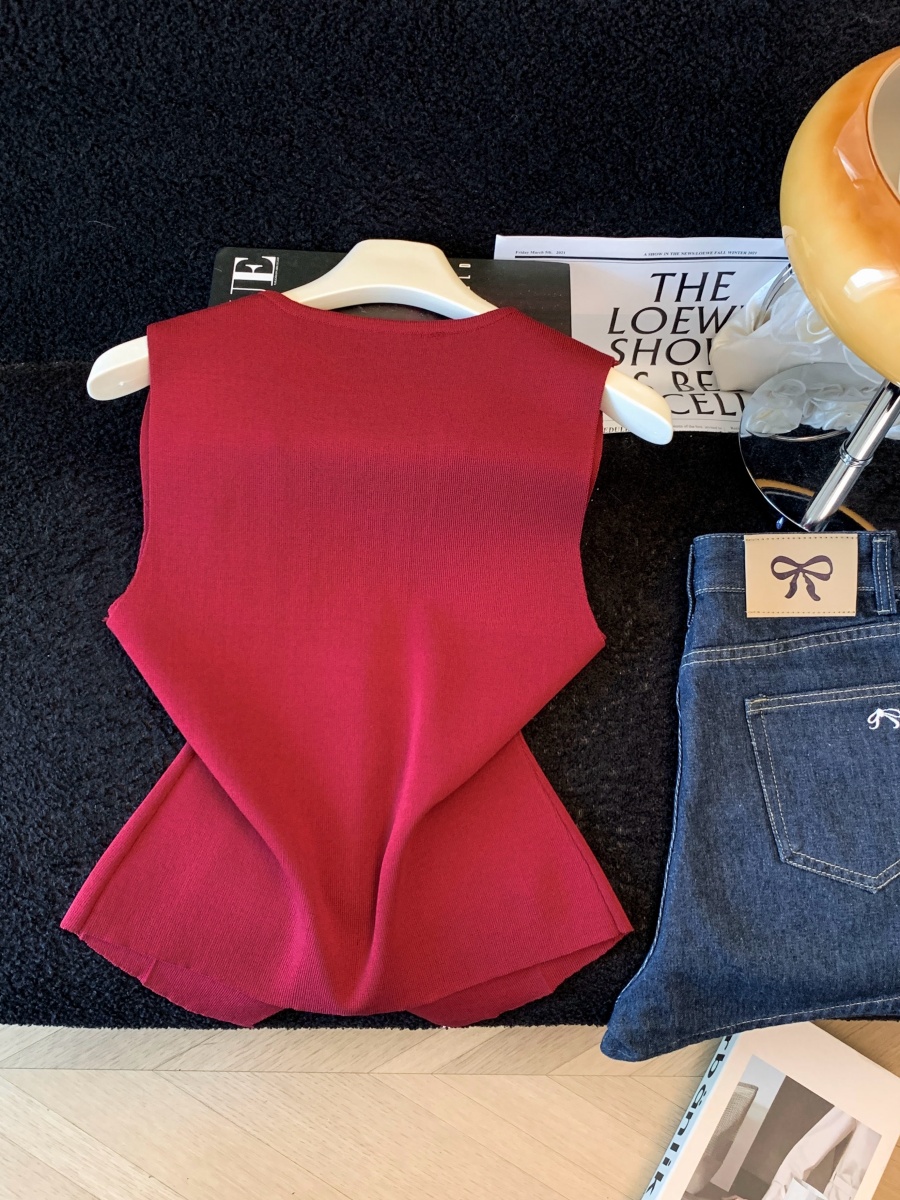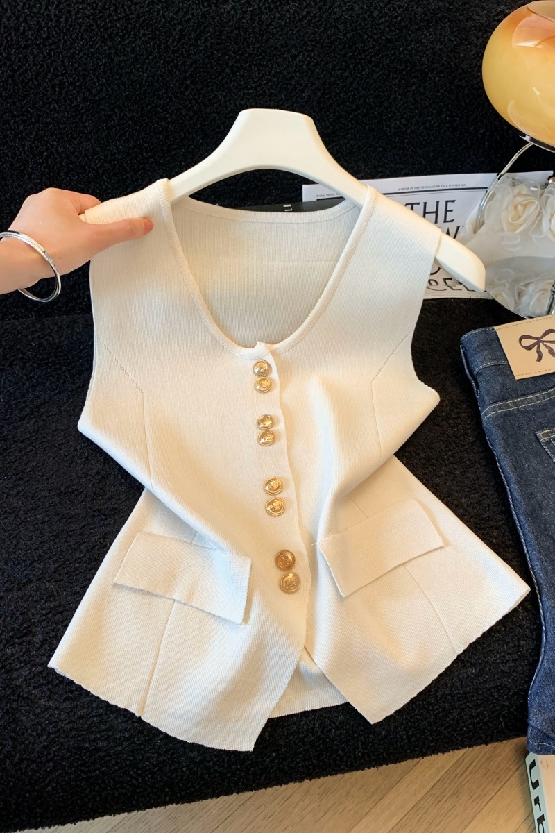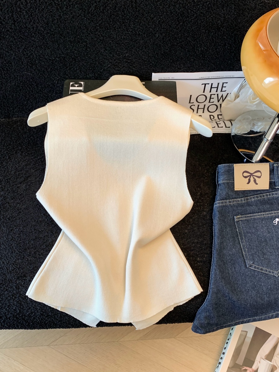 실사 여름 한 부서 순수한 욕망 칼라 니트 캐미솔 몸매 가꾸기 민소매 맨위 분위기 센스 핫걸 조끼