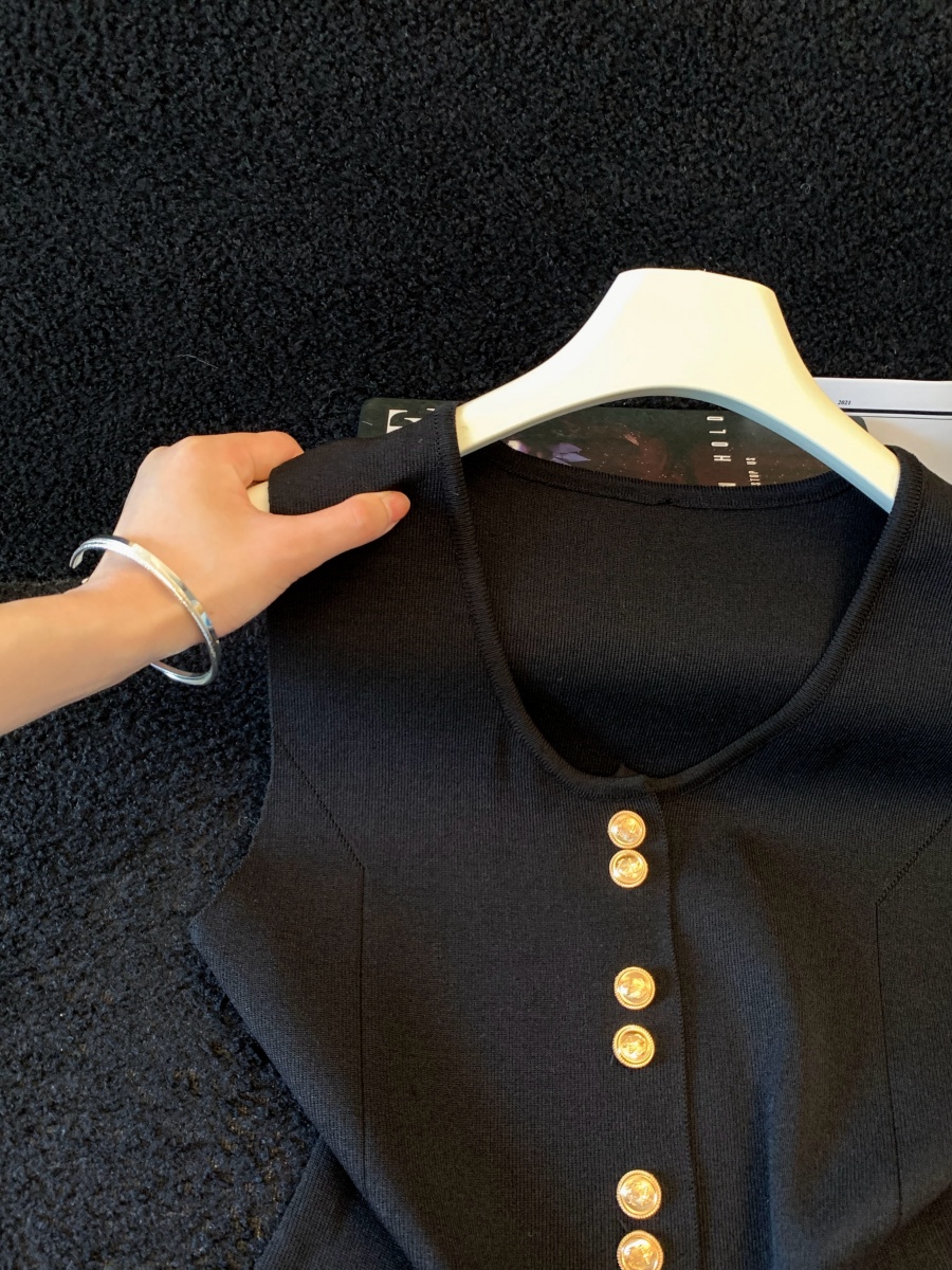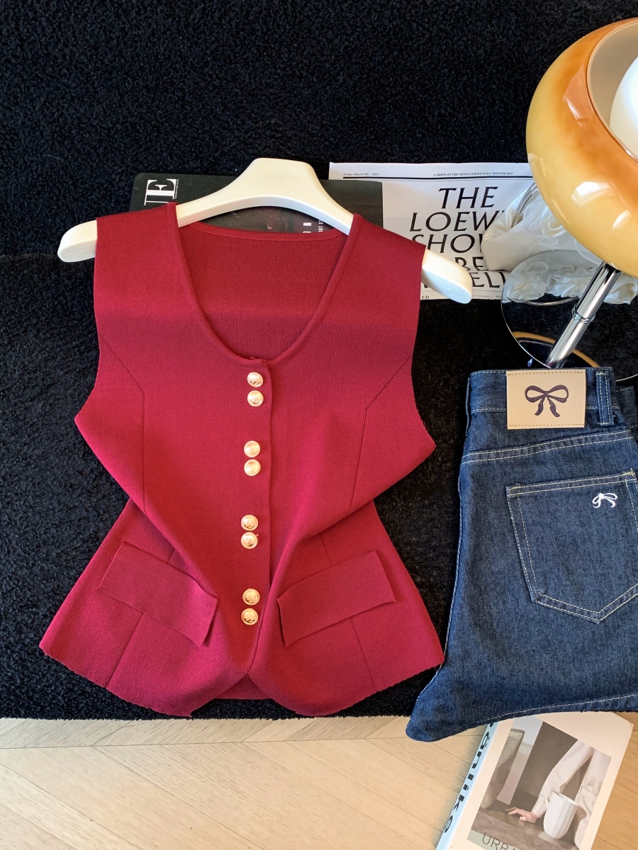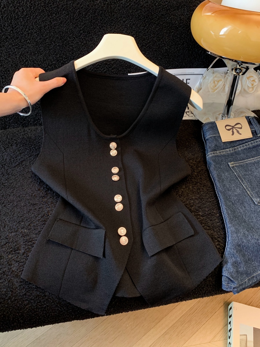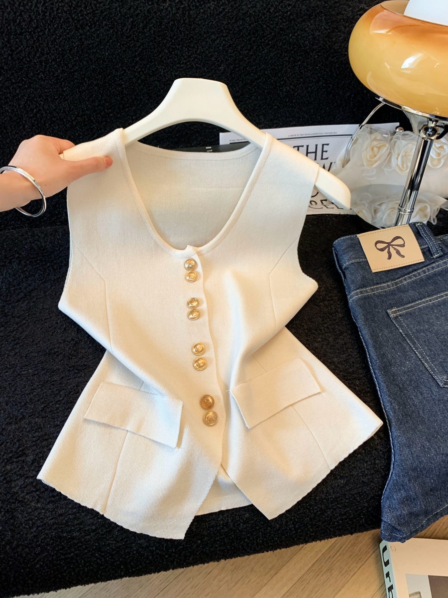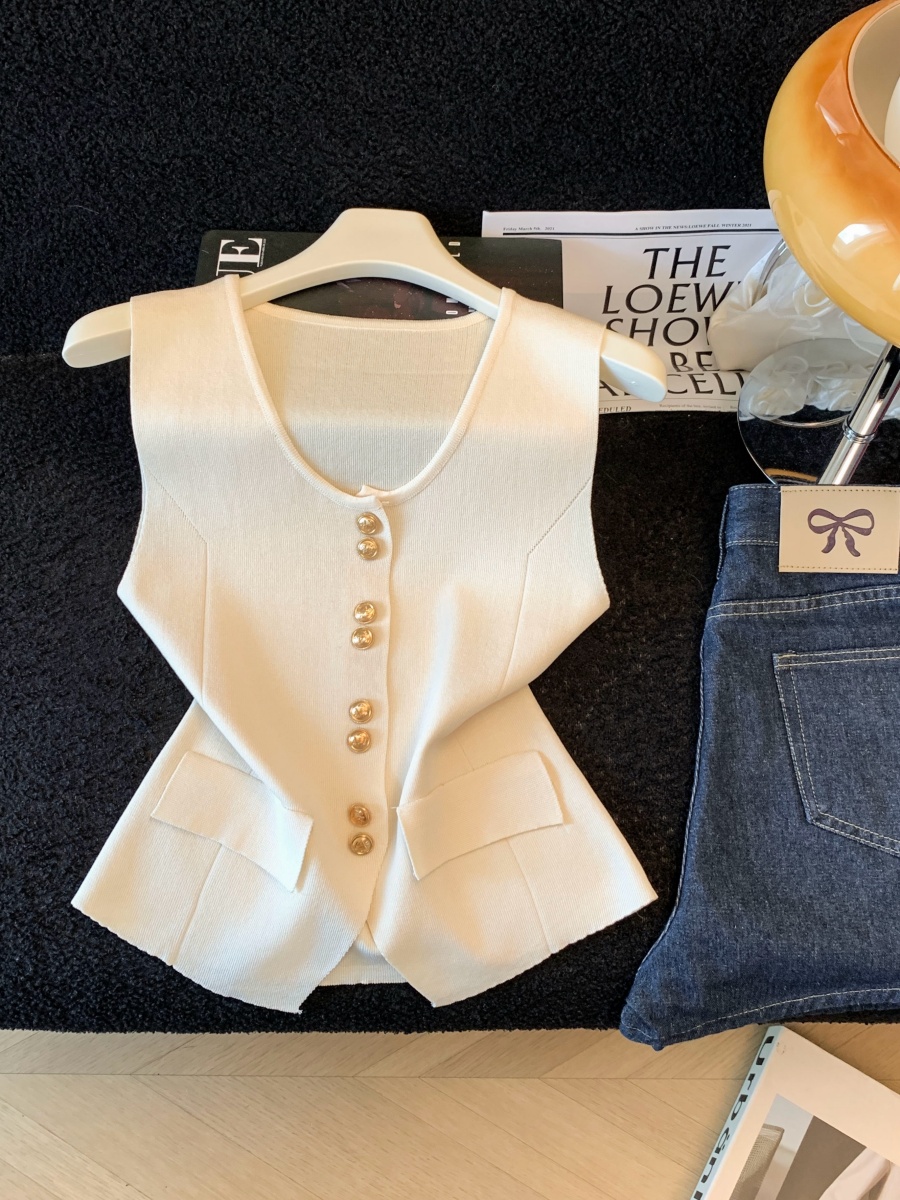 실사 여름 한 부서 순수한 욕망 칼라 니트 캐미솔 몸매 가꾸기 민소매 맨위 분위기 센스 핫걸 조끼