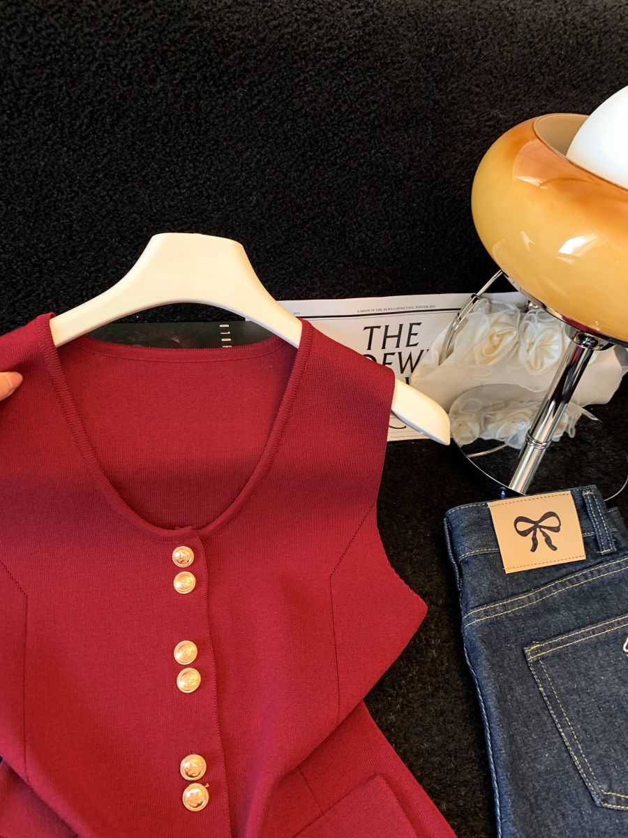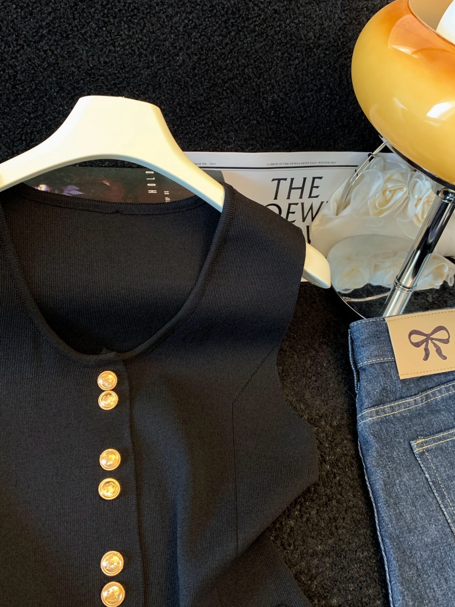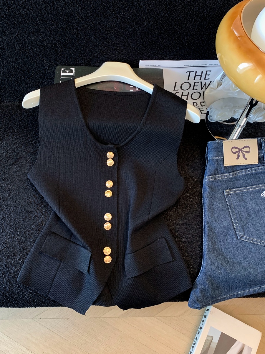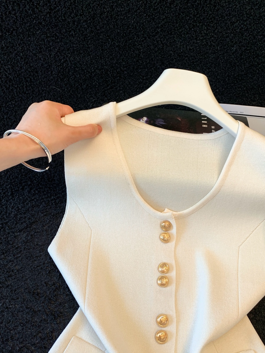 실사 여름 한 부서 순수한 욕망 칼라 니트 캐미솔 몸매 가꾸기 민소매 맨위 분위기 센스 핫걸 조끼