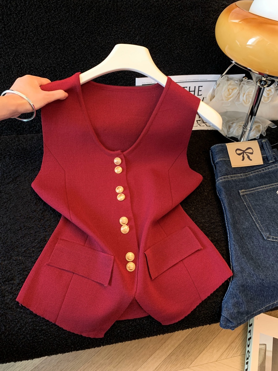 한 부서 순수한 욕망 V넥 니트 캐미솔 여름 몸매 가꾸기 민소매 맨위 분위기 센스 섹시함 핫걸 조끼