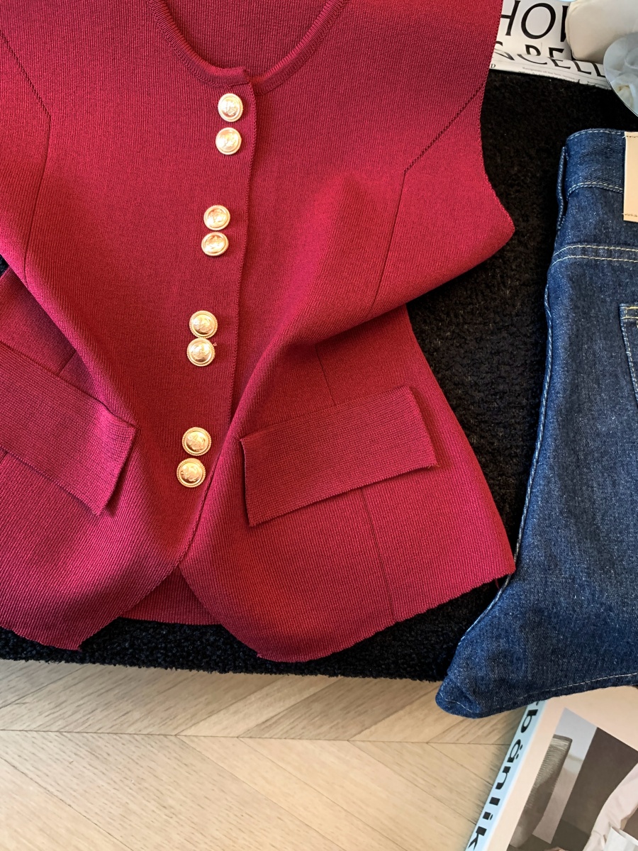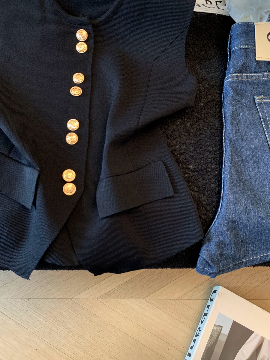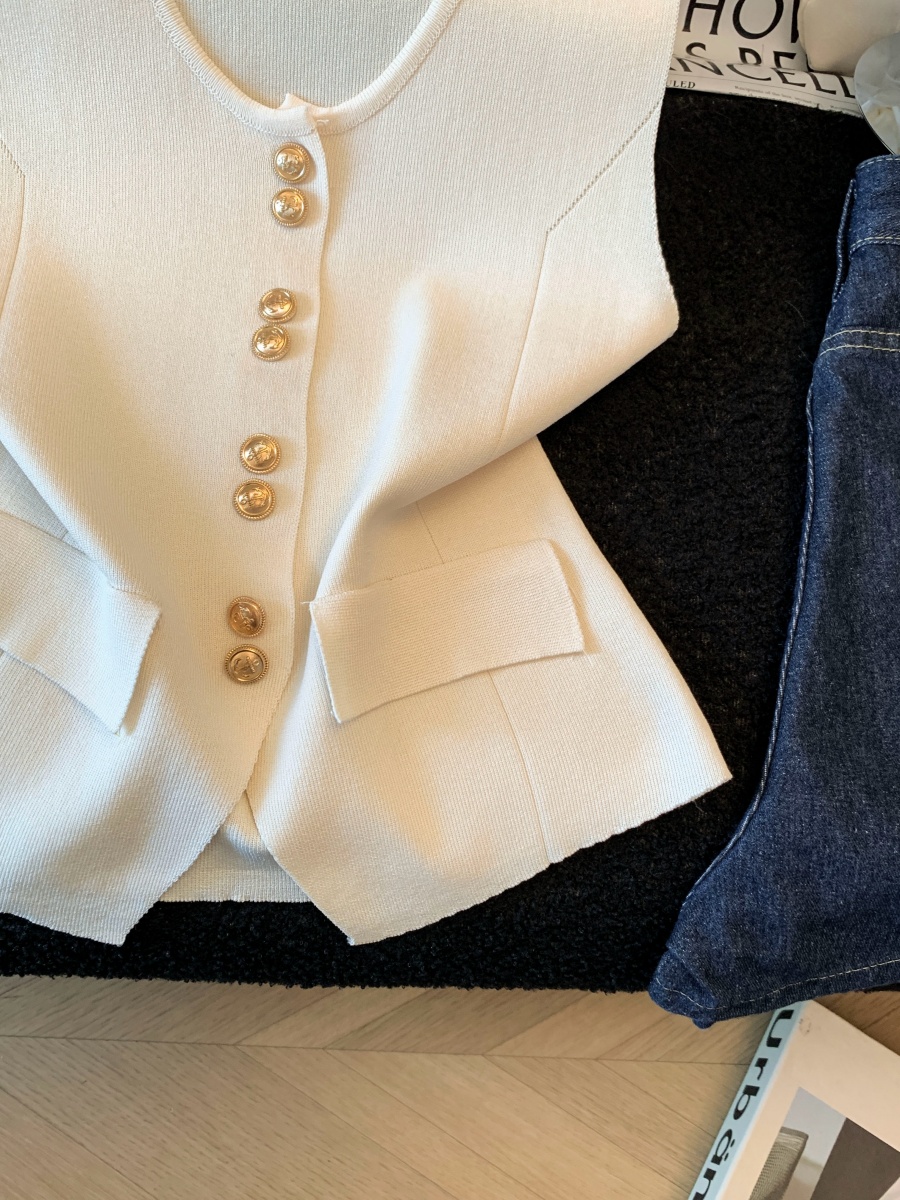 실사 도파민 순수한 욕망 바람 니트 스웨터 디자인 센스 패션 몸매 가꾸기 주름 반팔 달콤한 매운맛 chic 흔들다 칼라 맨위