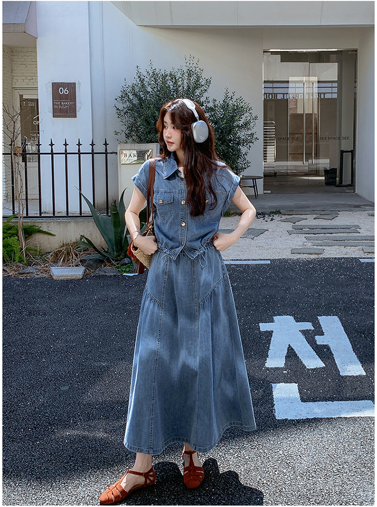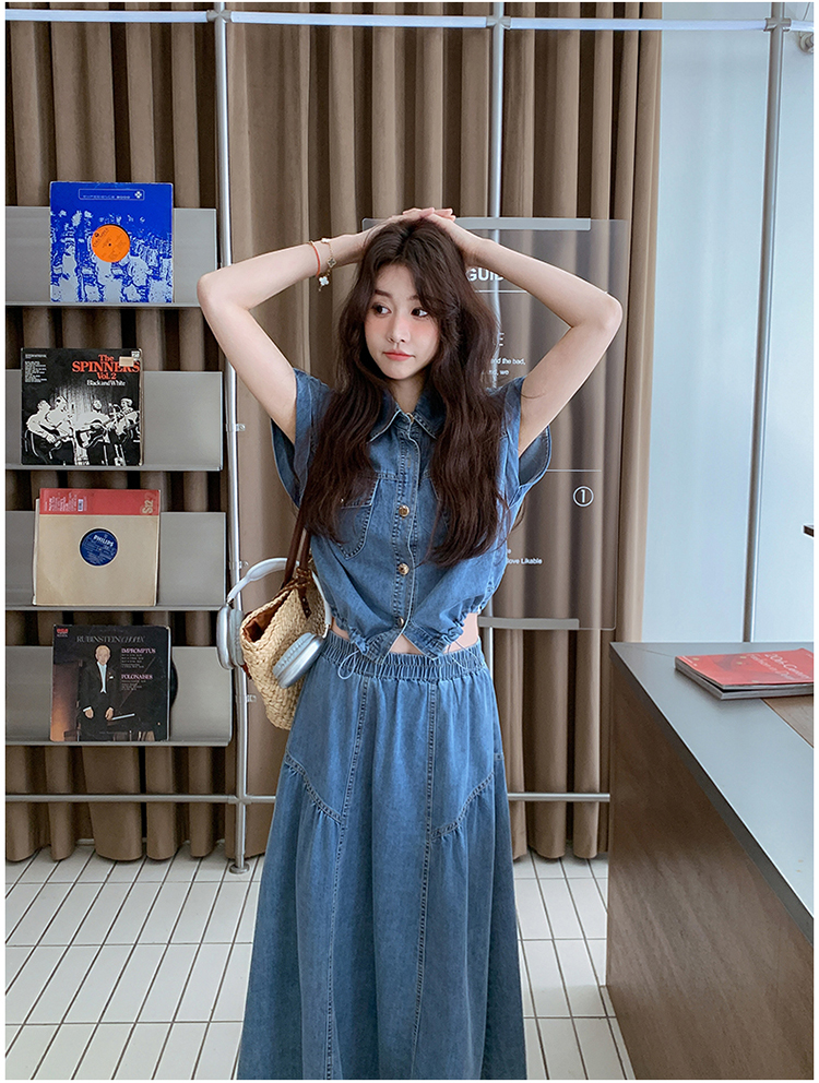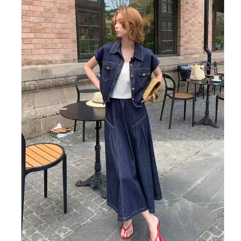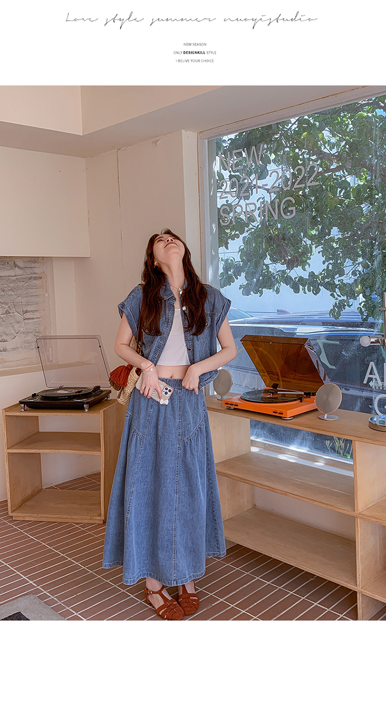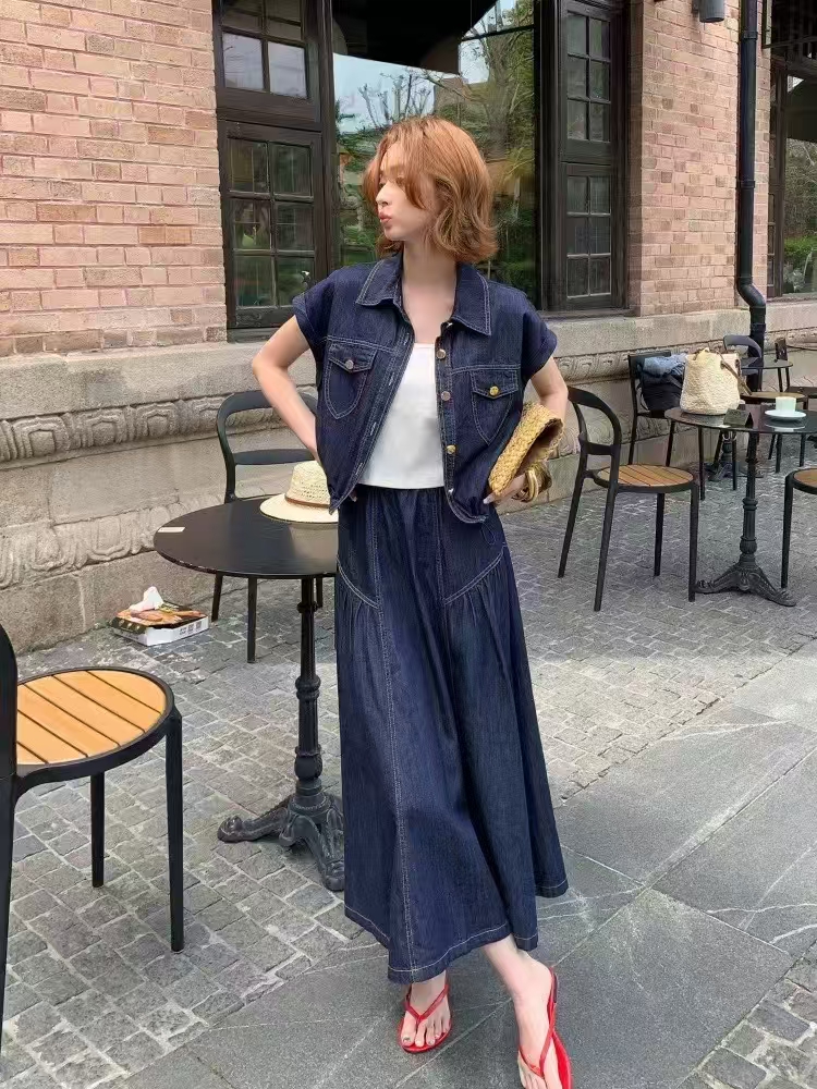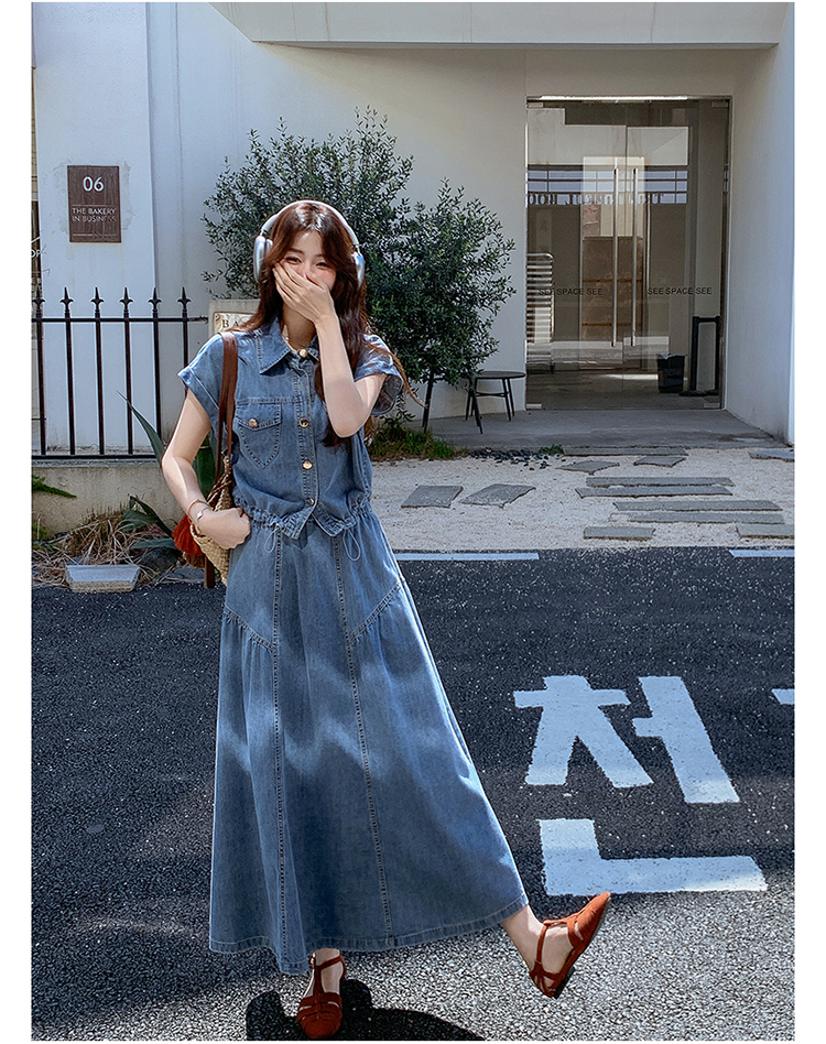 2026 여름 섹션 아메리칸 워크웨어 데님 멜빵 여성 드레스 루즈핏 캐주얼 주름 슬립 드레스 롱 스커트