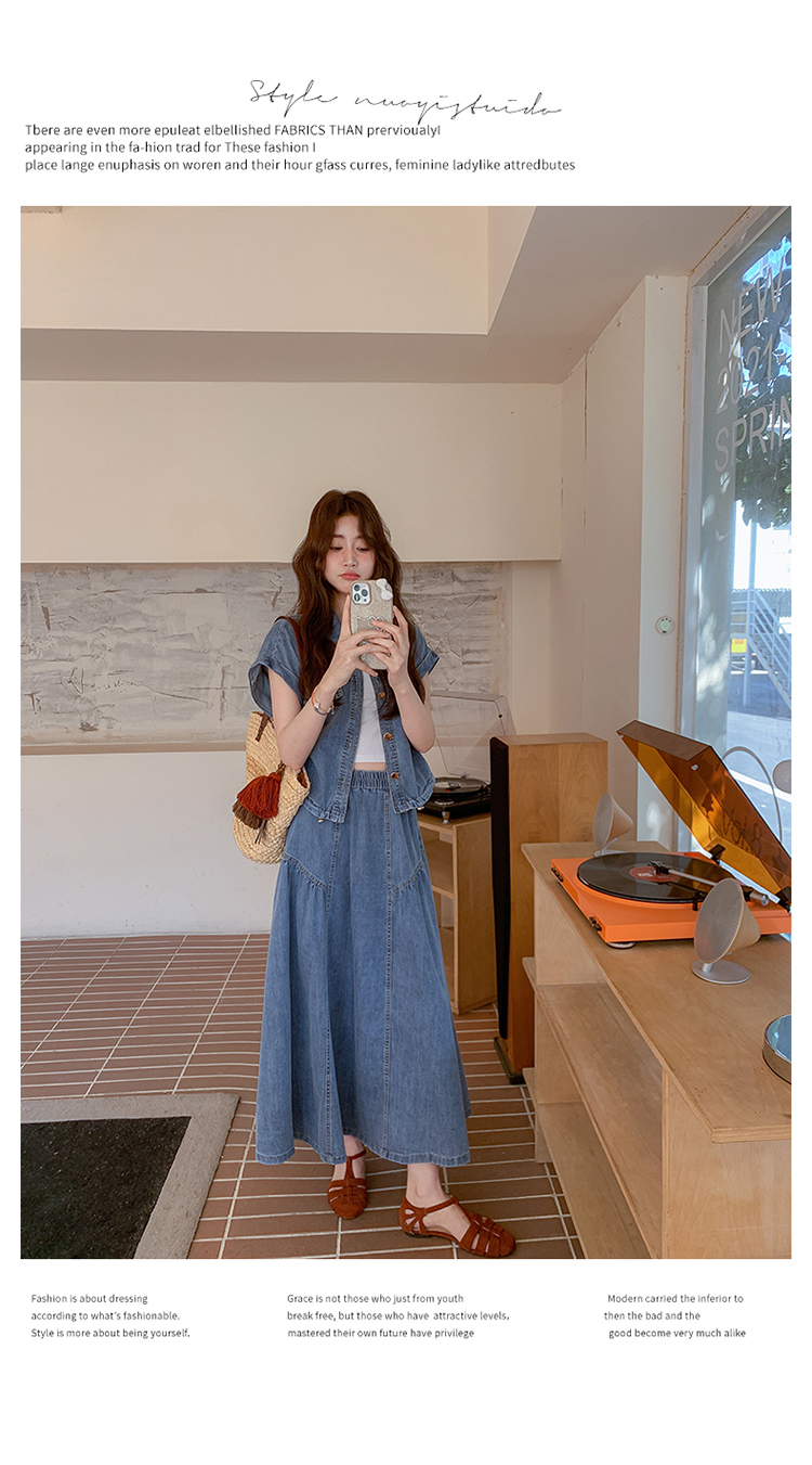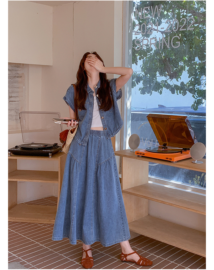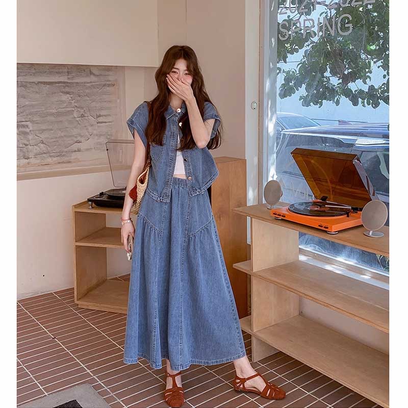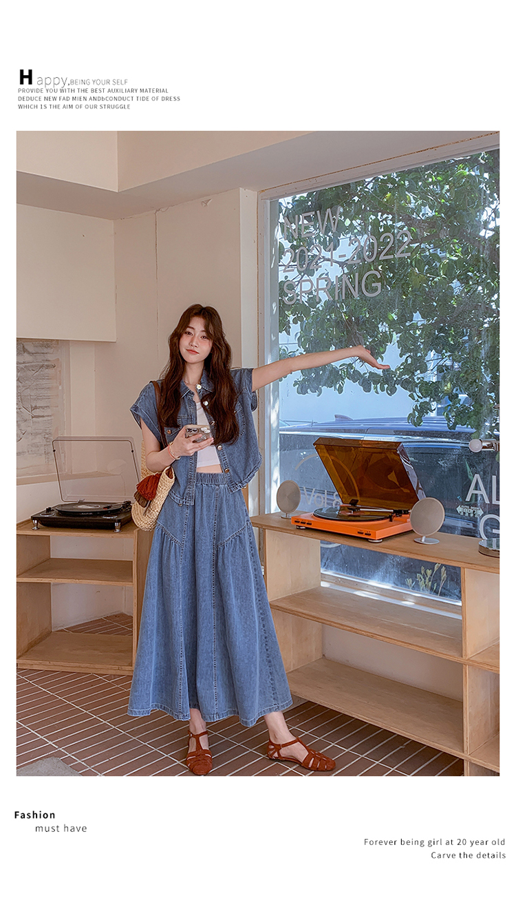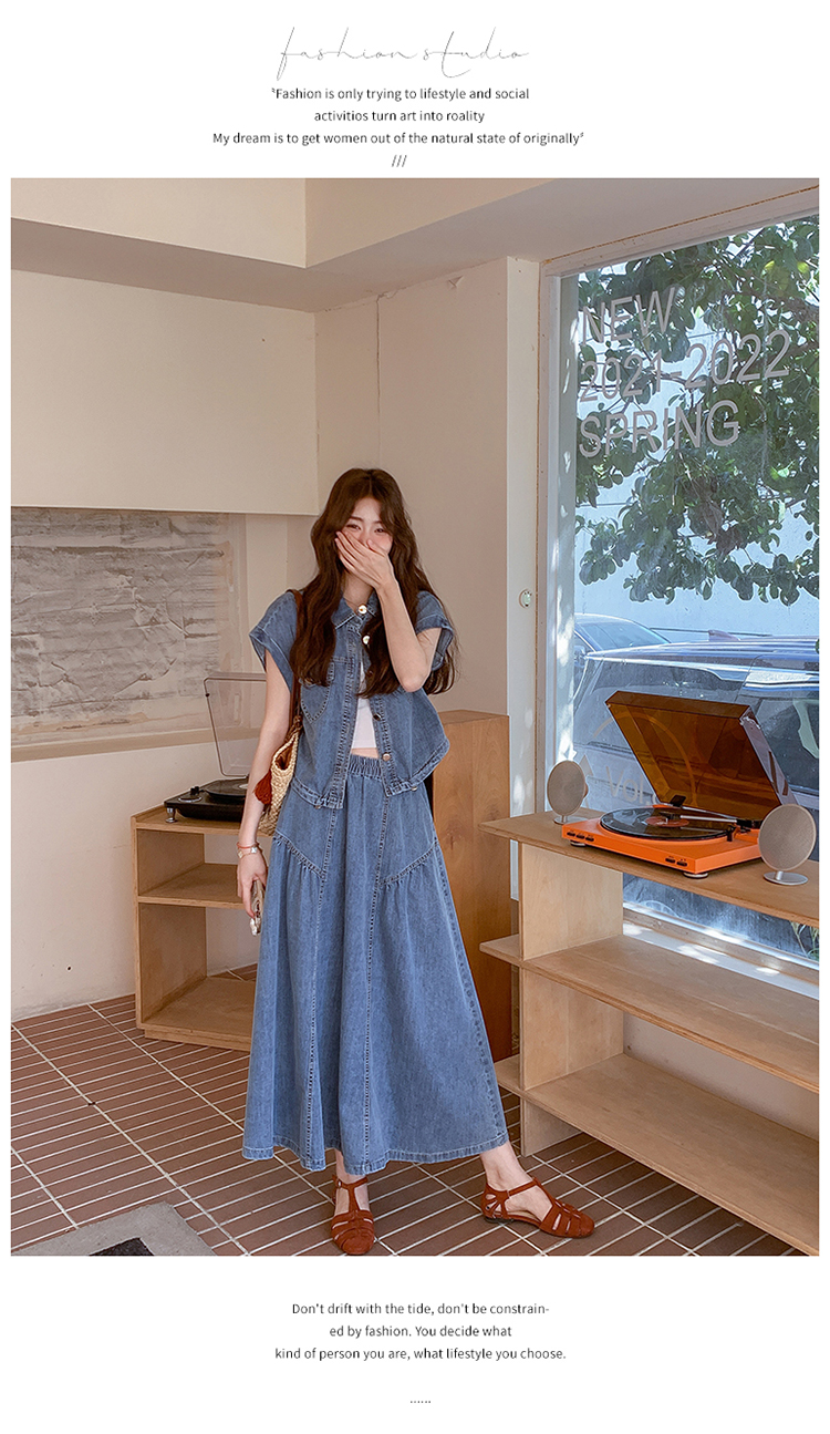 2026 여름 섹션 아메리칸 워크웨어 데님 멜빵 여성 드레스 루즈핏 캐주얼 주름 슬립 드레스 롱 스커트