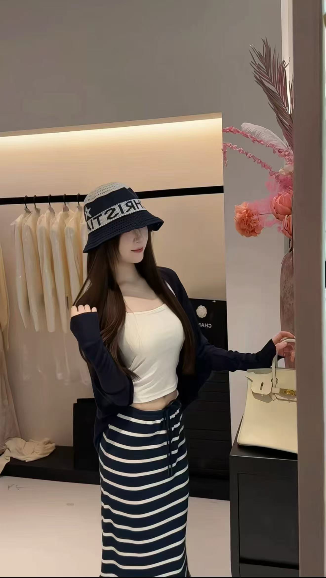 새로운 한국 스타일 패션 젠 몸매 가꾸기 자외선 차단 오픈 가디건 슬립 허리밴드 도트 무늬 반신 스커트 3종 세트