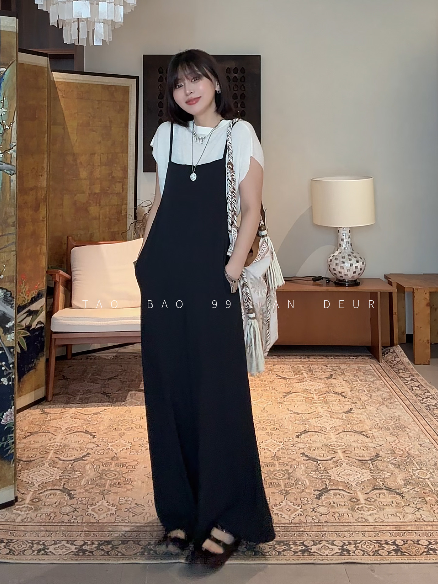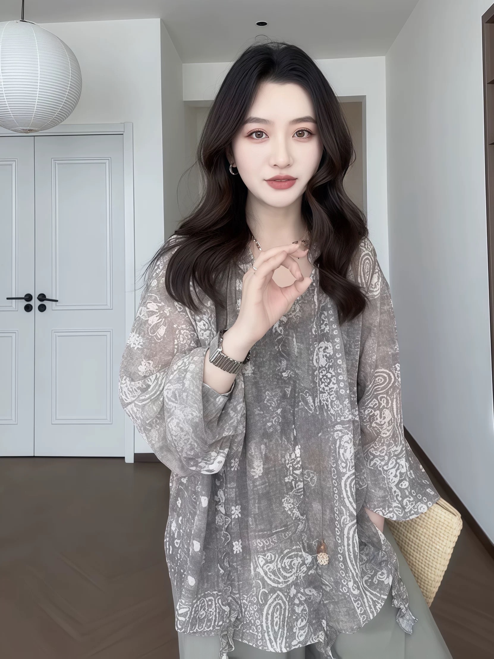 지방 지아 지아 도트 무늬 바지 쉬폰 캐주얼 바지 여름 얇은 스타일 루즈핏 표지 고기 긴 바지
