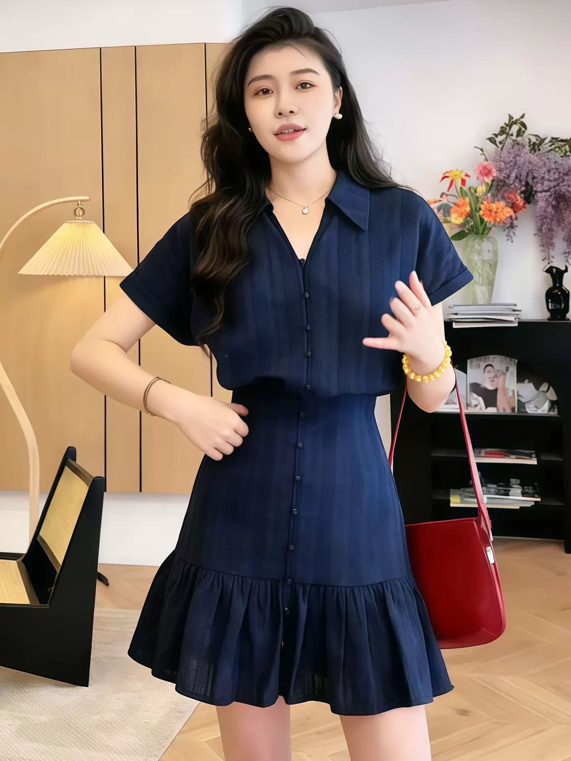 지방 지아 지아 고백 시 여름 패션 슬림해 보이는 다용도 배색 POLO 셔츠 드레스