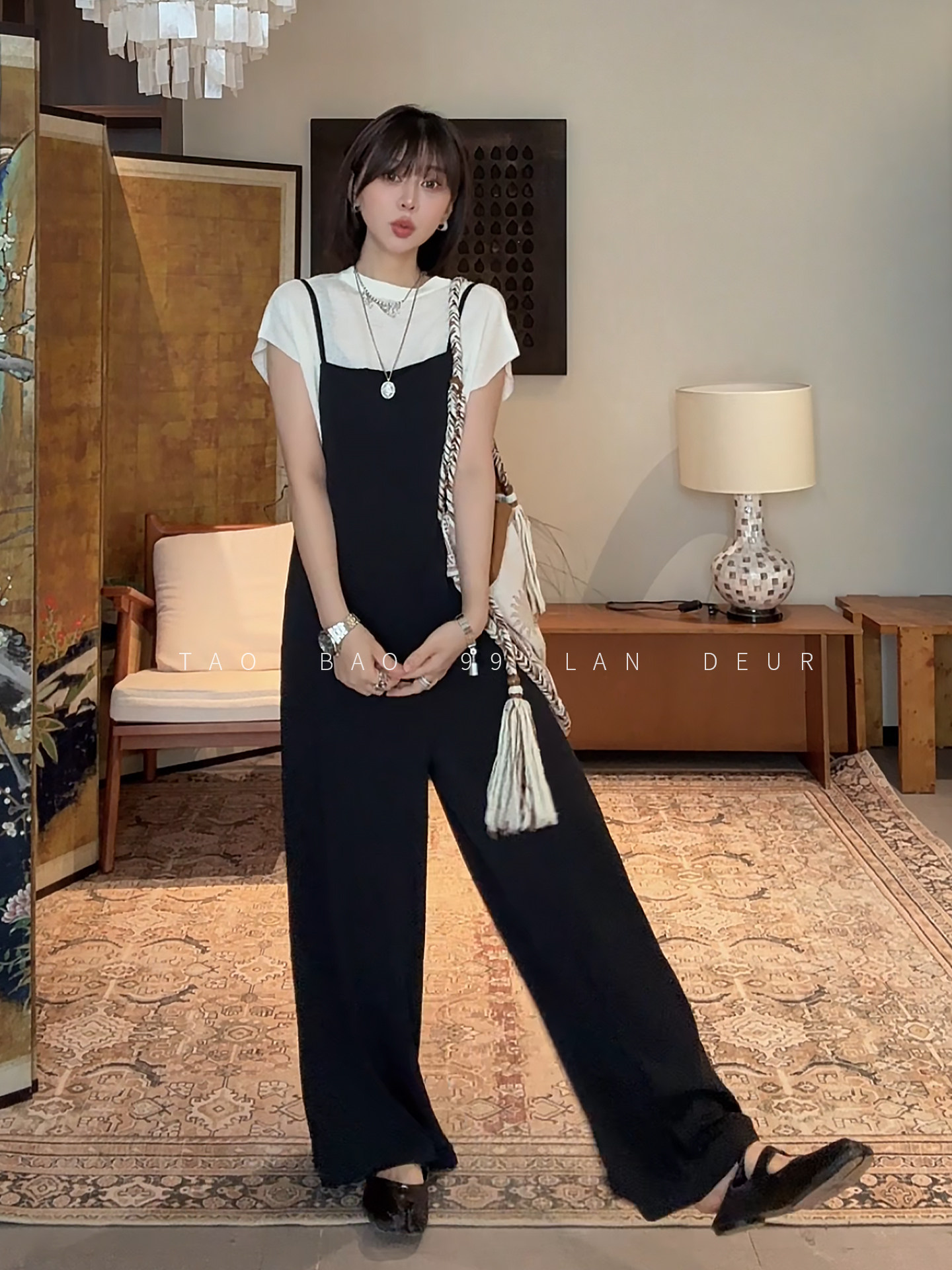 지방 지아 지아 지방 mm 빅 사이즈 여성 의류 전체 점수 세트 여름 페이크 레이어드 반팔 맨위 캐주얼 바지 투피스 세트