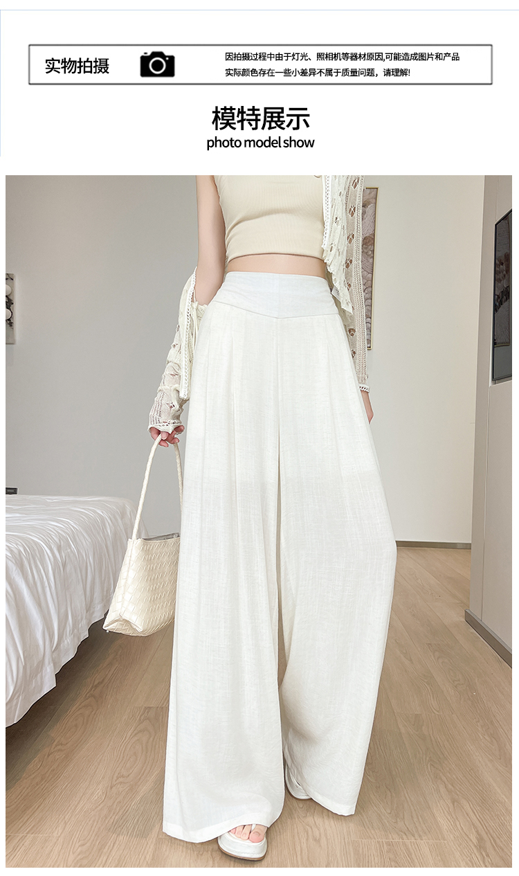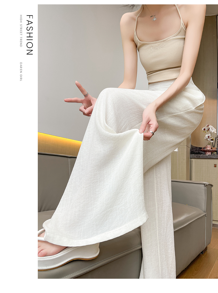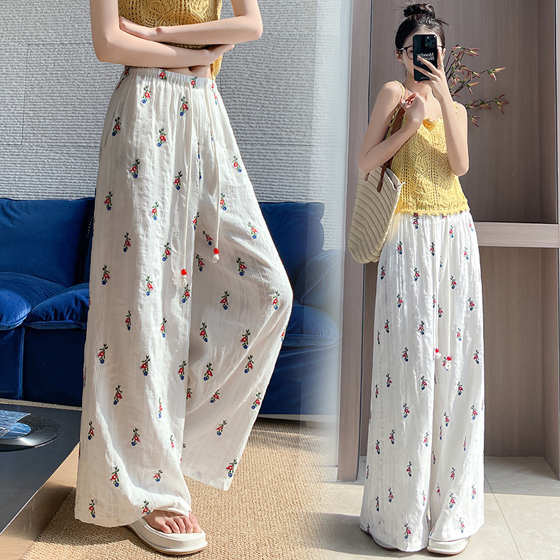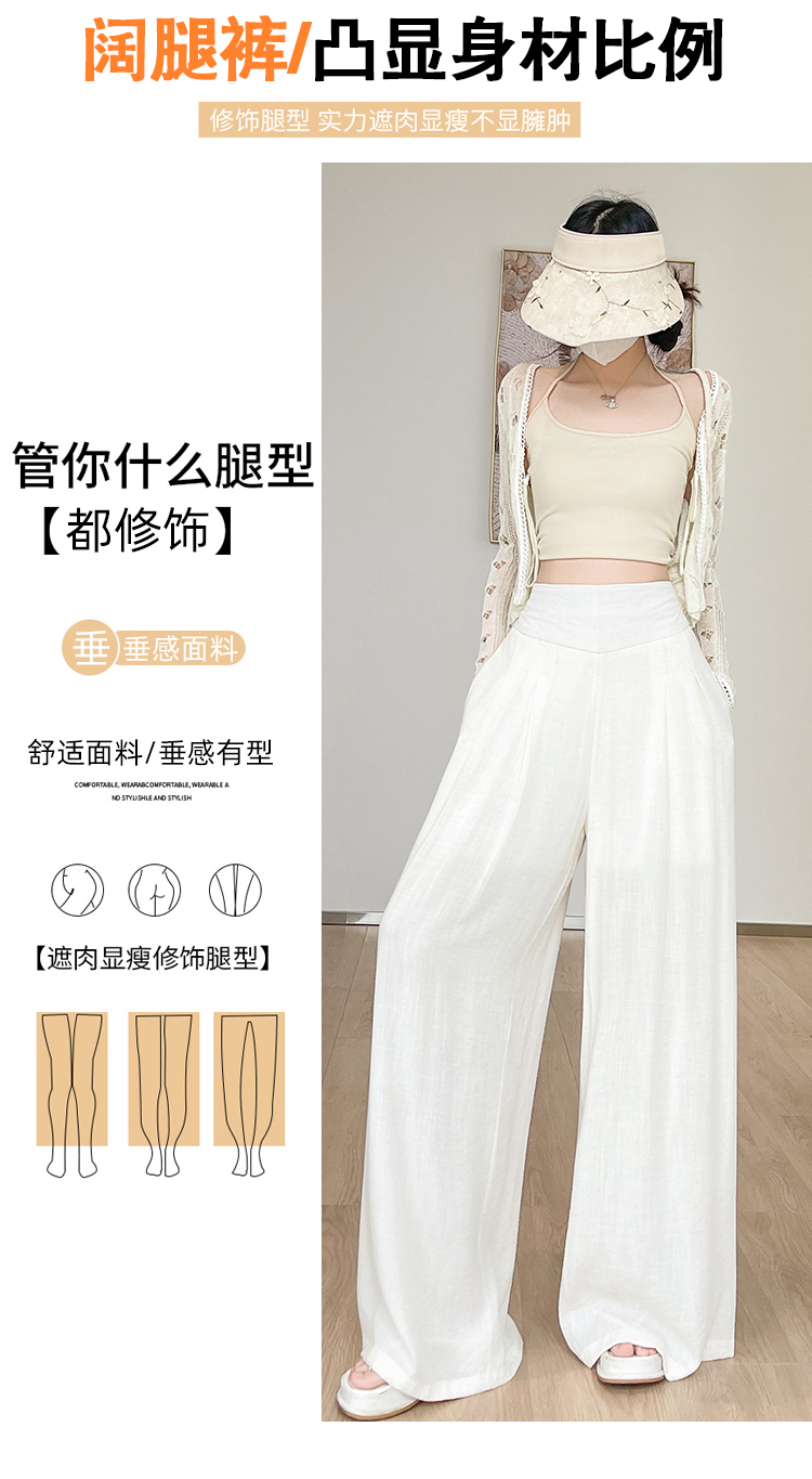 한국 스타일 얼음 실크 자수 아시아 인 면 린넨 와이드 레깅스 바지 2026 여름 얇은 스타일 하이웨이스트 슬림해 보이는 벽오동 스트레이트 긴 바지