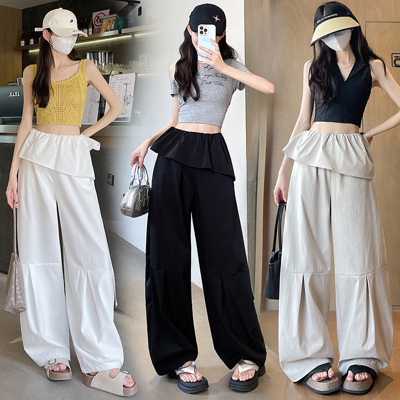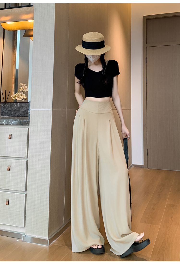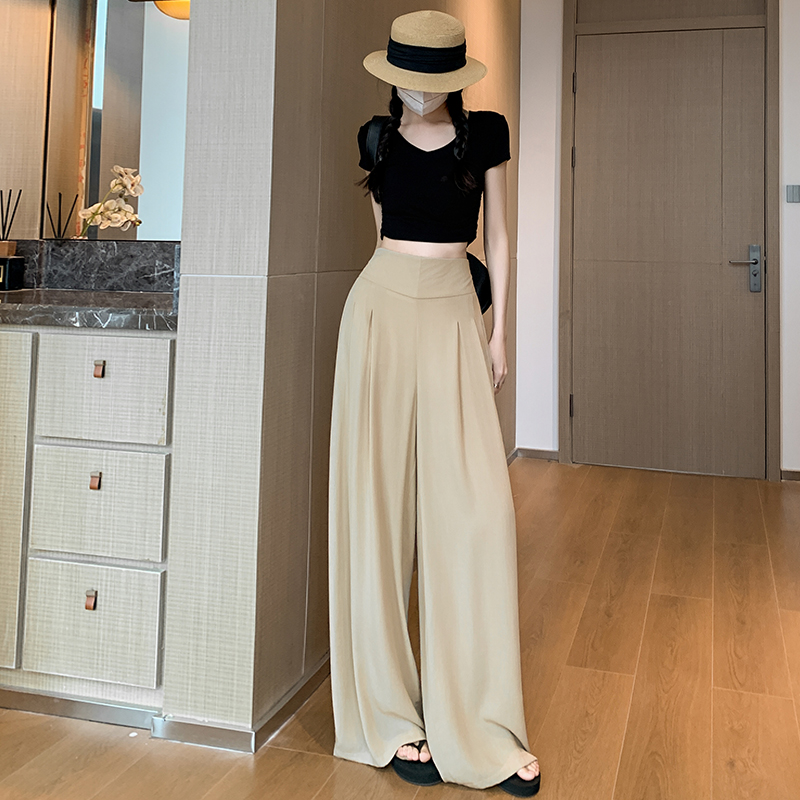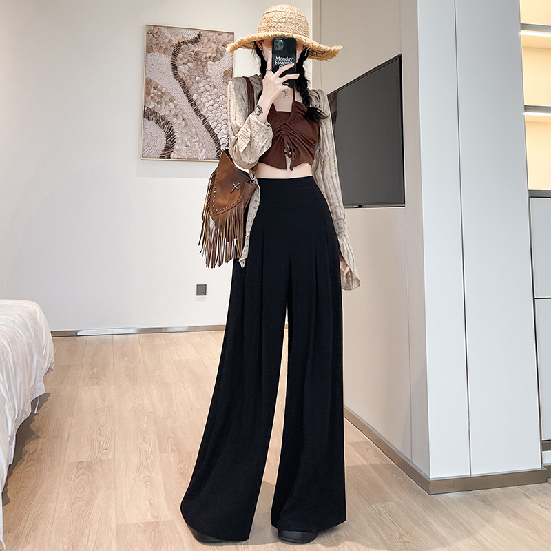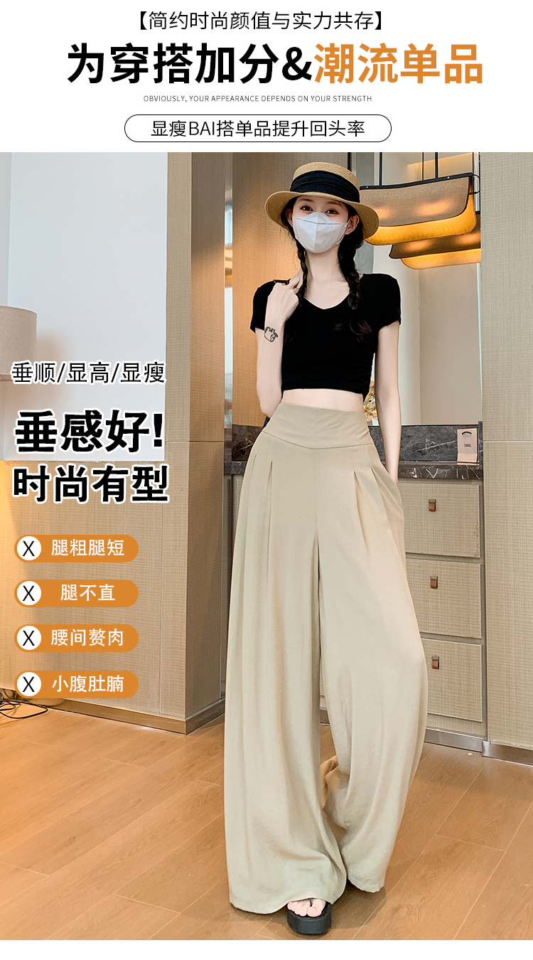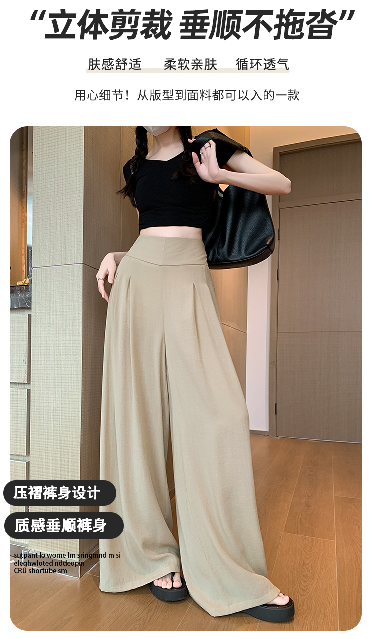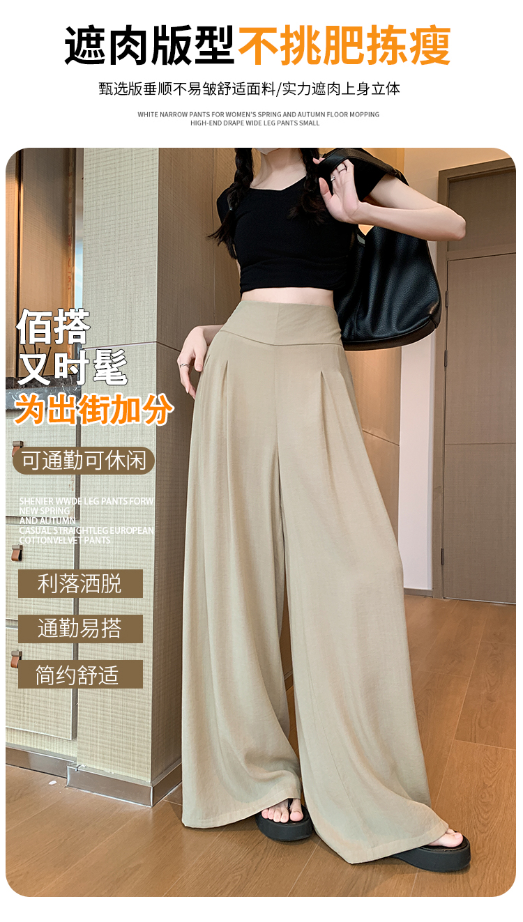 고급 센스 정장 바지 여성 여름 2026 얇은 스타일 하이웨이스트 슬림해 보이는 루즈핏 캐주얼 스트레이트 도루 센스 바닥 청소 와이드 레그 팬츠