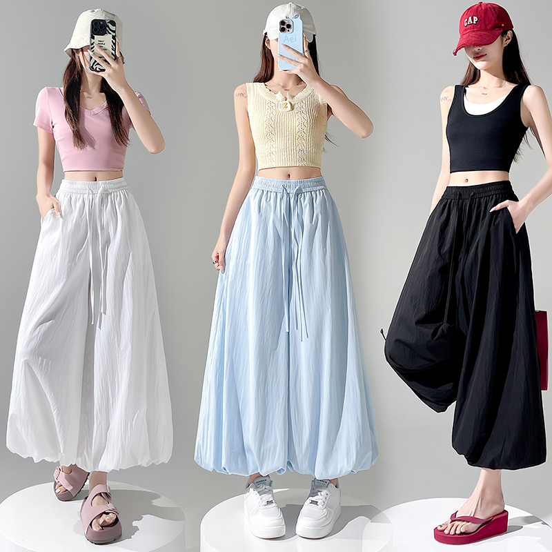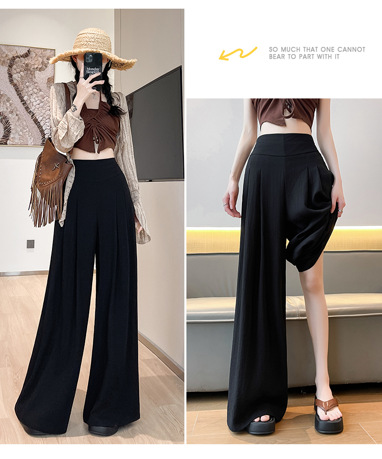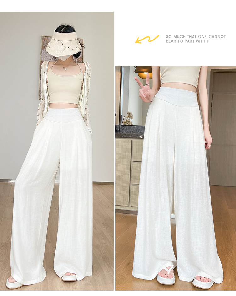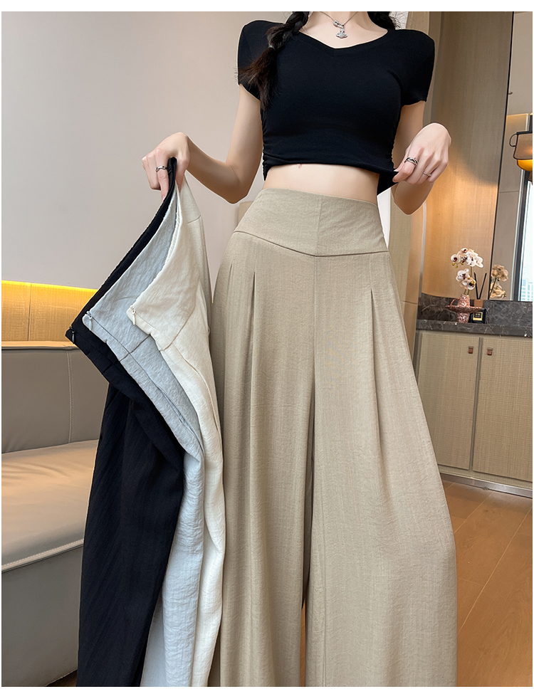 얼음 실크 면 린넨 와이드 레그 팬츠 치마 여성 2026 여름 얇은 스타일 야마모토 바지 허리밴드 하이웨이스트 도루 센스 바닥 청소 자외선 차단 바지