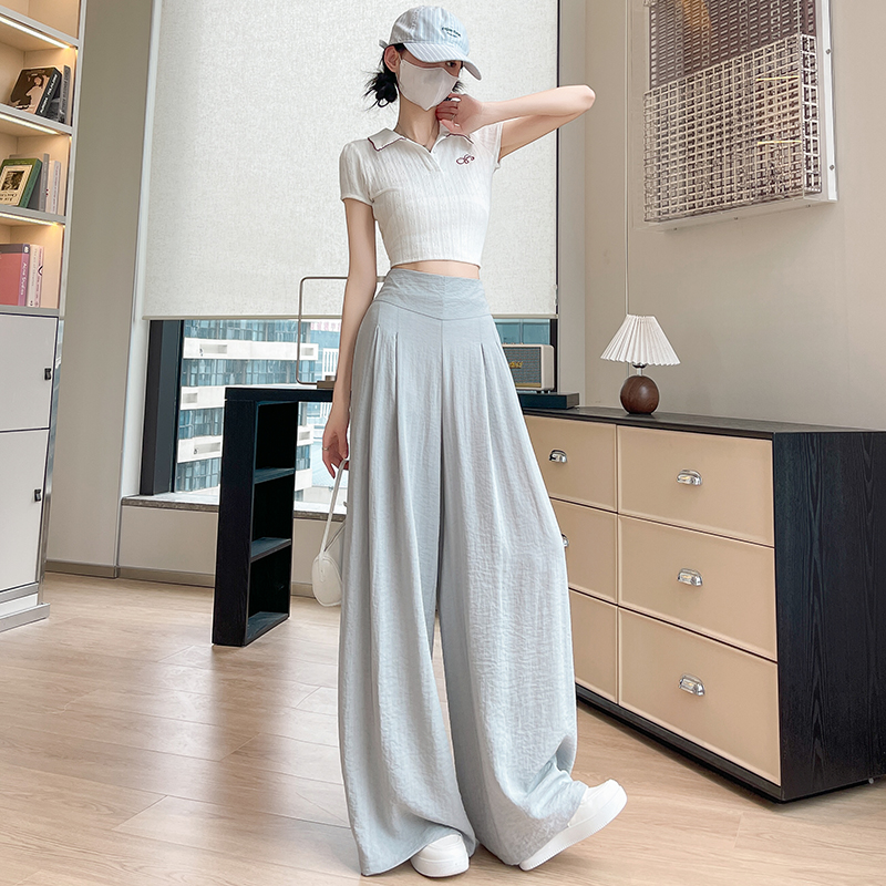 아세트산 새틴 플래시 훈련 와이드 레깅스 바지 여름 2026 새로운 하이웨이스트 도루 센스 얼음 실크 얇은 스타일 스트레이트 캐주얼 바지