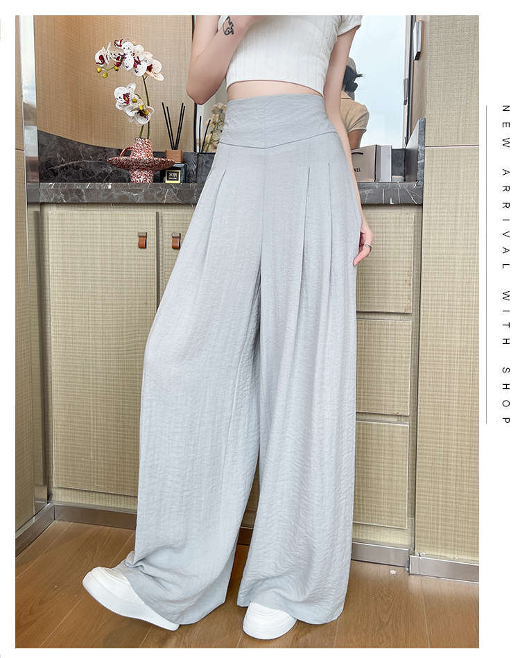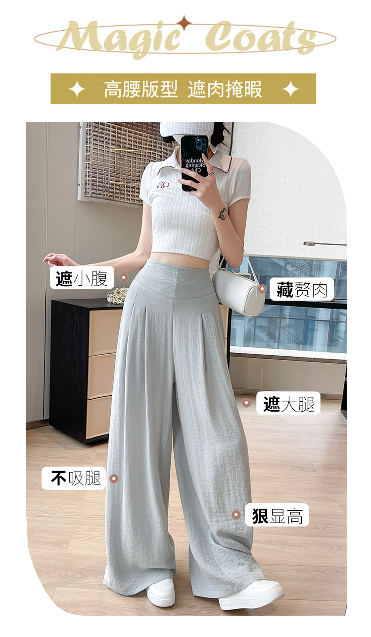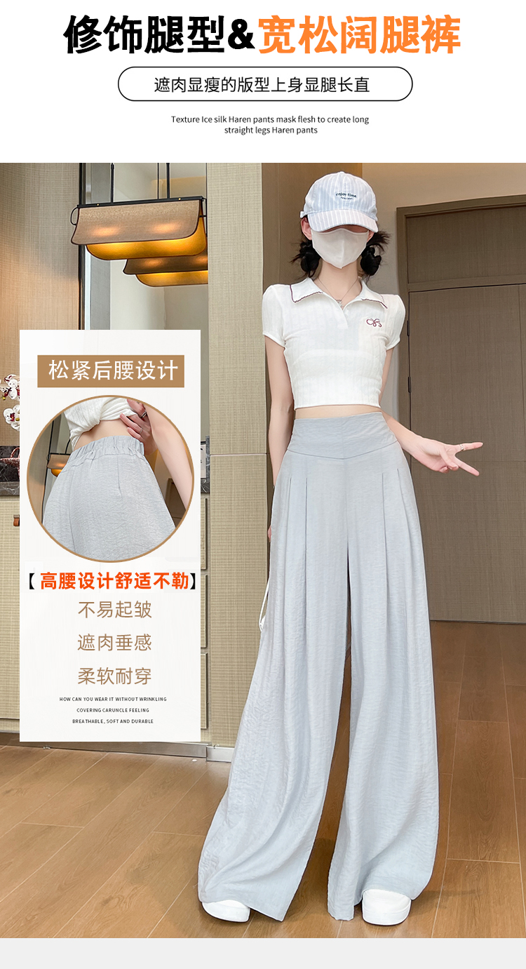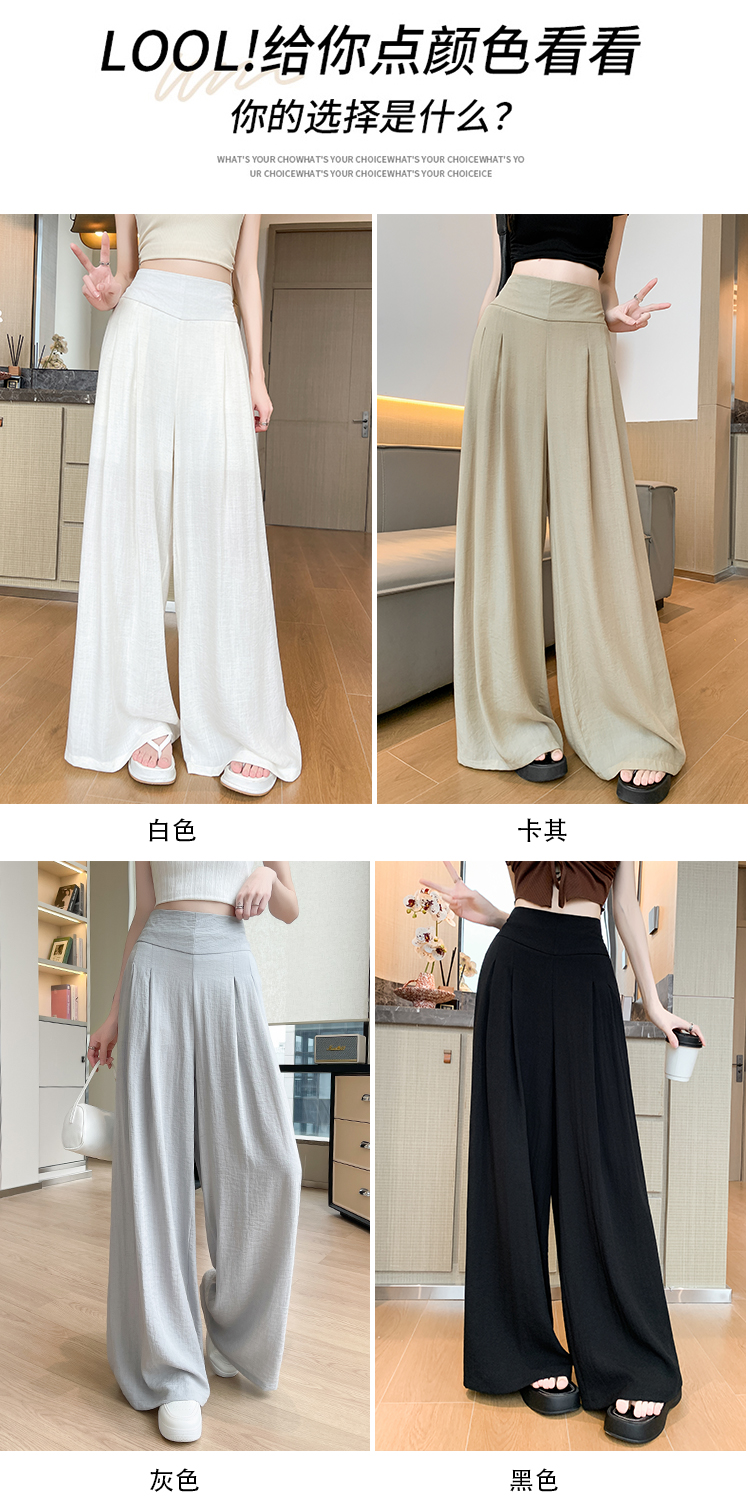 얼음 실크 아세트산 새틴 정장 바지 여성 2026 여름 새로운 하이웨이스트 슬림해 보이는 도루 센스 오래된 돈 바람 캐주얼 와이드 레그 팬츠