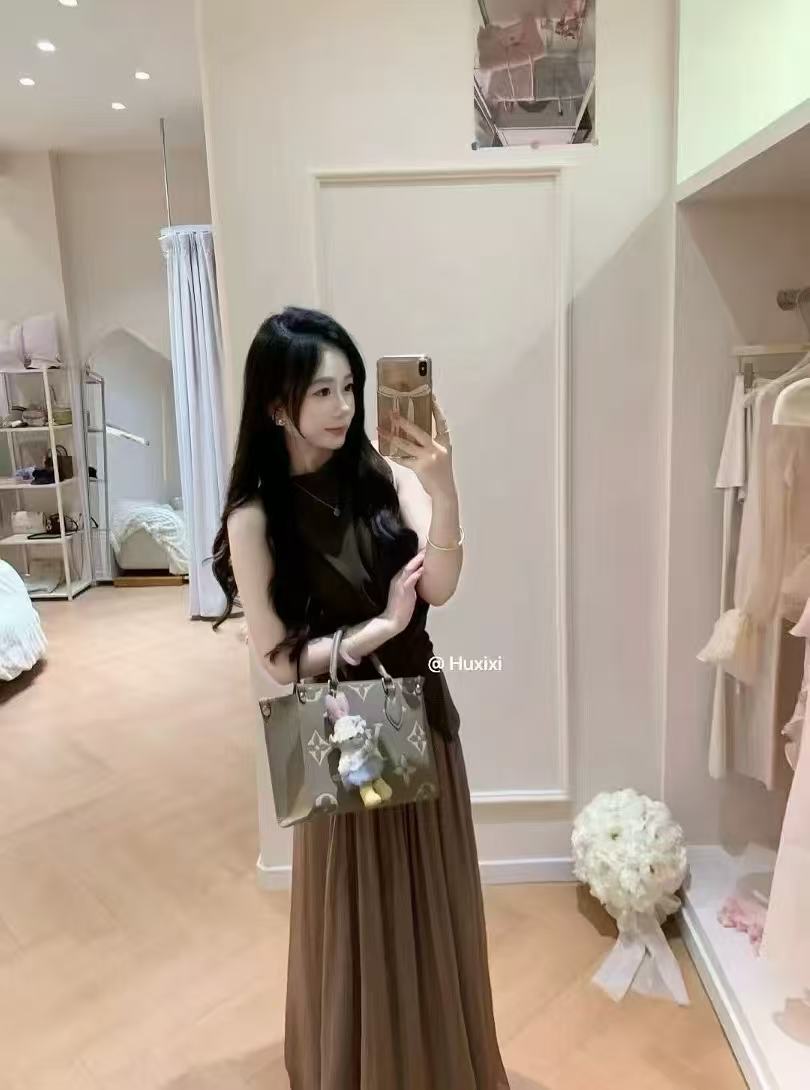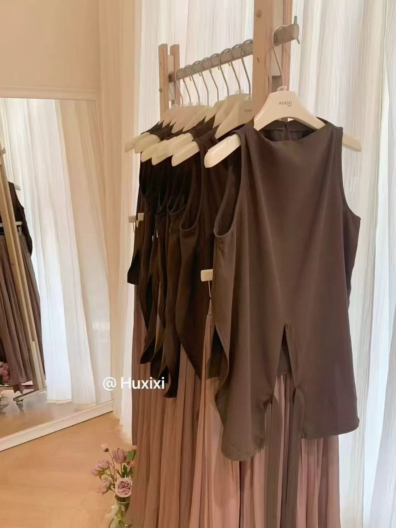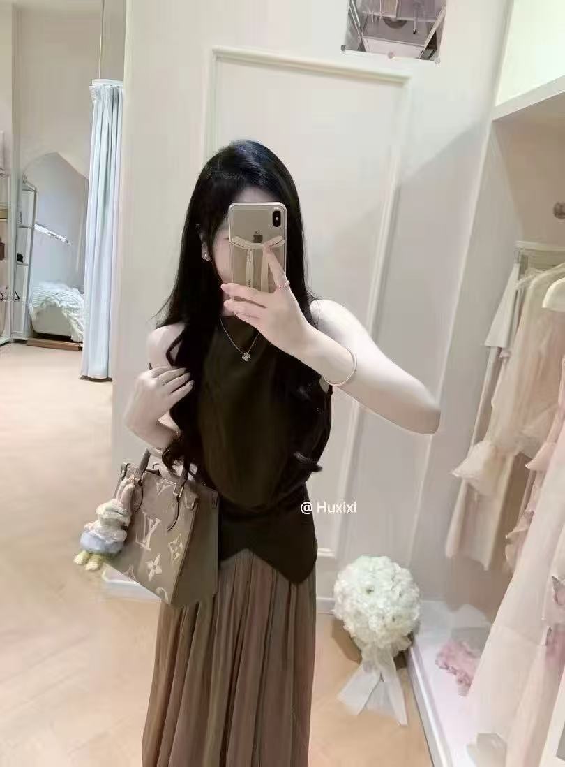 새로운 순수한 욕망 바람 섹시함 캐미솔 외부 피 배색 스트라이프 반신 스커트 핫걸 3종 세트