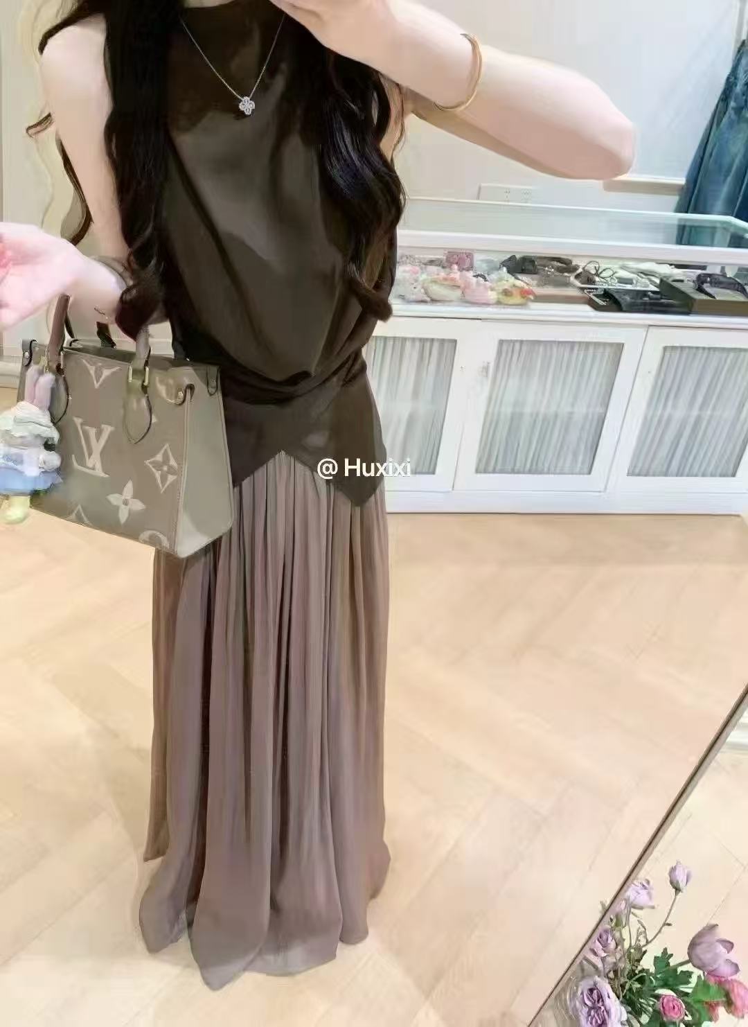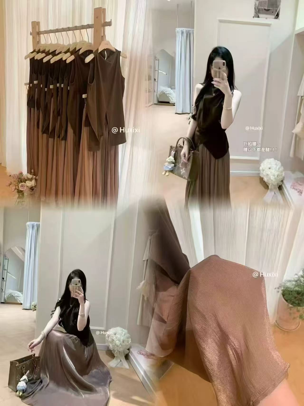 새로운 한국 스타일 패션 다용도 품격 자외선 차단 의류 달콤함 꽃무늬 불규칙 슬립 점프 슈트 치마 세트