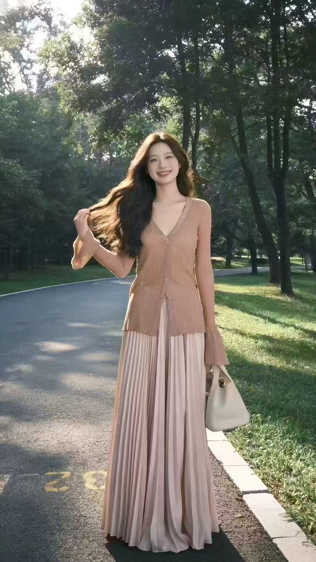 새로운 한국 스타일 패션 젠 몸매 가꾸기 자외선 차단 오픈 가디건 슬립 허리밴드 도트 무늬 반신 스커트 3종 세트