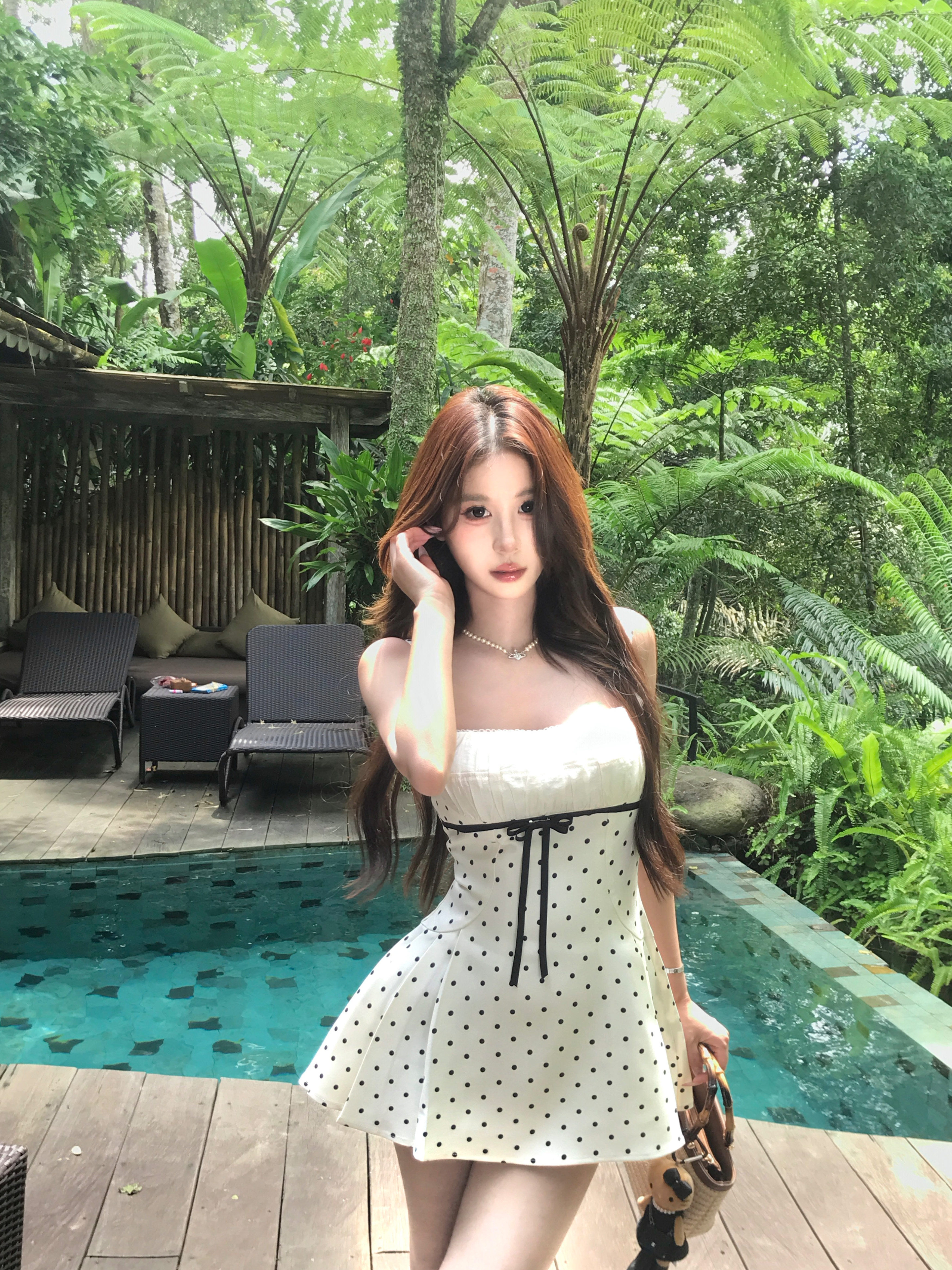실사 정가 여름 헤일로 염색 부드러운 바람 쉬폰 오프숄더 생선뼈 코르셋 맨위